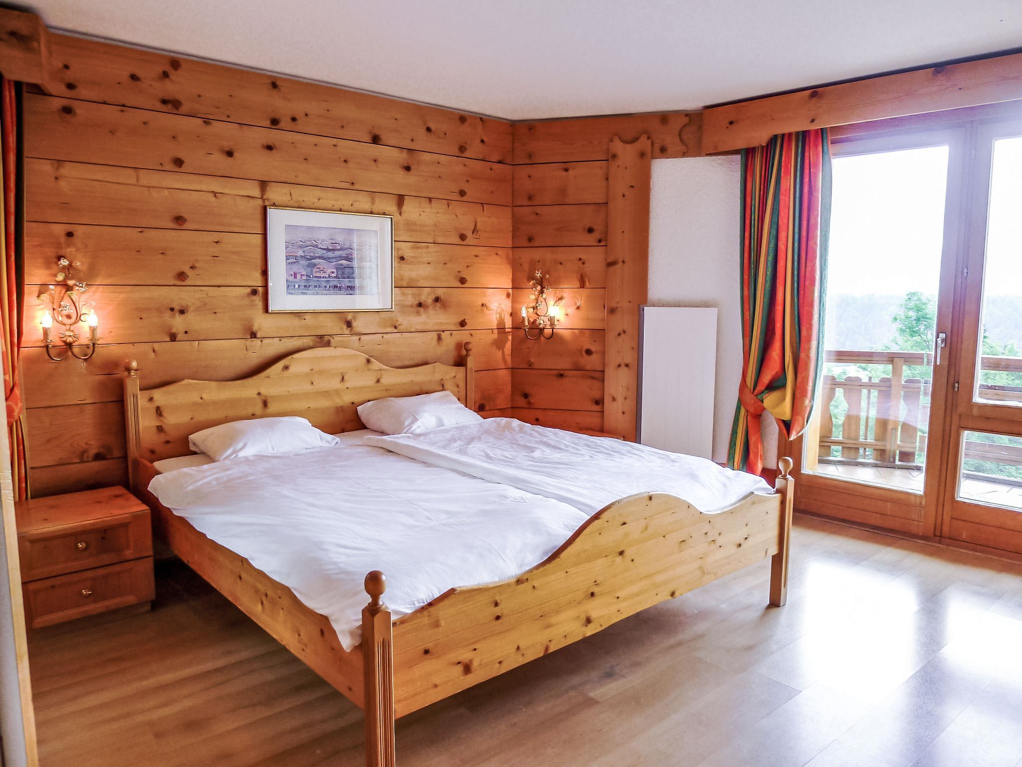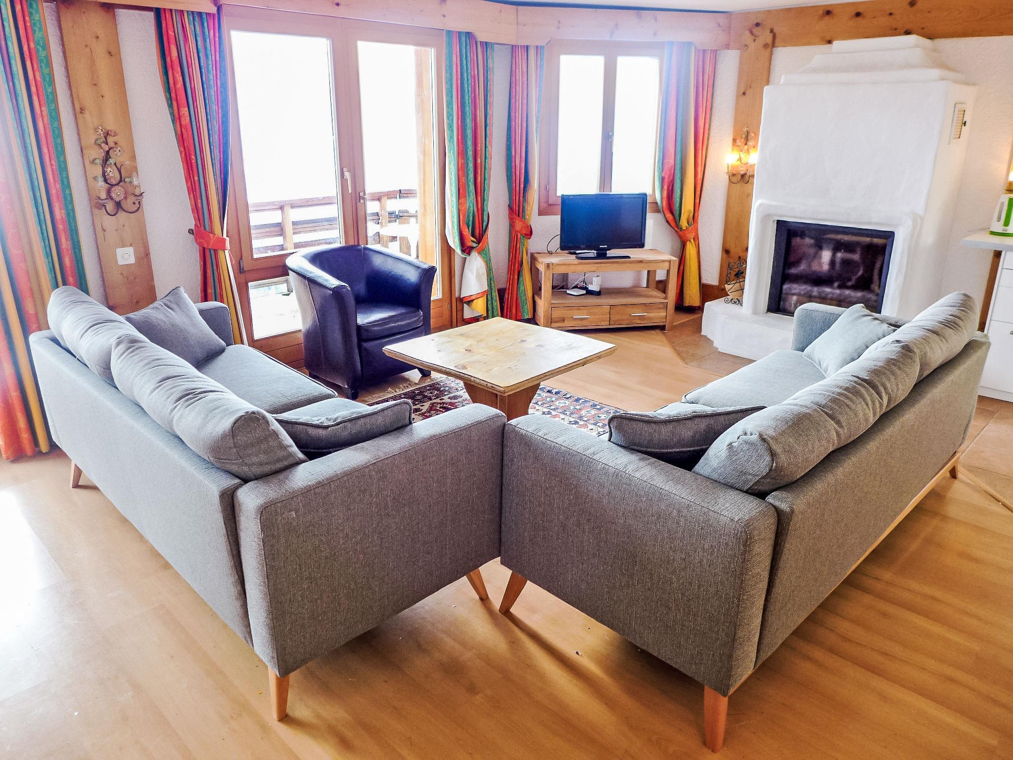 "Le Bristol C54", 4-room apartment 115 m2 on 5th floor. Bright, comfortable furnishings: living/dining room with 2 sofabeds, open-hearth fireplace, kitchen corner, bath/WC and TV (flat screen). Exit to the balcony, south facing position and east facing position. 1 double bedroom with 2 beds (90 cm), bath/WC. 1 double bedroom with 1 double bed (2 x 90 cm), kitchen corner and shower/WC. Exit to the balcony, south facing position and west facing position. 1 room with 2 beds and bath/WC. Exit to the balcony, south facing position and east facing position. Open kitchen (oven, dishwasher, 4 ceramic glass hob hotplates, toaster, kettle, microwave, freezer, electric coffee machine, raclette grill). Large balcony 27 m2, south facing position and west facing position, small balcony 5 m2, south facing position and, east facing position. Balcony furniture. Marvellous panoramic view of the mountains and the valley. Facilities: hair dryer. Internet (WiFi, free). Please note: non-smokers only. Maximum 1 pet/ dog allowed. Smoke alarm.