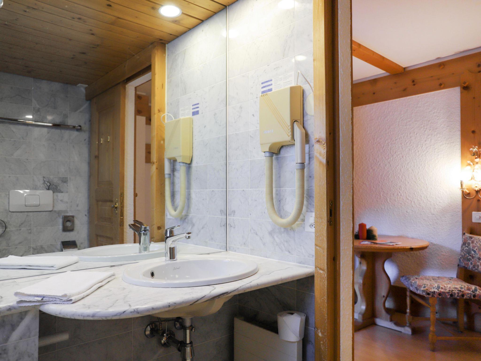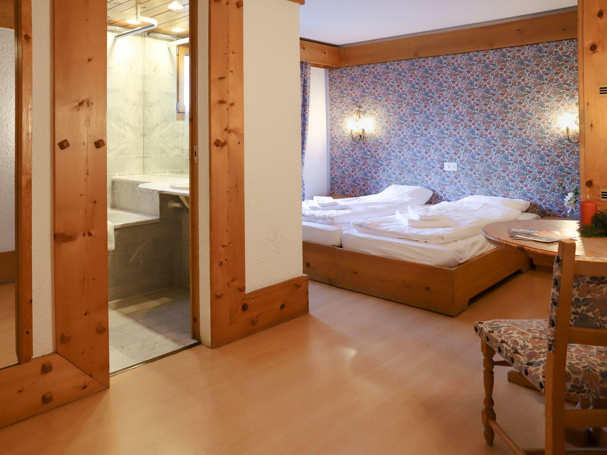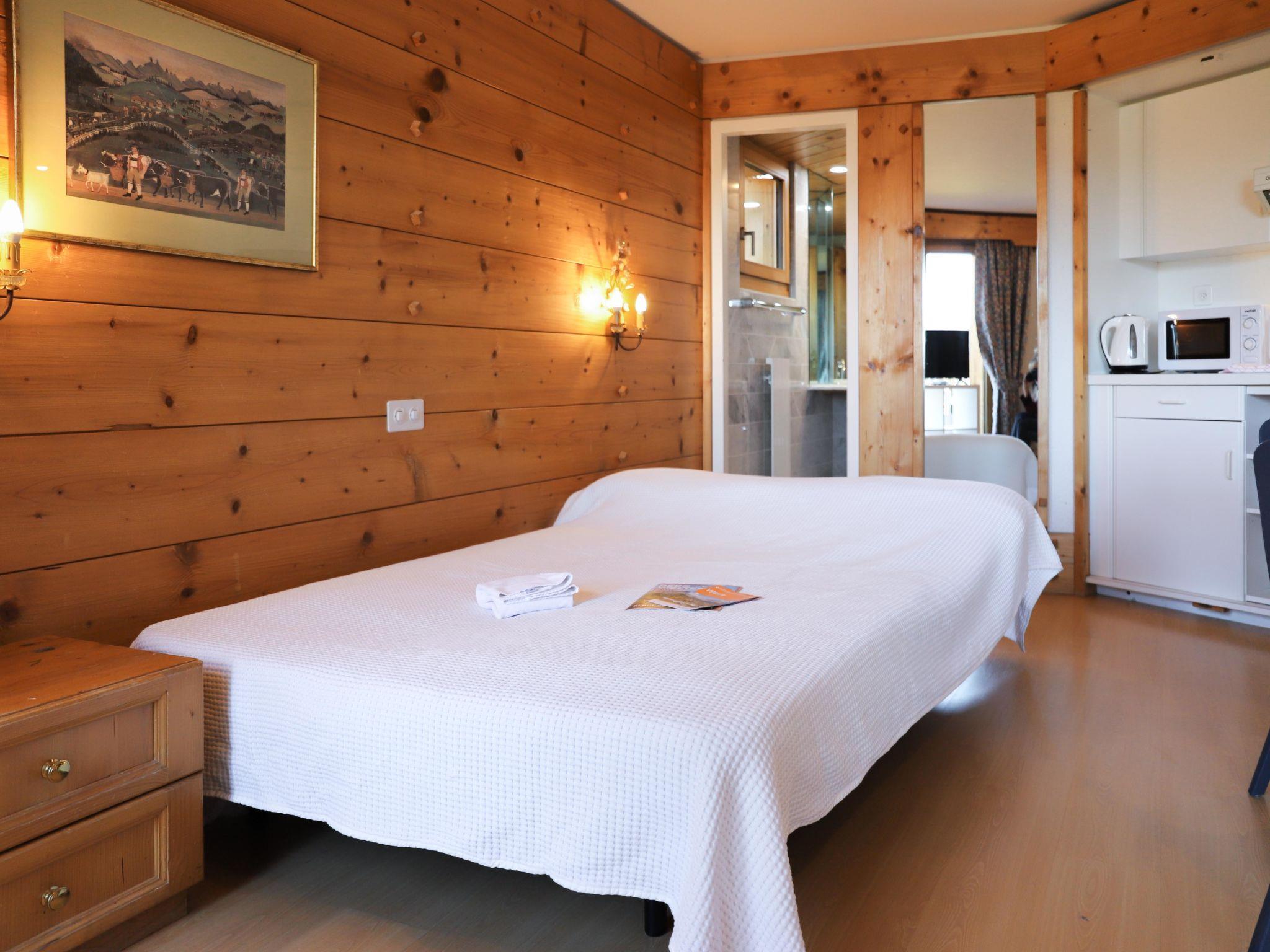 "Le Bristol A16", 2-room apartment 60 m2 on 1st floor. Spacious, comfortable and beautiful furnishings: large living/sleeping room with 1 sofabed (140 cm, length 200 cm), dining table, kitchen corner, shower/WC and TV (flat screen). Exit to the balcony, west facing position. 1 double bedroom with 2 beds (90 cm), bath/WC. Exit to the balcony, north facing position. Kitchenette (2 ceramic glass hob hotplates, toaster, kettle, microwave, electric coffee machine, raclette grill, fondue Set (cheese)). 2 balconies 15 m2, west facing position and north facing position. Balcony furniture. Side view of the mountains and the resort. Facilities: hair dryer. Internet (WiFi, free). Please note: non-smokers only.
