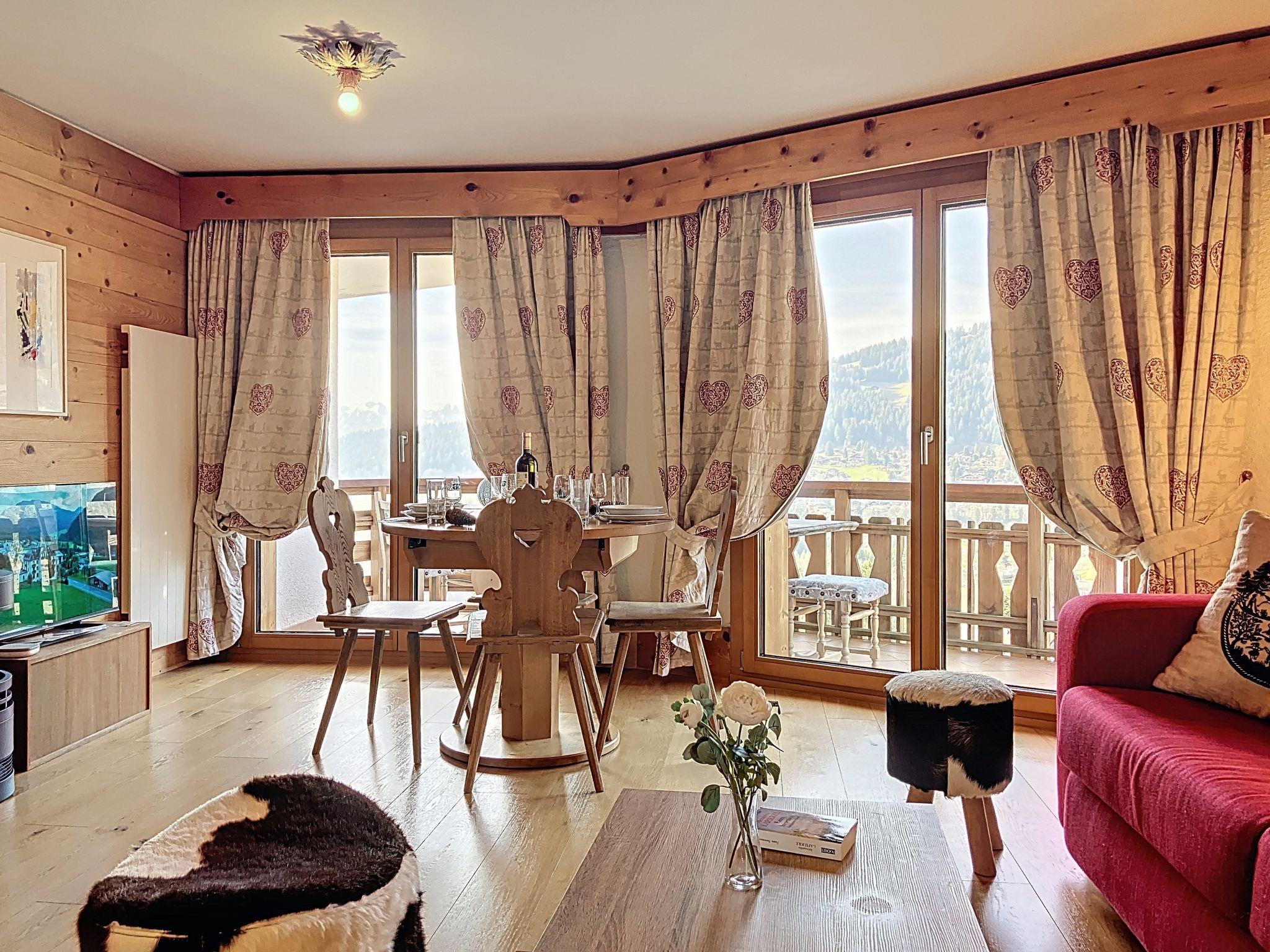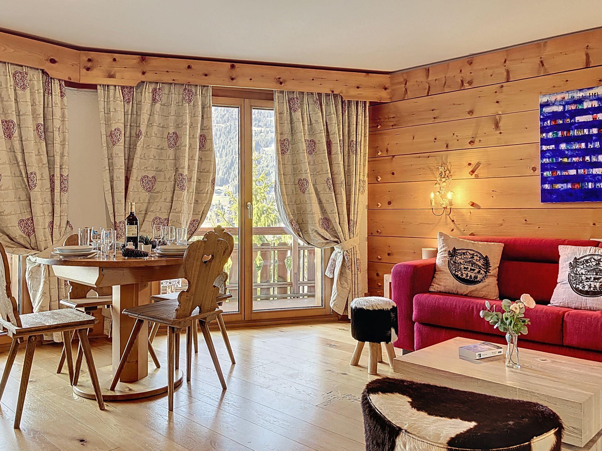 "Le Bristol A56", 2-room apartment 56 m2 on 5th floor. Bright, comfortable and beautiful furnishings: living/dining room with TV (flat screen). Exit to the balcony, west facing position. 1 room with 1 x 2 bunk beds (90 cm), 1 double bed (2 x 90 cm, length 200 cm), bath/WC. Exit to the balcony, north facing position. Open kitchen (oven, dishwasher, 2 ceramic glass hob hotplates, toaster, microwave, electric coffee machine, Capsules for coffee machine (Nespresso) extra, raclette grill, fondue Set (cheese)). Shower/WC. Balcony 15 m2, west facing position, small balcony 7 m2, north facing position. Balcony furniture, deck chairs (1). Beautiful panoramic view of the mountains and the valley. Facilities: Internet (WiFi, free). Please note: non-smokers only.