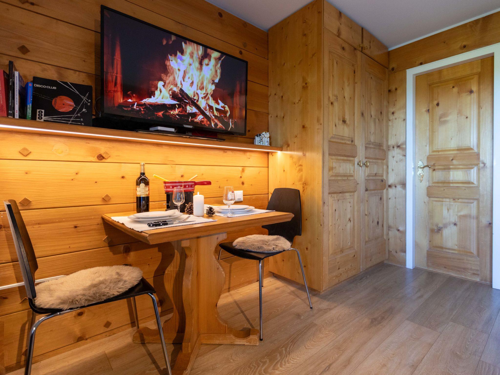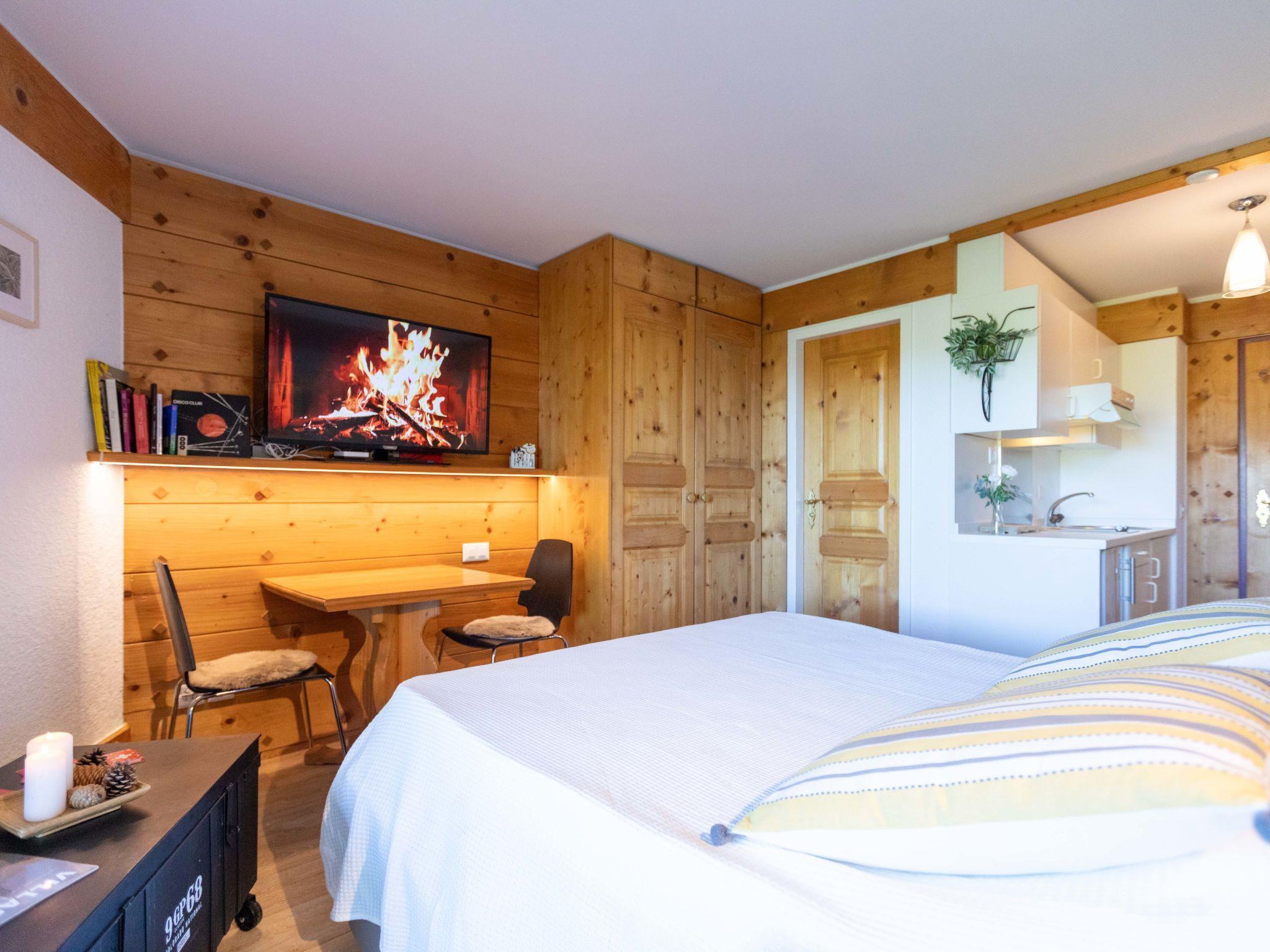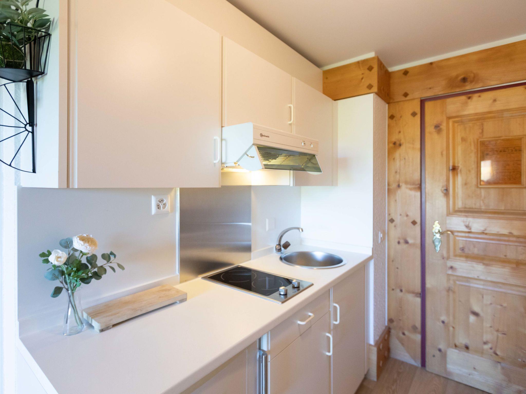 "Le Bristol A25", 1-room studio 20 m2 on 2nd floor, west facing position. Practical and comfortable furnishings: living/sleeping room with 1 double sofabed (160 cm, length 200 cm), cable TV. Exit to the balcony, west facing position. Small, open kitchen (2 hot plates, toaster, kettle, microwave, electric coffee machine, Capsules for coffee machine (Nespresso) extra, raclette grill, fondue Set (cheese)). Shower/WC. Small balcony, west facing position. Balcony furniture. Very beautiful view of the mountains, the countryside and the resort. Facilities: hair dryer. Internet (WiFi, free). Please note: non-smokers only.