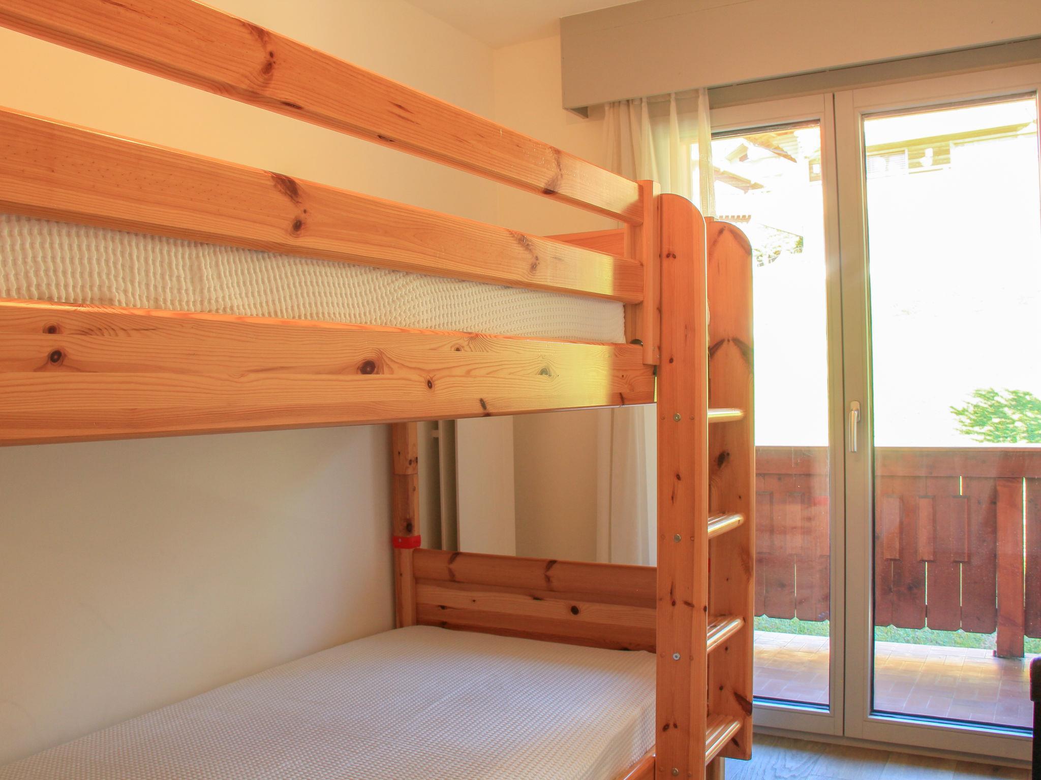"Les Girolles B15", 3-room apartment 70 m2 on 3rd floor. Partly renovated in 2022, comfortable and beautiful furnishings: living/dining room with open-hearth fireplace, TV and DVD. Exit to the balcony. 1 room with 1 french bed. Exit to the balcony. 1 room with 1 x 2 bunk beds (90 cm, length 190 cm), shower. Exit to the balcony. Small kitchen (4 hot plates, oven, dishwasher, toaster, kettle, grill, electric coffee machine, Capsules for coffee machine (Nespresso) extra, raclette grill, fondue Set (cheese)). Bathroom, sep. WC. 2 balconies. Terrace furniture. Marvellous panoramic view of the mountains and the countryside. Facilities: iron, hair dryer. Internet (WiFi, free). Parking space n 15, garage space n 15, height 200 cm, width 190 cm.