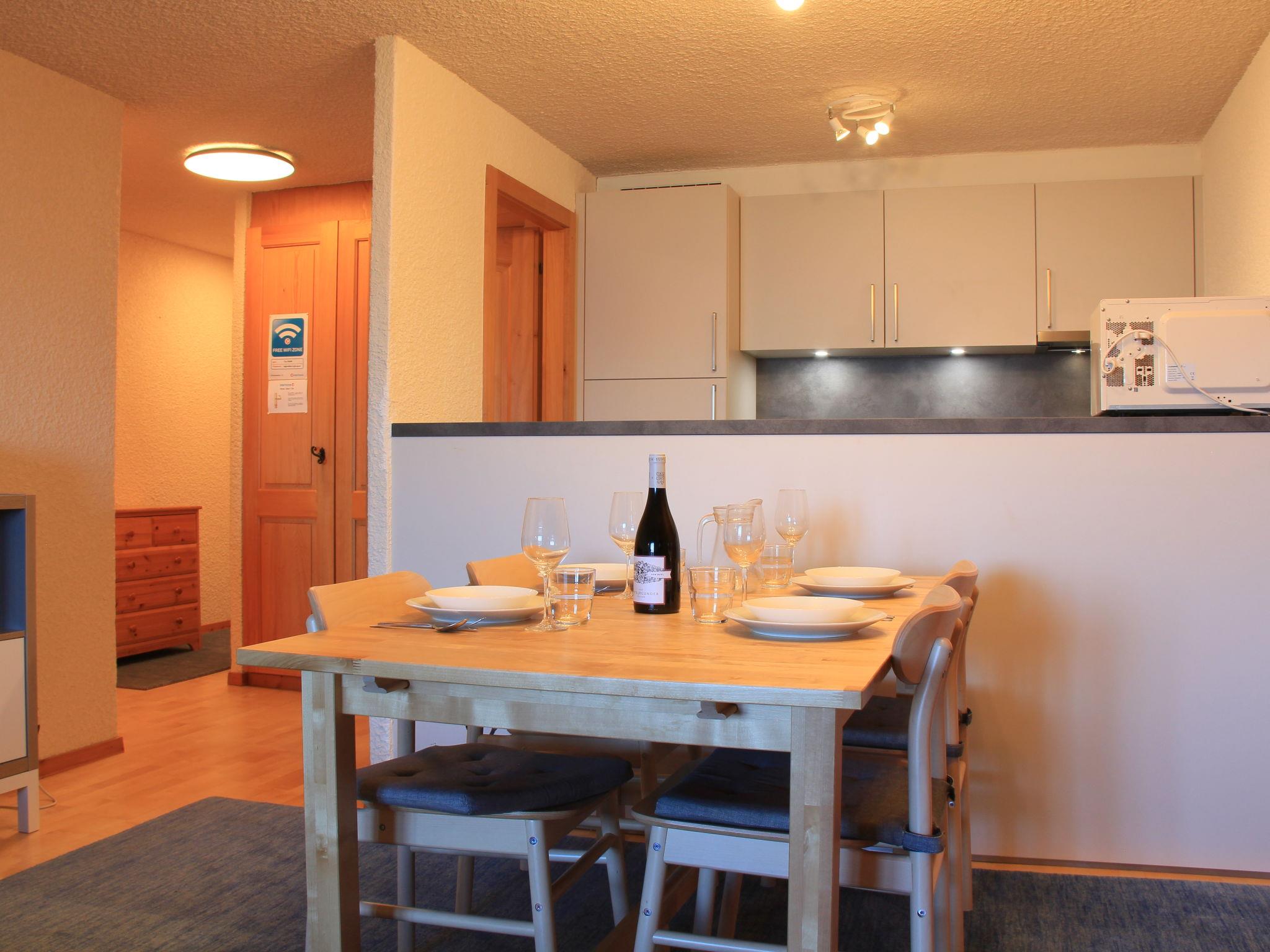 "Ambassadeur 15", 3-room apartment 70 m2 on 3rd floor, south facing position. Beautiful and cosy furnishings: living/dining room with open-hearth fireplace, library and TV (flat screen), radio, CD-player and DVD. Exit to the balcony, south facing position. 1 double bedroom with 2 beds (90 cm, length 190 cm). Exit to the balcony, north facing position. 1 room with 2 beds (90 cm, length 190 cm). Small, open kitchen (4 hot plates, oven, dishwasher, microwave, raclette grill) with hatch. Bath/WC, sep. WC. Balcony 9 m2, south facing position balcony 8 m2, north facing position. Terrace furniture. Very beautiful panoramic view of the mountains and the countryside. Facilities: hair dryer. Internet (WiFi, free). Garage space n 9, height 200 cm, width 180 cm. Please note: non-smokers only, parking space for small car only. Maximum length in garage space : 380cm.
