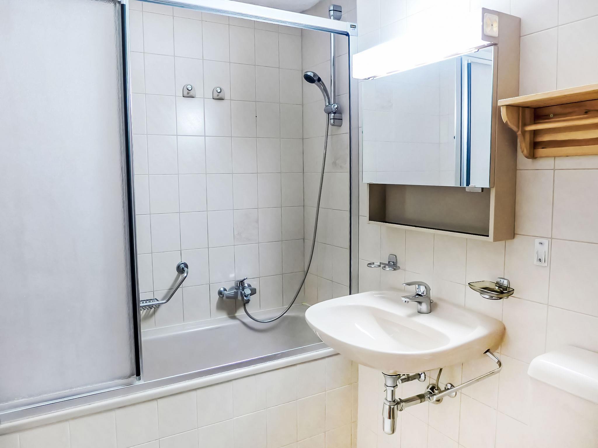 "Ambassadeur 3", 3-room apartment 70 m2 on 1st floor, south facing position. Partly renovated in 2018, beautiful and cosy furnishings: living/dining room with dining table and TV (flat screen). Exit to the balcony, south facing position. 1 double bedroom with 1 double bed (2 x 80 cm). 1 room with 1 x 2 bunk beds (90 cm), 1 pull-out bed (1 pers.). Open kitchen (oven, dishwasher, 4 ceramic glass hob hotplates, toaster, kettle, freezer, electric coffee machine, raclette grill, fondue Set (cheese)). Bath/WC, bath/shower/WC, hydro massage bath. Balcony 9 m2, south facing position. Balcony furniture. Very beautiful panoramic view of the mountains and the valley. Facilities: iron. Internet (WiFi, free). Garage space n 3. Please note: parking space for small car only.