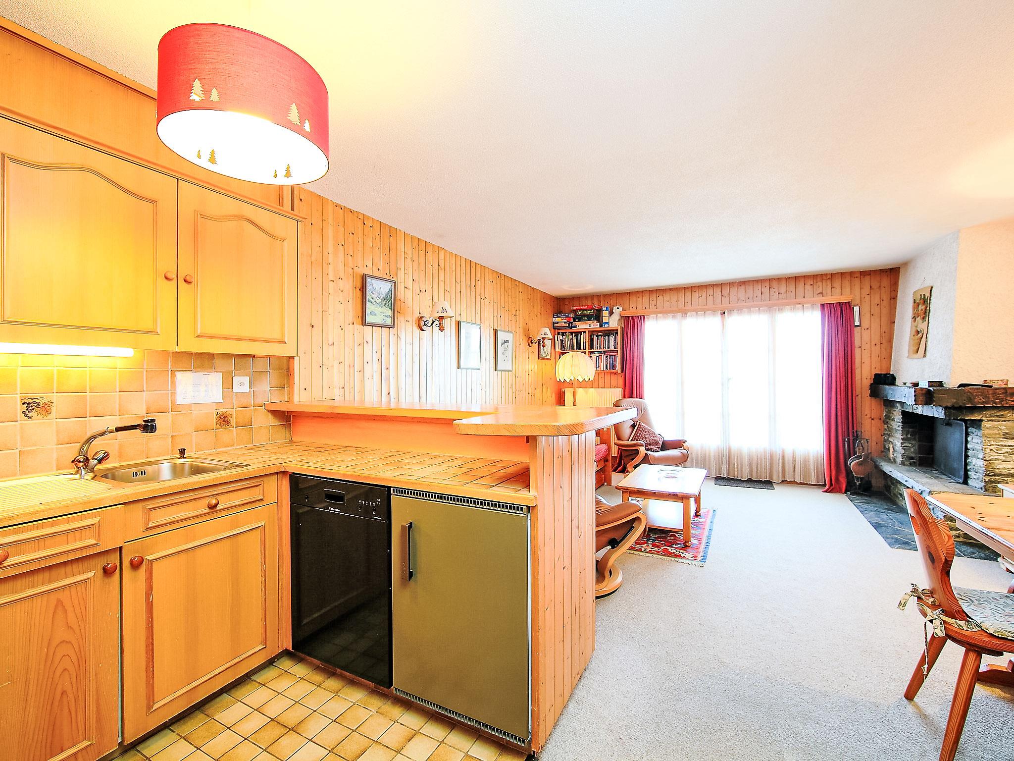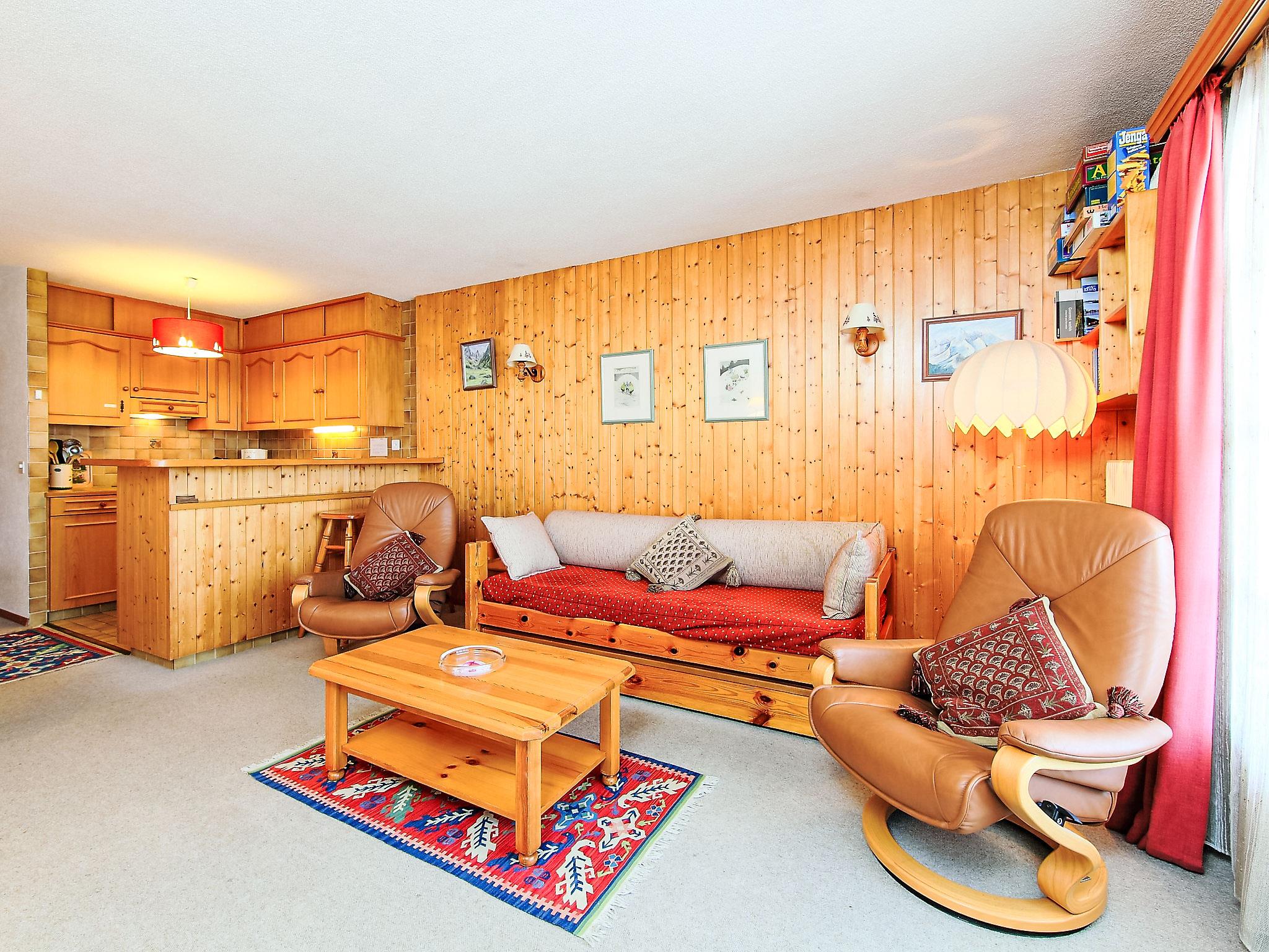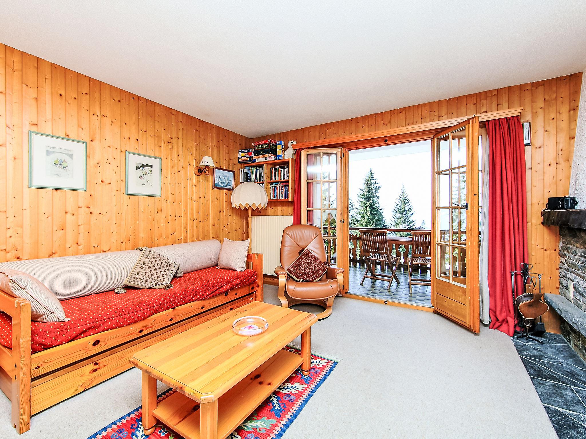 "Sapin Bleu 6", 2-room apartment 60 m2 on 1st floor, south facing position. Beautiful and cosy furnishings: living/dining room with 1 pull-out bed (2 x 80 cm), open-hearth fireplace and satellite TV (flat screen), CD-player. Exit to the balcony. 1 room with 2 beds. Open kitchen (4 hot plates, oven, dishwasher, toaster, kettle, microwave, electric coffee machine, raclette grill, fondue Set (cheese)). Bath/WC. Small balcony 10 m2, south facing position. Very beautiful panoramic view of the mountains. Facilities: hair dryer. Internet (WiFi, free). Blu-ray player. Garage space n 6, height 200 cm, width 470 cm.