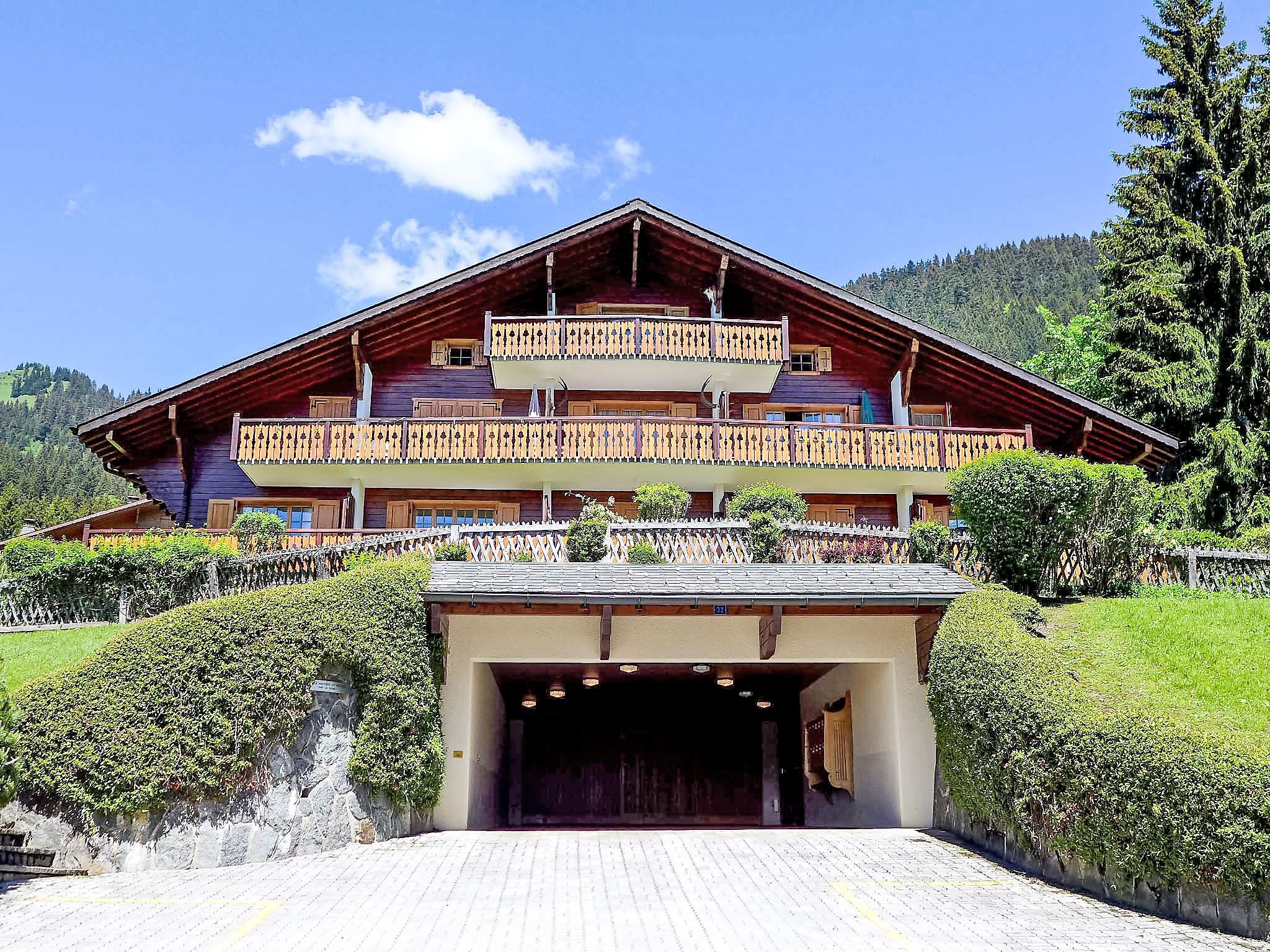 Villars: Chalet "Sapin Bleu". Above Villars, in the district of La Résidence, in a quiet, sunny position, 100 m from the skiing area, in the countryside, south facing position. In the house: sauna, lift, storage room for skis, central heating system, washing machine (extra), tumble dryer (for shared use). In Winter: please take snow chains. Public parking. Shop 2.6 km, grocery 1.3 km, restaurant 1.9 km, bakery 1.9 km, 20 minute walk to the centre, bus stop 1.9 km, railway station "Villars" 2.9 km, indoor swimming pool 2.2 km, thermal baths "Lavey-les-bains" 19 km. Sports harbour 25 km, golf course (18 hole) 8 km, indoor tennis centre 3 km, sports centre 3 km, mountain railway 2.9 km, gondola lift 1.4 km, ski bus stop 1.5 km, ski school 2.8 km, children's ski school 3 km, ice rink 2.2 km, children's playground 3.2 km. Please note: car recommended. Free ski bus service to the ski region Villars. Please note: Additional accommodations can be booked.