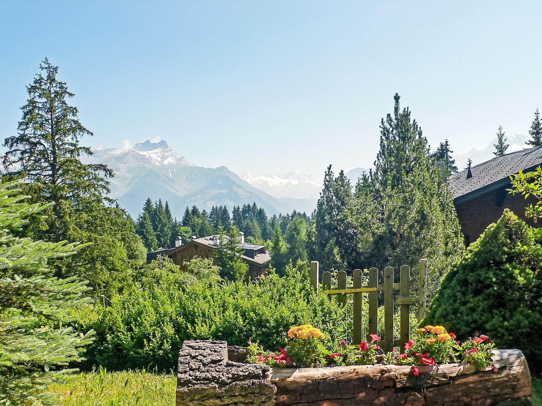 "Armorial II / apt 2", 3-room apartment 71 m2, on the ground floor. Partly renovated in 2017, comfortable and beautiful furnishings: living/dining room with open-hearth fireplace, satellite TV, radio and DVD. Exit to the garden, to the terrace. 1 room with 2 beds and bath/WC. 1 room with 1 french bed and open-hearth fireplace (only for decoration), shower/WC. Exit to the garden, to the terrace. Open kitchen (oven, dishwasher, 4 ceramic glass hob hotplates, toaster, freezer, electric coffee machine, raclette grill, fondue Set (cheese)). Large garden 100 m2, south facing position and west facing position. Terrace furniture. Very beautiful view of the mountains. Facilities: Internet (WiFi, free). Garage space n Apt 2. Please note: non-smokers only.