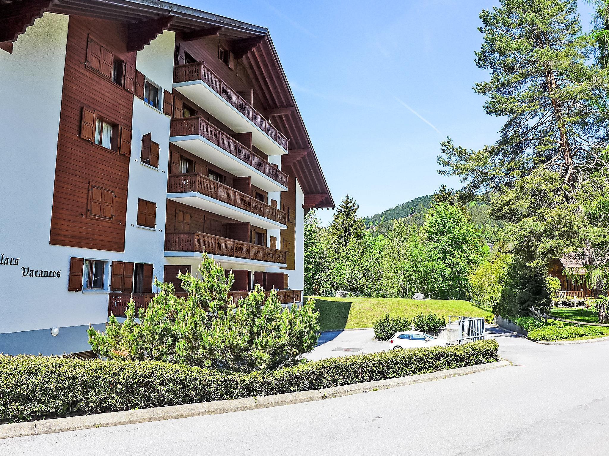 Apartment block "Villars Vacances", surrounded by trees and meadows. 1 km from the centre of Villars, in a sunny position, located by a road, in the countryside, south-west facing position. In the house: sauna (extra). Lift, storage room for skis, washing machine, tumble dryer (for shared use, extra). Motor access to the house. In Winter: please take snow chains. (3 steps). Shop 700 m, grocery 650 m, restaurant 700 m, bakery 750 m, bus stop 400 m, railway station "Villars- Bretaye" 1 km, indoor swimming pool 450 m, thermal baths "Lavey-les-bains" 19 km. Golf course (18 hole) 8 km, tennis 1.2 km, sports centre 1.2 km, mountain railway 1 km, gondola lift 1.5 km, ski bus stop 450 m, ski school 800 m, children's ski school 2.5 km, ice rink 500 m. Free ski bus service to the ski region Villars. Please note: Additional accommodations can be booked. Garages are automatic lifts with one car on top of another. Maximum car height 150cm.