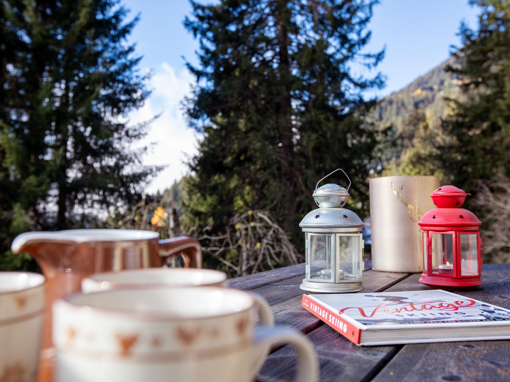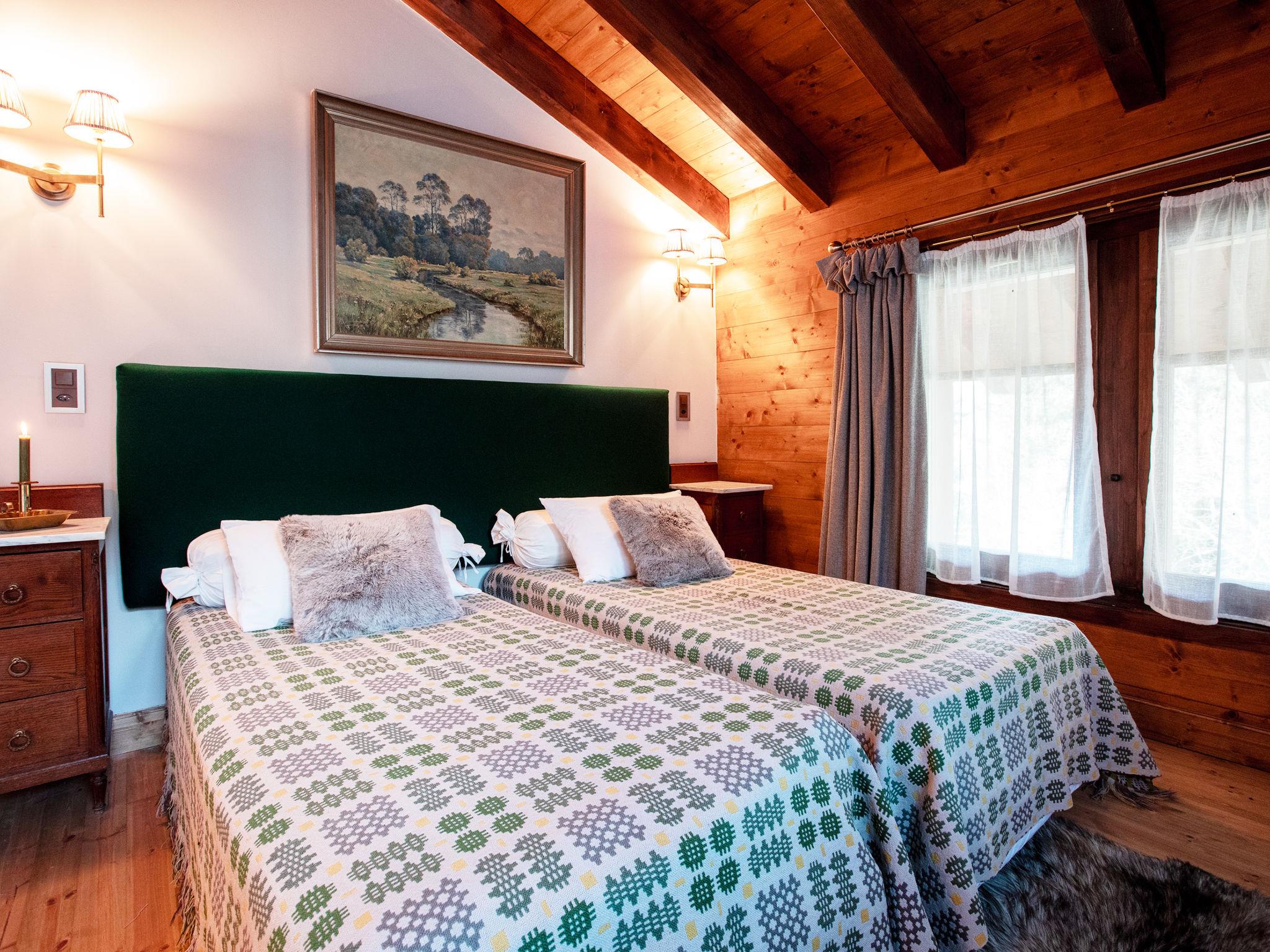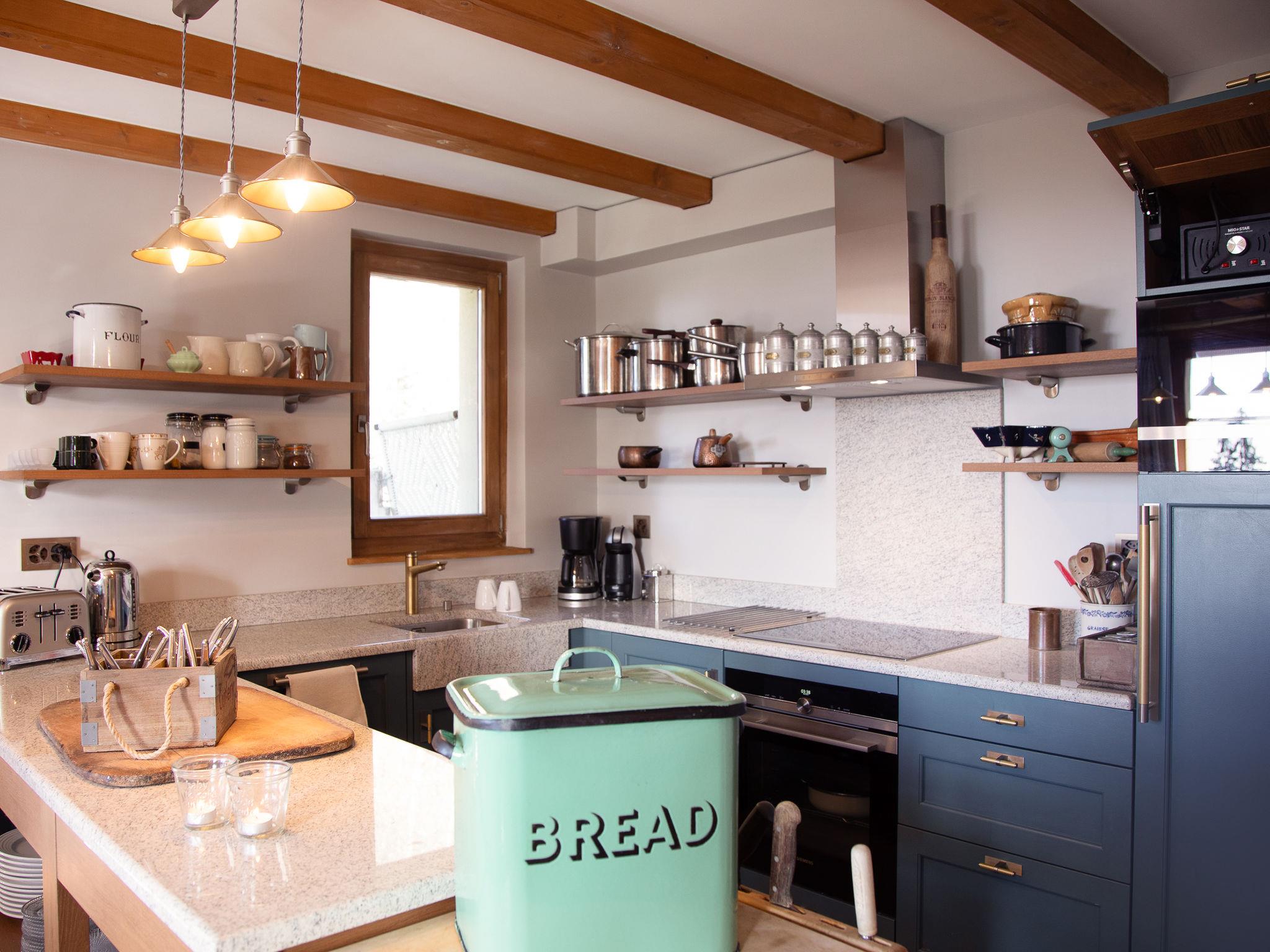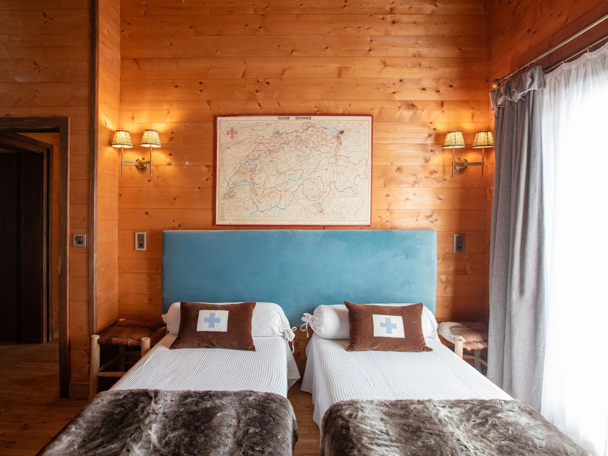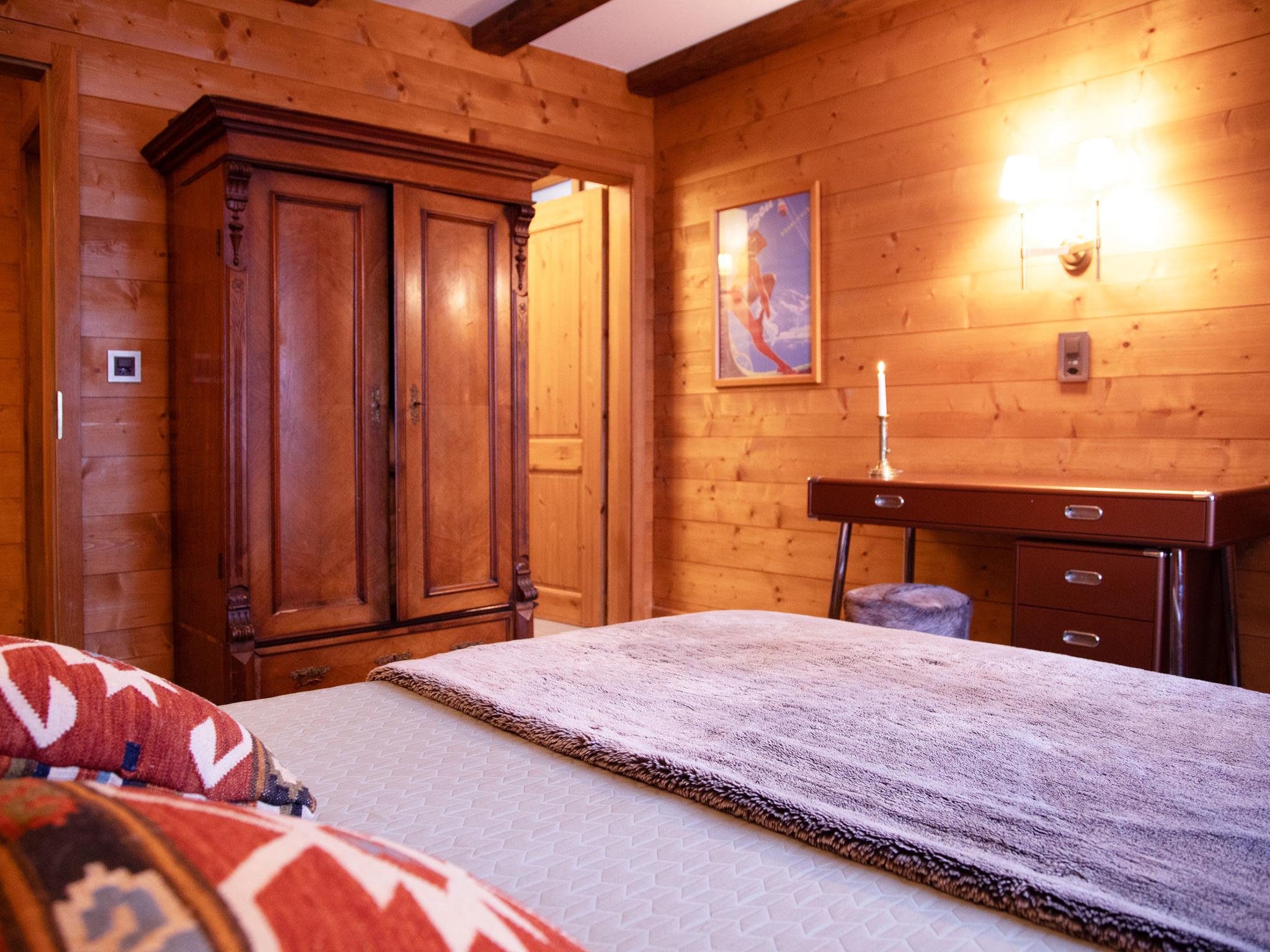 "Chalet Tetras", 8-room chalet 220 m2 on 3 levels, south facing position. Very comfortable and tasteful furnishings: small living room with TV (flat screen). 1 room with 1 french bed (160 cm, length 200 cm), bathroom. Exit to the garden, south facing position. Large kitchen (oven, dishwasher, 4 induction hot plates, toaster, kettle, microwave, electric coffee machine, Capsules for coffee machine (Dolce Gusto) extra, raclette grill, fondue Set (cheese)) with dining table. Exit to the garden, south facing position. Sep. WC. Upper floor: large living room with open-hearth fireplace. Exit to the terrace, south facing position and west facing position. 1 double bedroom with 1 french bed (180 cm, length 200 cm), bath/WC and double hand-basin. Exit to the terrace, west facing position. 2nd upper floor: 1 double bedroom with 2 beds (90 cm, length 200 cm). Exit to the balcony, south facing position. 1 double bedroom with 2 beds (90 cm, length 200 cm). Exit to the balcony, south facing position. 1 double bedroom with 2 beds (90 cm, length 200 cm), hand-basin and shower/WC. Bath/shower/WC. Small balcony, south facing position, terrace, south facing position and west facing position, small garden, south facing position. Terrace furniture. Partial view of the mountains. Facilities: washing machine, dryer. Internet (WiFi, free). Parking (2 cars).