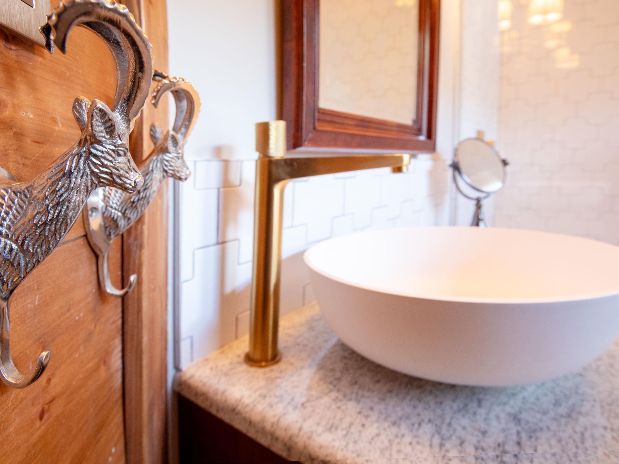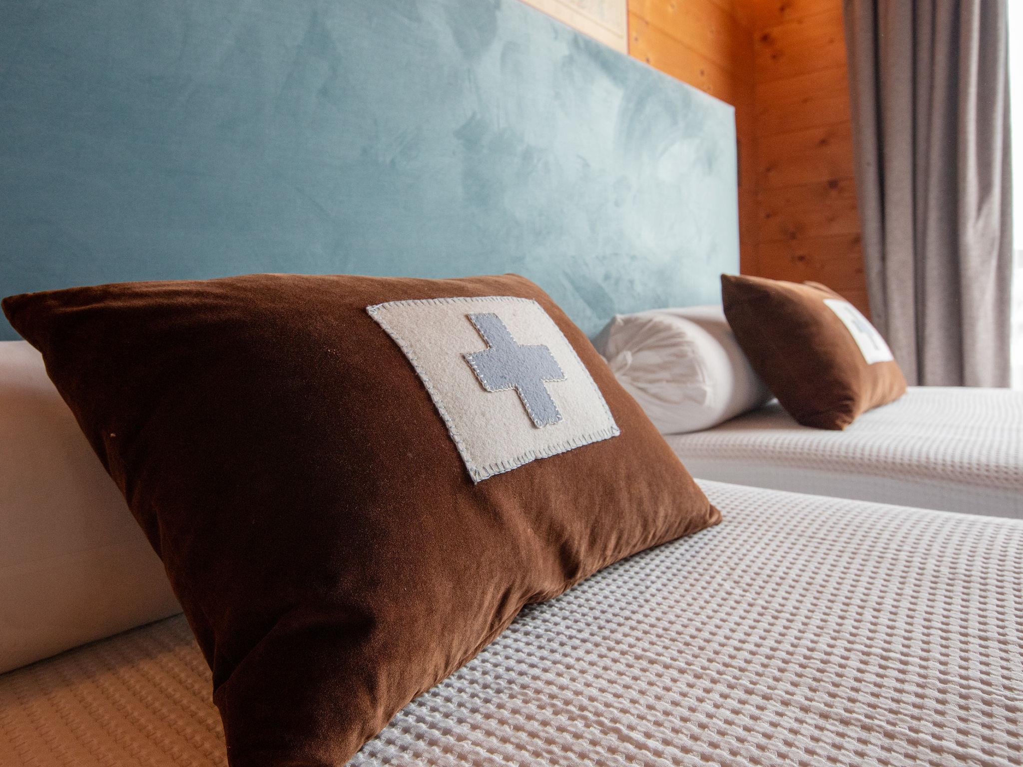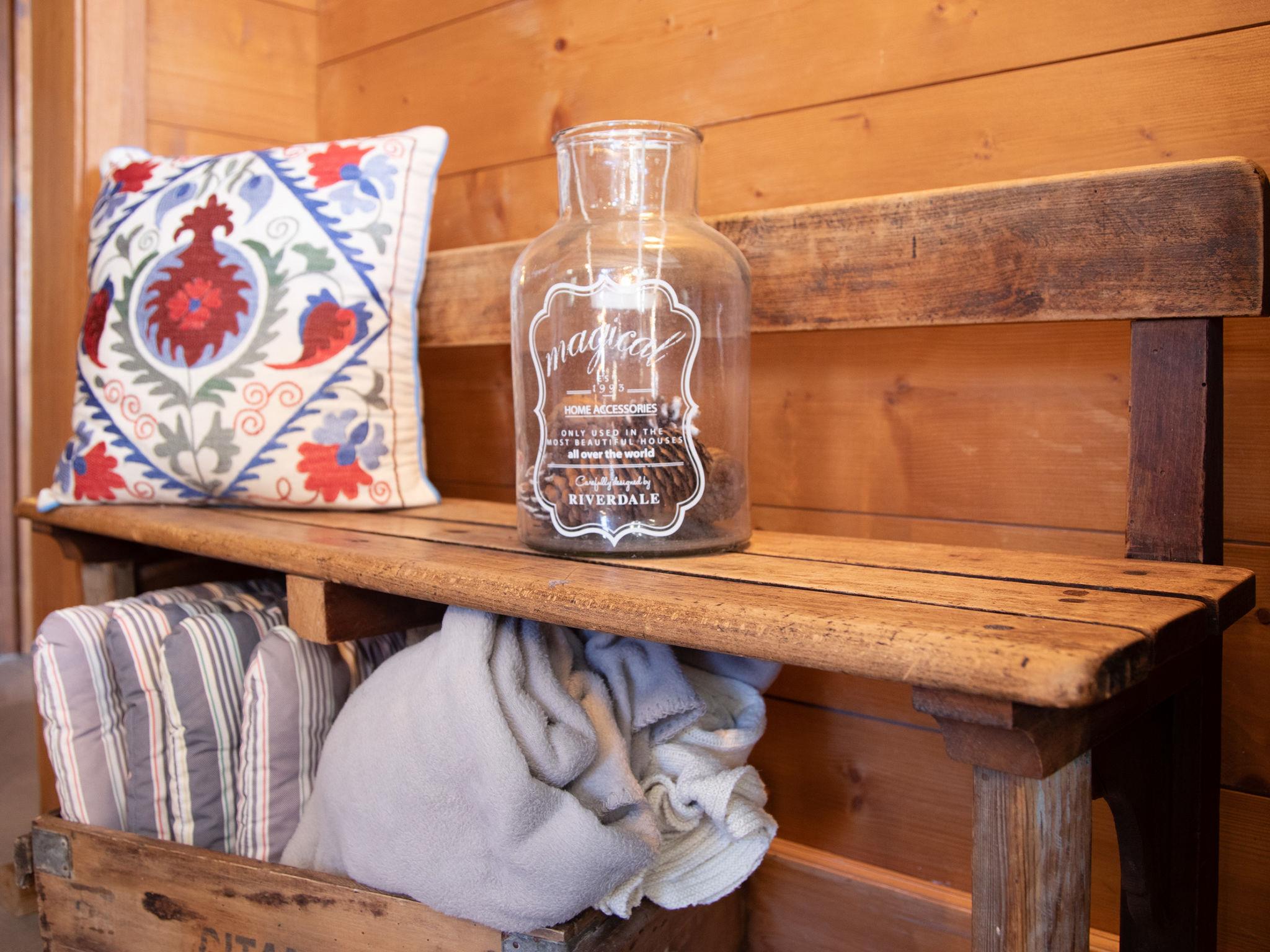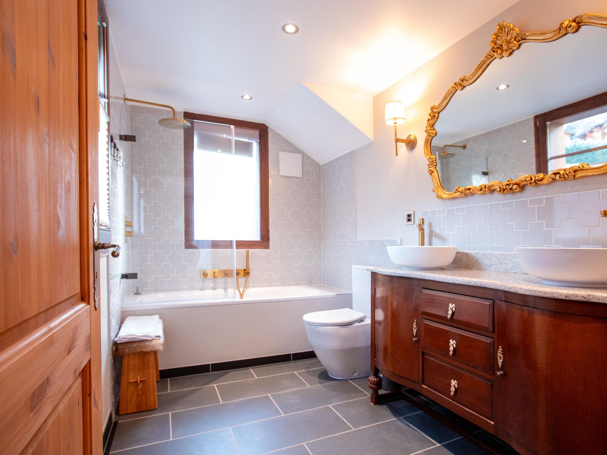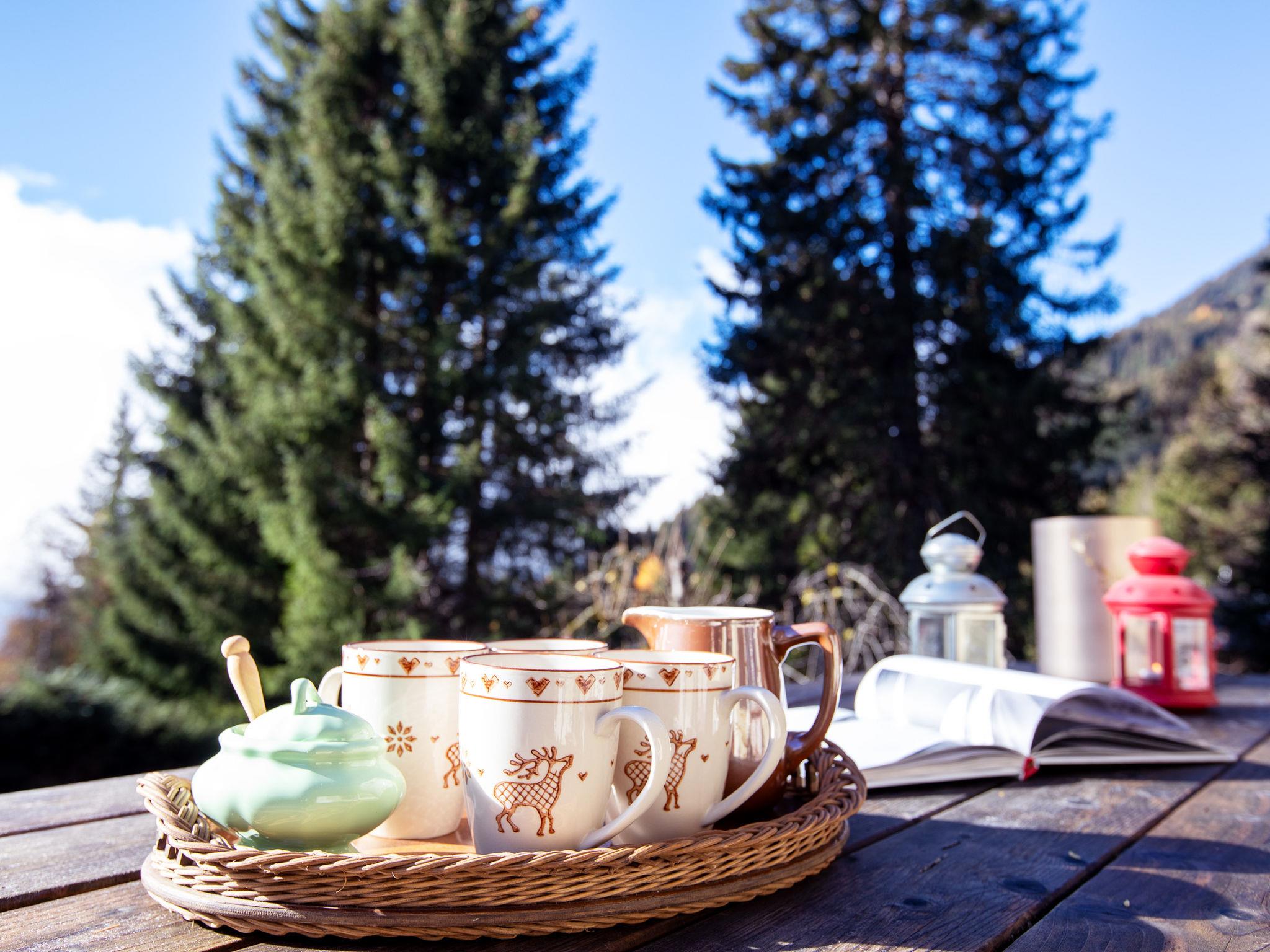 "Chalet Tetras", 8-room chalet 220 m2 on 3 levels, south facing position. Very comfortable and tasteful furnishings: small living room with TV (flat screen). 1 room with 1 french bed (160 cm, length 200 cm), bathroom. Exit to the garden, south facing position. Large kitchen (oven, dishwasher, 4 induction hot plates, toaster, kettle, microwave, electric coffee machine, Capsules for coffee machine (Dolce Gusto) extra, raclette grill, fondue Set (cheese)) with dining table. Exit to the garden, south facing position. Sep. WC. Upper floor: large living room with open-hearth fireplace. Exit to the terrace, south facing position and west facing position. 1 double bedroom with 1 french bed (180 cm, length 200 cm), bath/WC and double hand-basin. Exit to the terrace, west facing position. 2nd upper floor: 1 double bedroom with 2 beds (90 cm, length 200 cm). Exit to the balcony, south facing position. 1 double bedroom with 2 beds (90 cm, length 200 cm). Exit to the balcony, south facing position. 1 double bedroom with 2 beds (90 cm, length 200 cm), hand-basin and shower/WC. Bath/shower/WC. Small balcony, south facing position, terrace, south facing position and west facing position, small garden, south facing position. Terrace furniture. Partial view of the mountains. Facilities: washing machine, dryer. Internet (WiFi, free). Parking (2 cars).