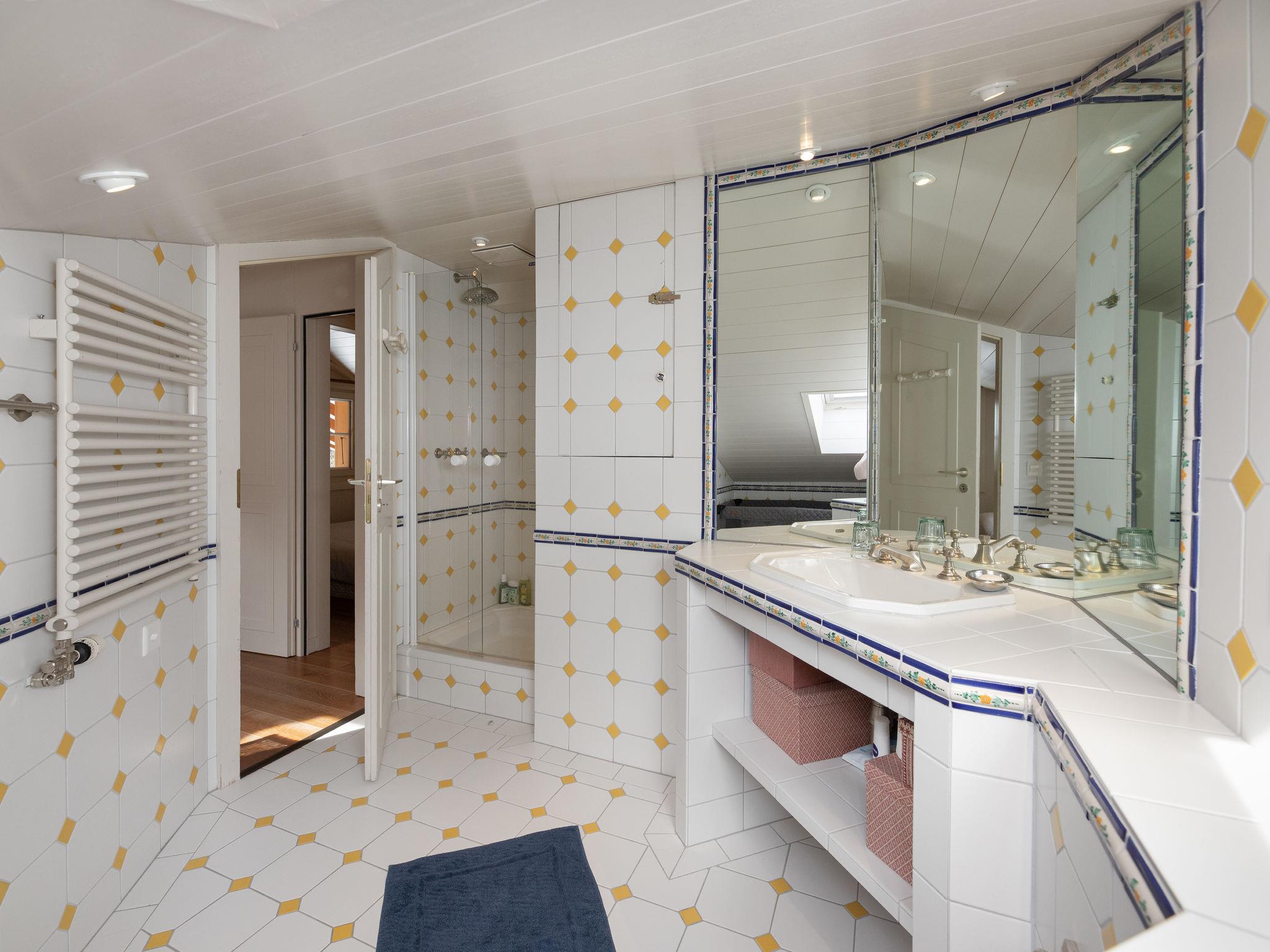Chalet "Elif", surrounded by trees and meadows. Above Villars, in the district of La Résidence, in a quiet, sunny position in the residential district, 20 m from the skiing area, in a cul-de-sac, south facing position. In the house: lift, storage room for skis, central heating system, washing machine, tumble dryer (for shared use). In Winter: please take snow chains. Parking (limited number of spaces), communal covered parking. Supermarket 2 km, restaurant 2 km, bus stop "Télécabine" 1.1 km, railway station 2.4 km, thermal baths "Les Bains de Villars" 2 km. Indoor tennis centre 2.9 km, sports centre 2.9 km, walking paths from the house 1 m, gondola lift 1.1 km, ski rental 1.1 km. Please note: car recommended.
