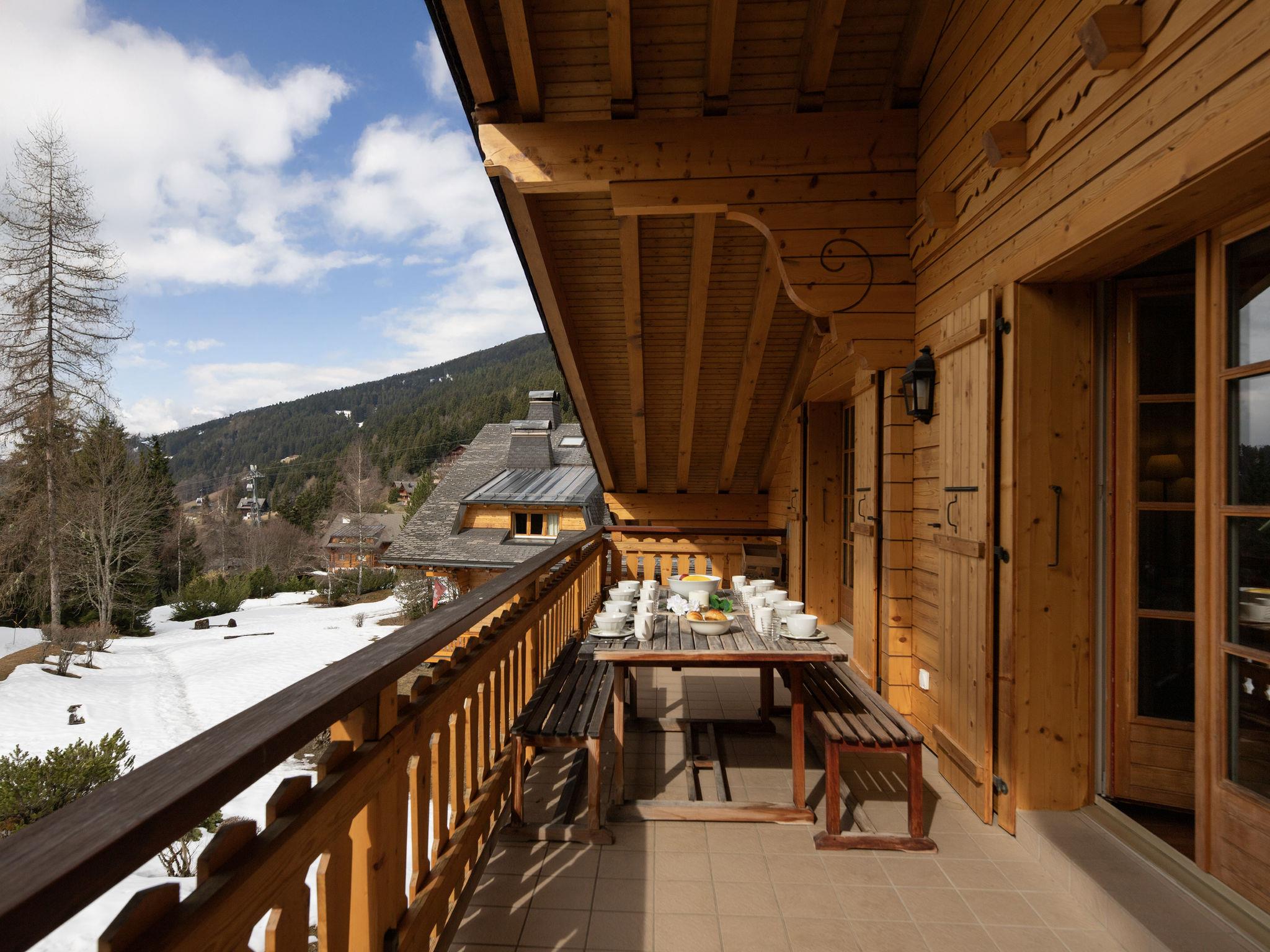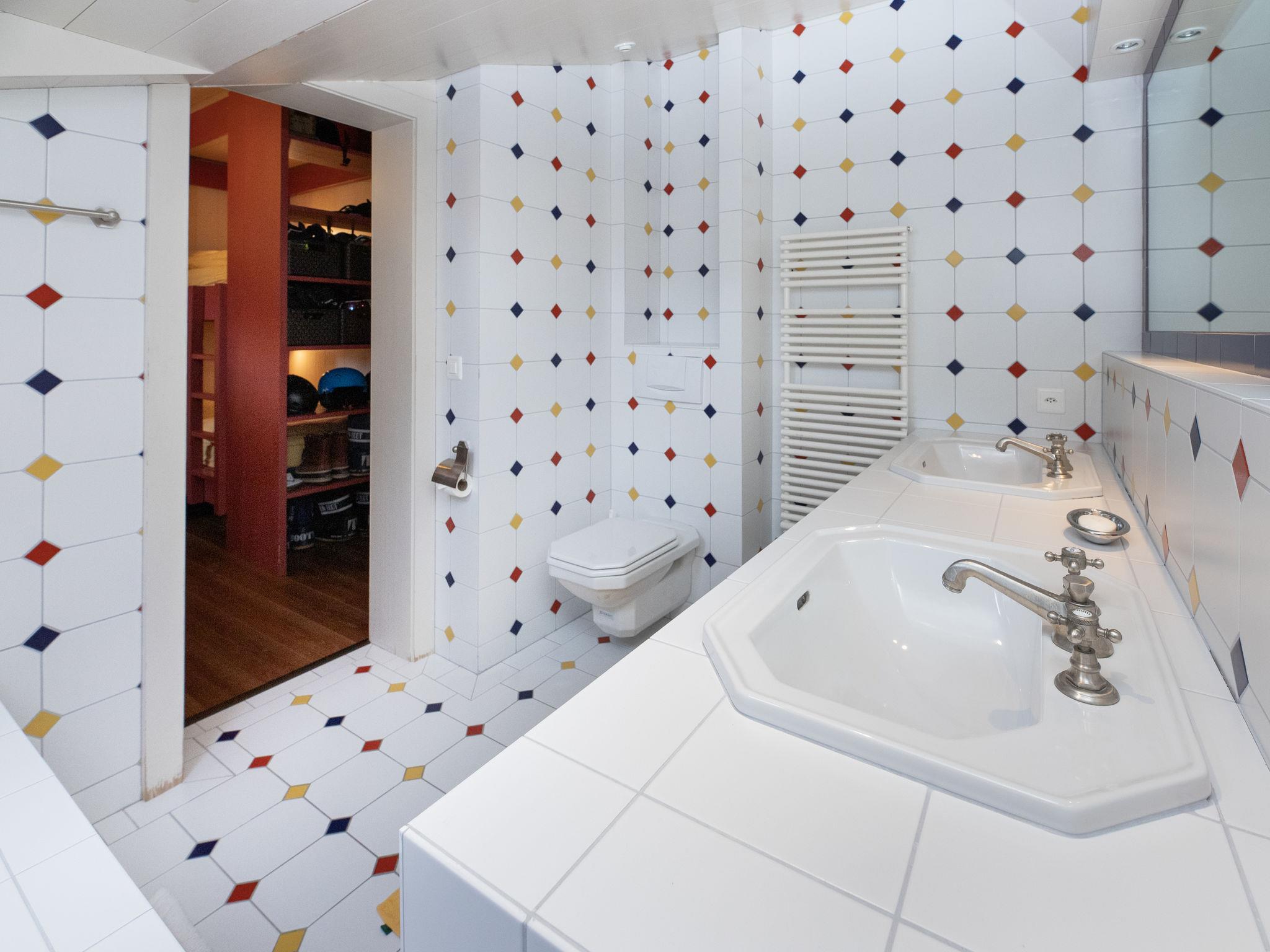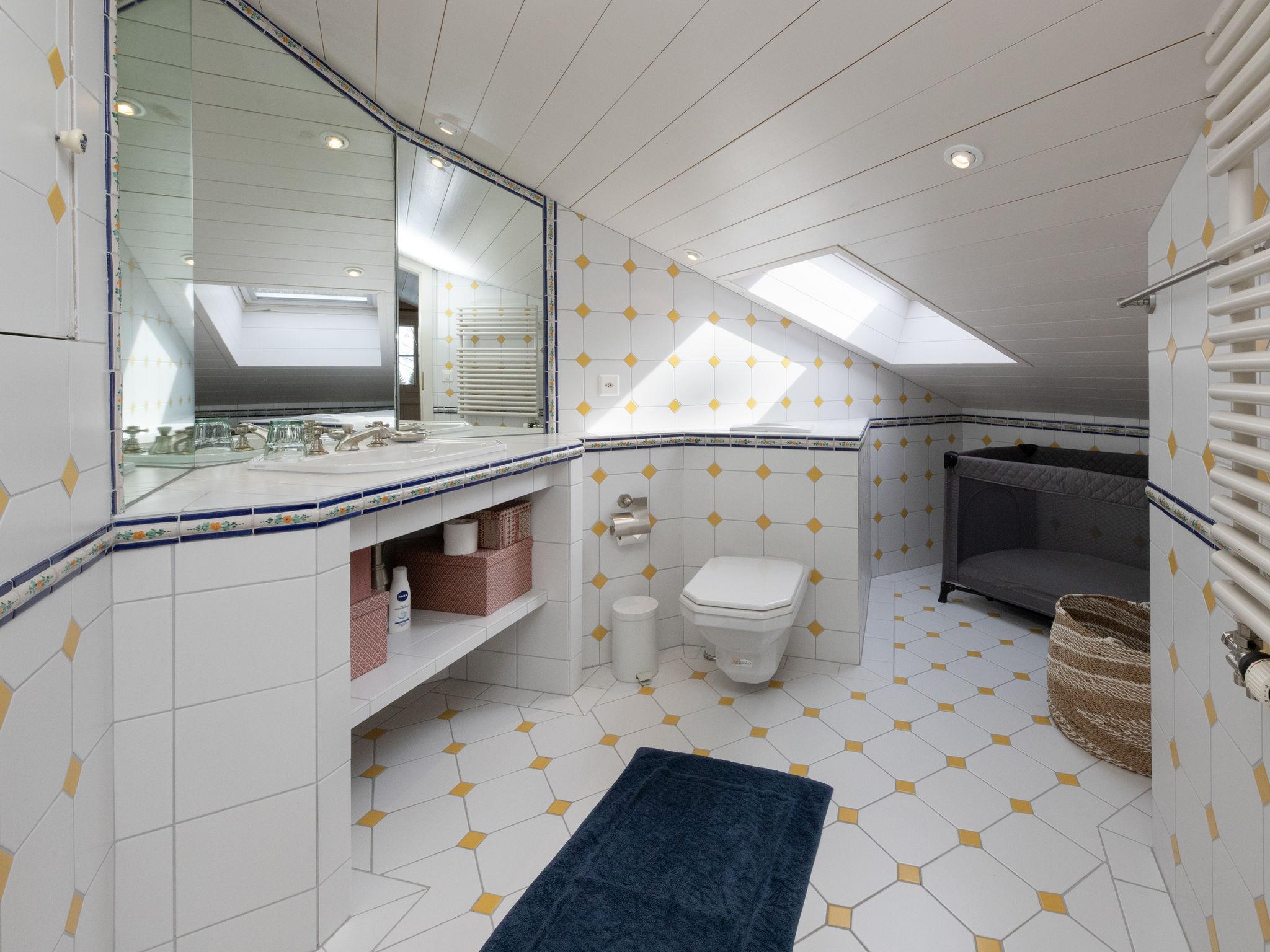 "Elif 5", 5-room penthouse 97 m2 on 2 levels on 2nd floor, south facing position. Object suitable for 6 adults + 6 children. Comfortable and tasteful furnishings: living/dining room with open-hearth fireplace and cable TV. Exit to the balcony, south facing position. 1 room with 2 beds (80 cm, length 190 cm), bath/WC. Exit to the balcony, north facing position. 1 room with 1 x 3 bunk beds (90 cm, length 190 cm), bath/WC and double hand-basin. Open kitchen (4 hot plates, oven, dishwasher, toaster, kettle, microwave, freezer, electric coffee machine, Capsules for coffee machine (Nespresso), raclette grill, fondue Set (cheese)). Shower/WC. Upper floor: 1 room with sloping ceilings with 2 beds (80 cm, length 190 cm), shower/WC. 1 small room with 1 double bed (140 cm, length 190 cm), shower/WC. Large balcony, south facing position and south-west facing position balcony, north-east facing position. Balcony furniture. Marvellous view of the mountains and the ski run. Facilities: iron, baby cot for up to 2 year olds, logs (extra). Internet (WiFi, free). Garage (1 car). Please note: non-smokers only. Maximum 1 pet/ dog allowed.