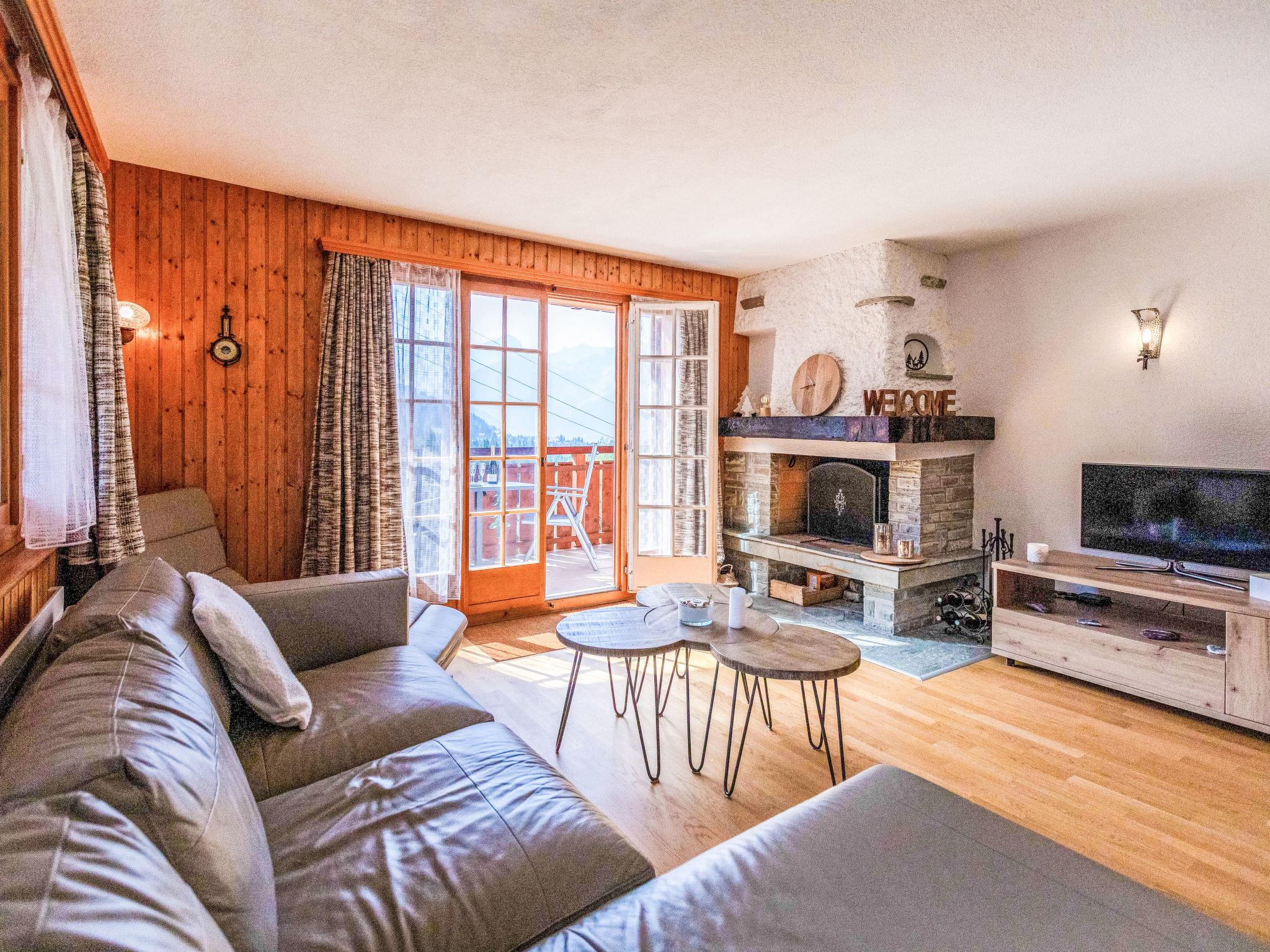 Cosy chalet "Vermont". Above Villars, La Résidence, in a quiet, sunny position, 300 m from the skiing area, in the countryside, south facing position. In the house: storage room for skis, central heating system, washing machine, tumble dryer (for shared use). Room cleaning weekly on request (extra). Motor access to the house. In Winter: please take snow chains. Stepped path (15 steps) to the house. Communal covered parking. Shop 2.5 km, grocery 1.2 km, restaurant 2.5 km, bus stop 1.8 km, railway station "Villars-Bretaye" 2.9 km, indoor swimming pool 2.5 km. Golf course (18 hole) 8 km, indoor tennis centre 3 km, sports centre 3 km, mountain railway 2.9 km, ski lift 2.4 km, gondola lift 1.4 km, ski bus stop 1.4 km, ski school 2.8 km, children's ski school 3 km, ice rink 2.5 km. Please note: car recommended, no lift. Free ski bus service to the ski region Villars.