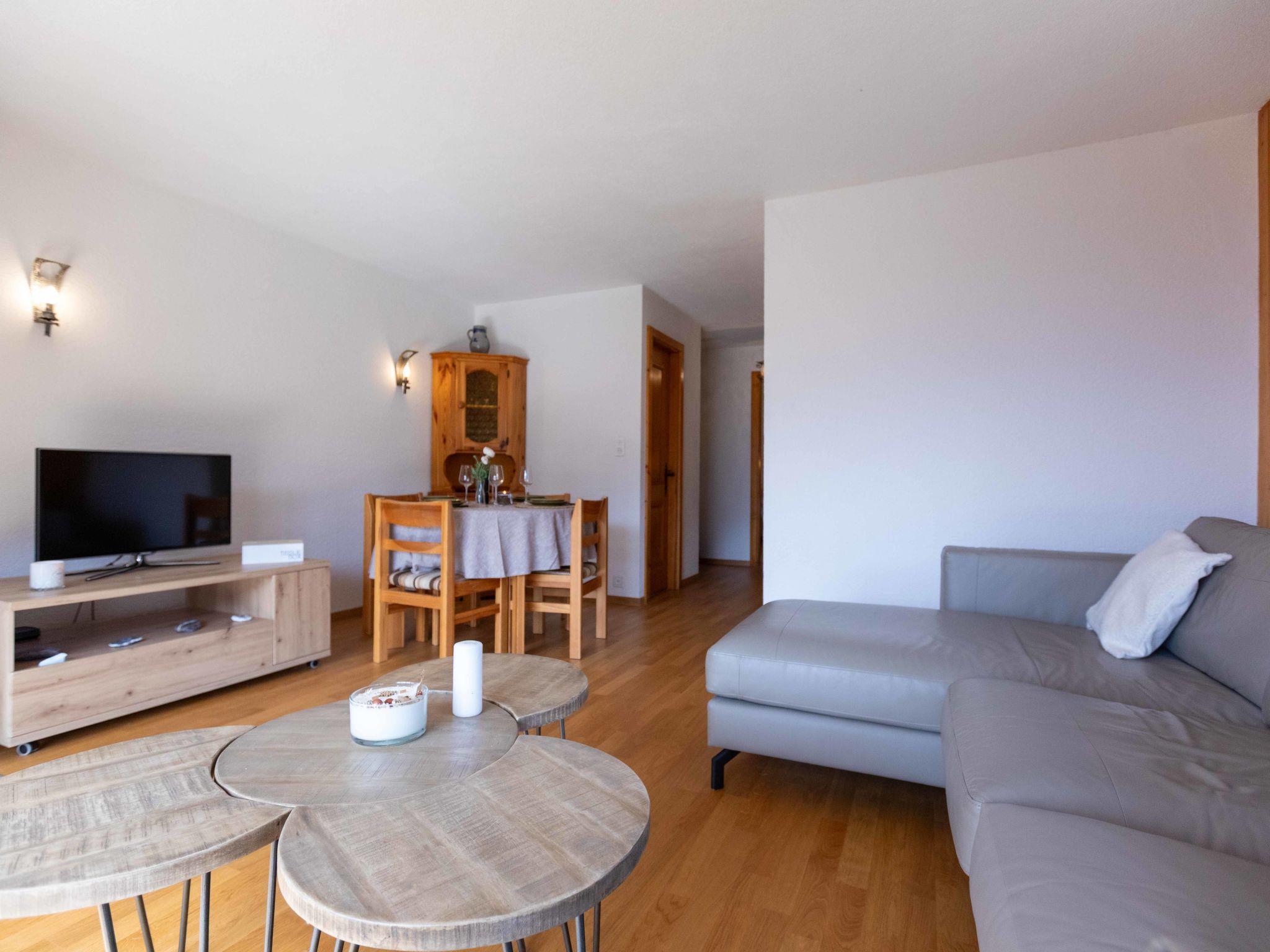 "Vermont 8", 3-room apartment 55 m2 on 2nd floor. Object suitable for 2 adults + 2 children. Practical and comfortable furnishings: living/dining room with open-hearth fireplace and satellite TV. Exit to the balcony, south facing position. 1 room with 2 beds (90 cm, length 200 cm). 1 children's room with 1 x 2 bunk beds (90 cm, length 200 cm). Small kitchen (4 hot plates, oven, dishwasher, Gas stove, toaster, electric coffee machine, Capsules for coffee machine (Dolce Gusto) extra, raclette grill, fondue Set (chinoise, cheese)). Bath/bidet/WC, sep. WC. Large balcony. Balcony furniture. Very beautiful view of the mountains, the ski run and the countryside. Facilities: hair dryer. Internet (WiFi, extra). Parking at the house. Please note: non-smokers only. Maximum 1 small pet/ dog allowed.