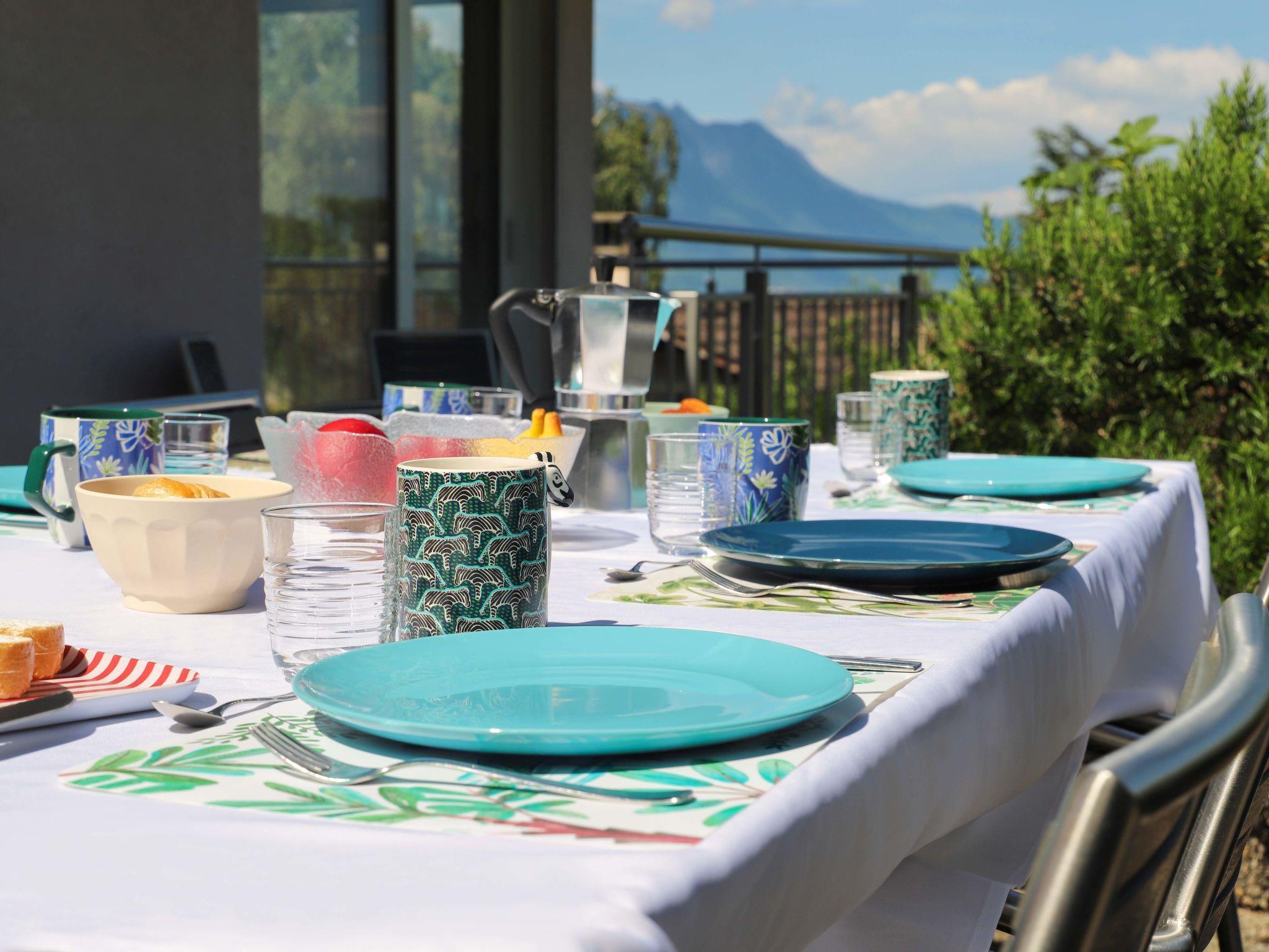 "Route de la Muraz 9", 4-room villa on 2 levels. Comfortable and tasteful furnishings: living/dining room with cable TV (flat screen). Exit to the balcony, to the terrace. 1 room with 1 double bed (160 cm, length 200 cm). Open kitchen (oven, dishwasher, 4 ceramic glass hob hotplates, toaster, kettle, electric coffee machine, Capsules for coffee machine (Nespresso), fondue Set (cheese)). Shower/WC. Upper floor: 1 large room with 1 double bed. Exit to the balcony. 1 room with sloping ceilings with 1 double bed (2 x 90 cm, length 200 cm). Bath/WC. 2 balconies, terrace. Balcony furniture. Marvellous view of the lake, the mountains, the countryside and the resort. Facilities: children's high chair, hair dryer. Internet (WiFi). Parking at the house. Please note: non-smokers only. there are no curtains or blinds in the upper bedrooms.