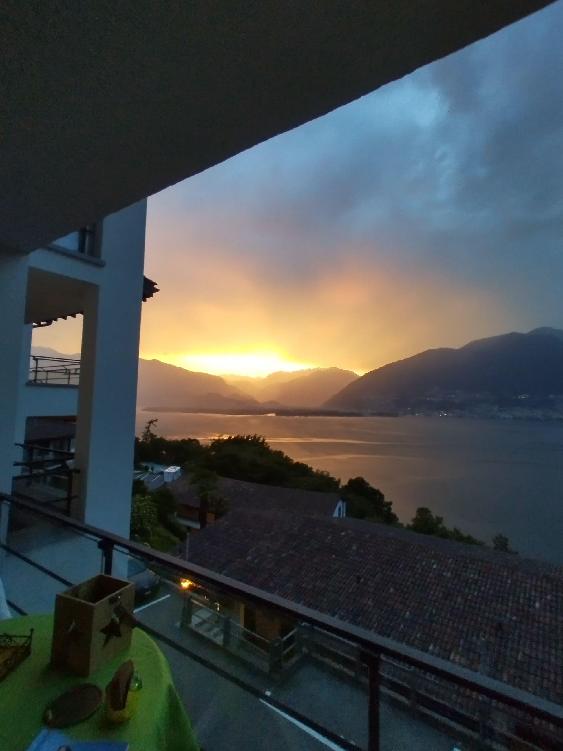Beautiful holiday flat with TOP view in a small paradise with pool. The one-room flat is located in a park-like, secluded property above Vira with its own swimming pool, rustico, spacious sunbathing lawn and panoramic views of Lake Maggiore and Locarno, fitness room, chess board and playground. The perfect place for rest and relaxation. With its old churches and narrow streets, Gambarogno has largely retained the character of the past. The covered balcony offers a magnificent view of Lake Maggiore and Locarno at any time of day. The fully furnished flat is located on the 2nd floor, without lift, in Casa Fiona of the very well-maintained Residenza Viramonte. The Residenza Viramonte consists of 6 houses on a well-kept hillside plot of approx. 16000 m2. Each house has a heat pump for hot water and heating. The flat itself is 46 m2 and has new windows with triple glazing. The beds are made and the bathroom and kitchen linen are laid out. Please bring your own large towels for the pool and beach.
