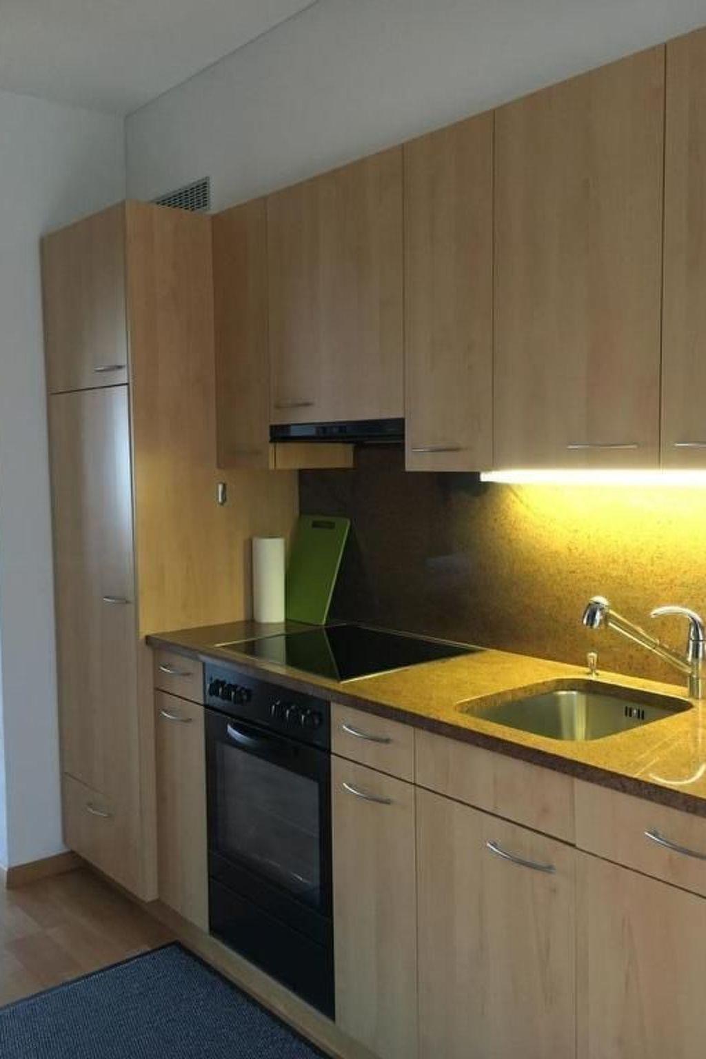 1-room flat with living area, comfortable open sleeping alcove with 1 double bed (separate mattresses), ceiling fan, sofa, 48-inch 4K OLED TV, CD radio stereo system, WiFi. Kitchen with dishwasher (replaced in 2021), large fridge with freezer compartment, oven, kettle, Dolce Gusto and Nespresso coffee machine, filter coffee machine, toaster, egg cooker, spices.