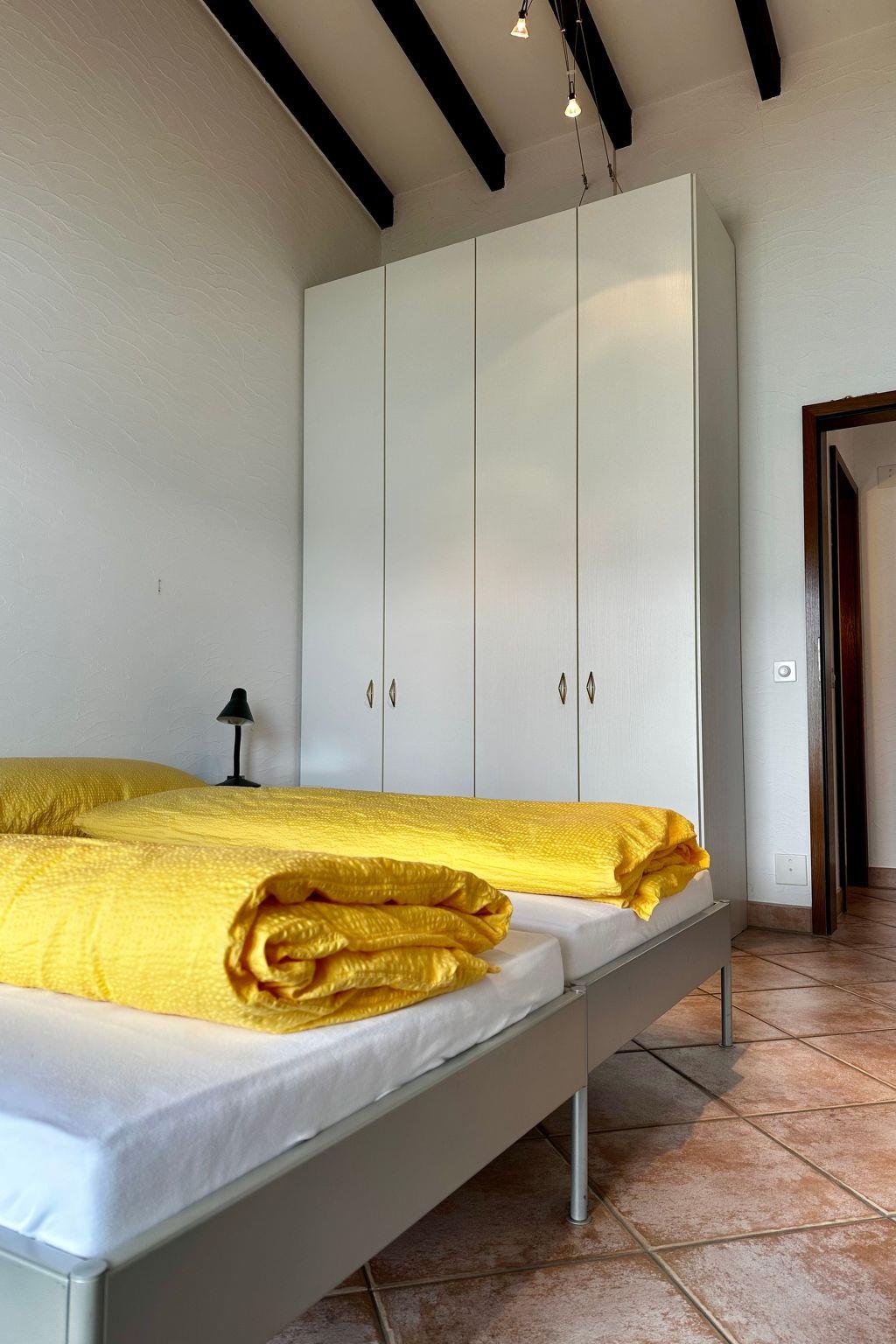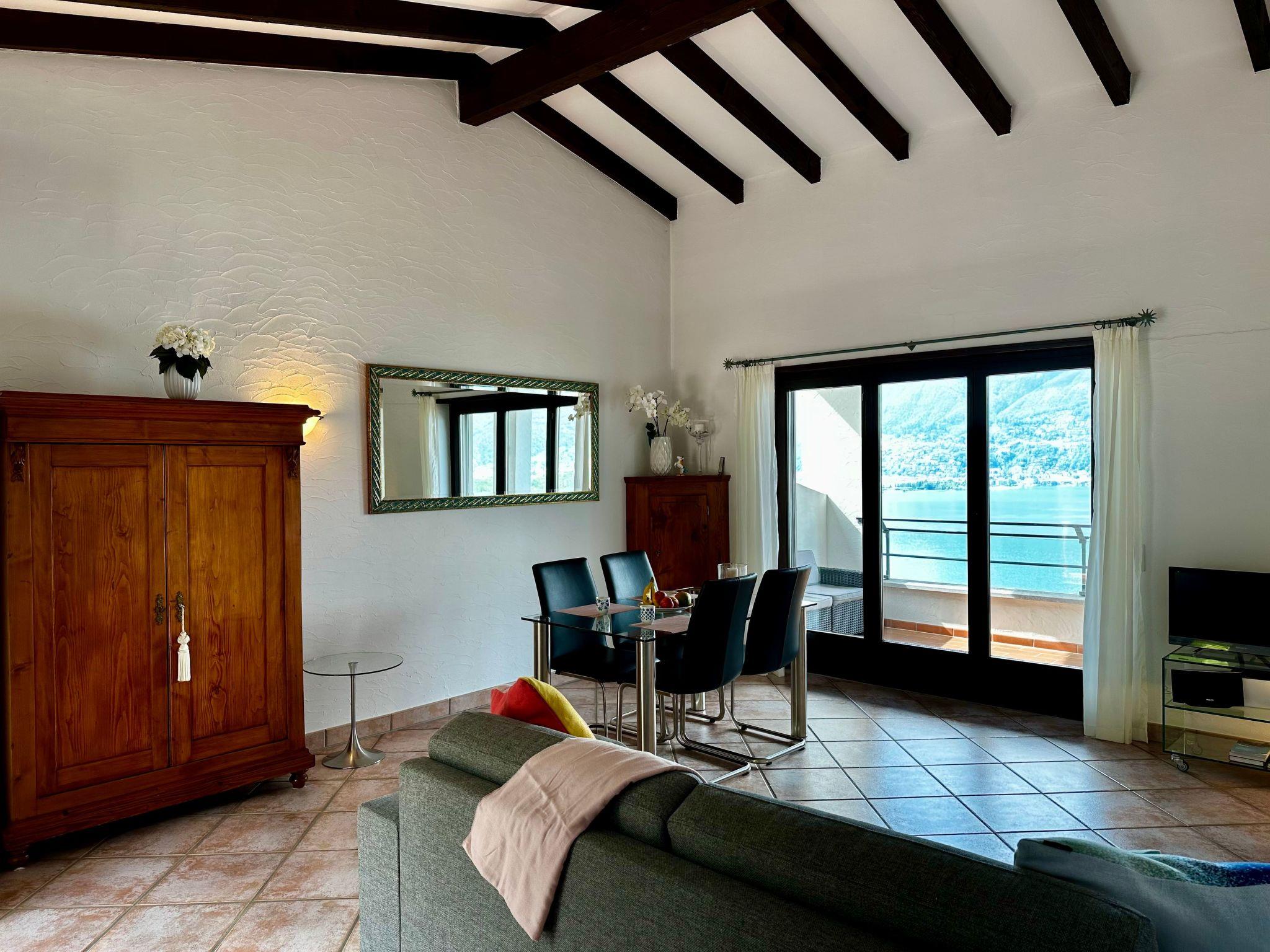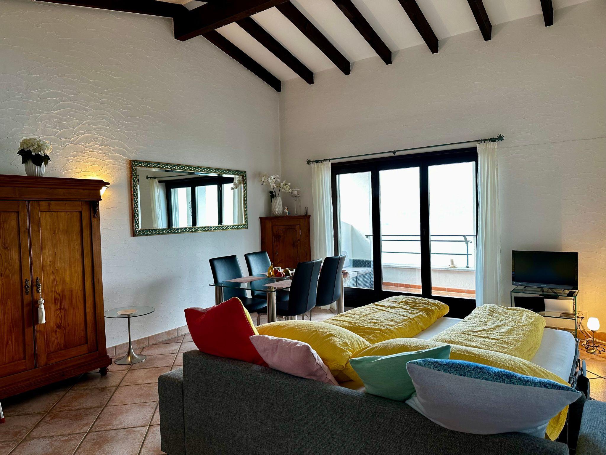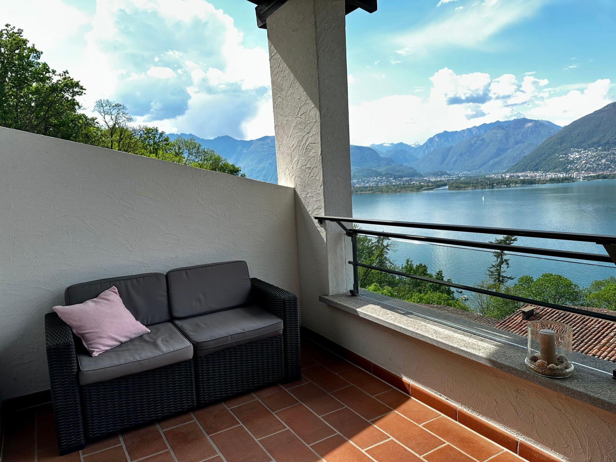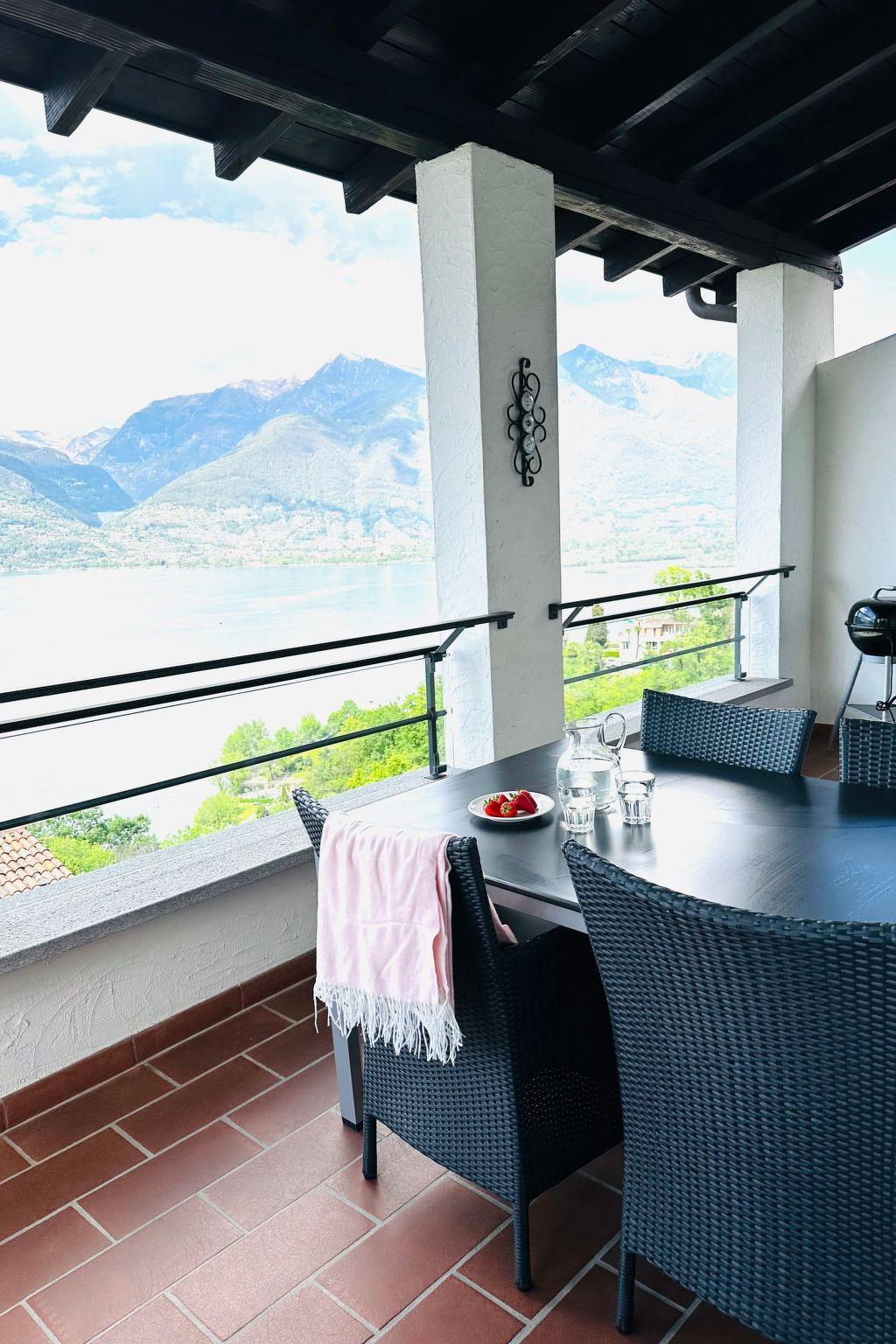 A highlight is the spacious balcony (16m2) with a marvellous view of the lake. Here you can let your gaze wander over the glistening Lake Maggiore and the surrounding mountains, enjoy the warmth of Ticino during the day and the wonderful peace and quiet - thanks to the flat's location on the top floor and the secluded terrace, you have plenty of privacy. In the evening, round off the day with a glass of Merlot while the setting sun bathes the lake in golden and red colours.