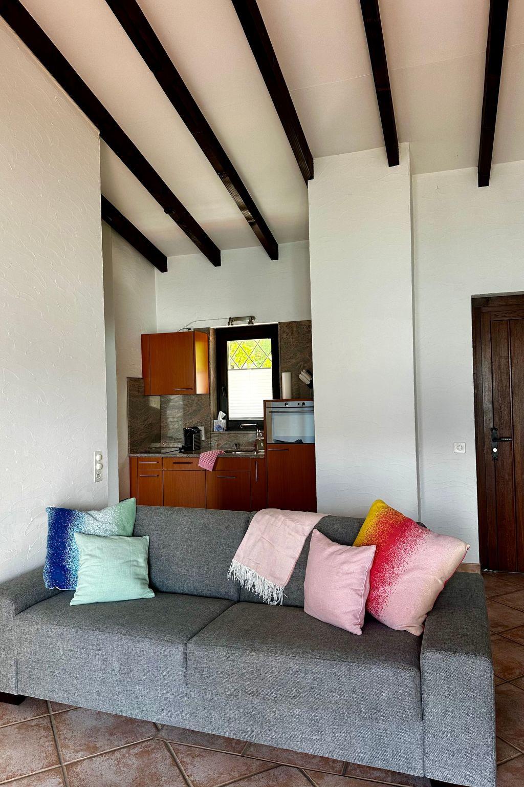 The approx. 45 m2 holiday flat combines Mediterranean flair with modern comfort. In the bright and spacious living room, a comfortable sofa bed (160 x 200 cm) invites you to linger - in the evening it can be transformed into a cosy bed for two in no time at all.