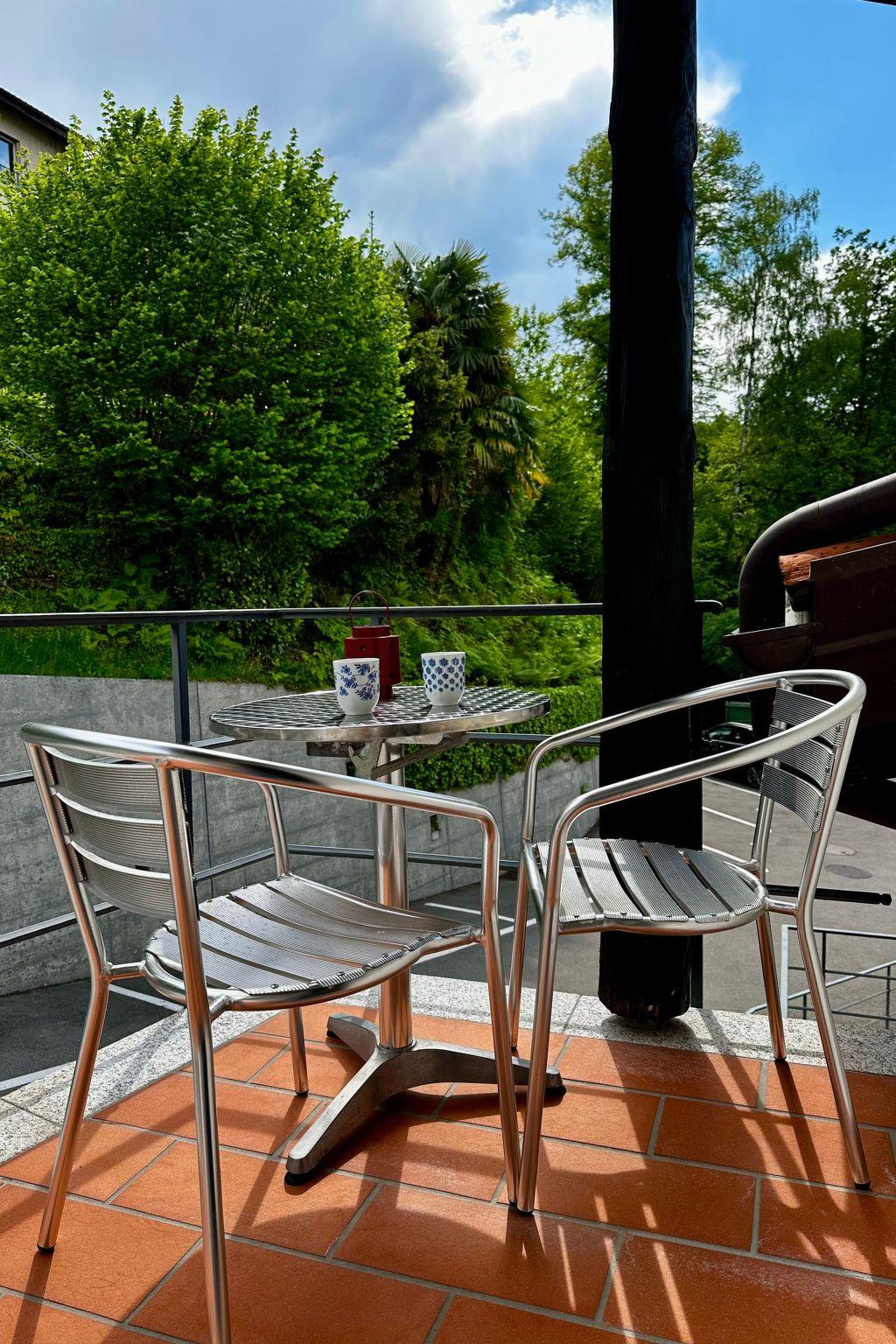 The kitchen is fully equipped: there is a Nespresso coffee machine and a filter coffee machine, an oven, dishwasher, fridge with freezer compartment, kettle, toaster and a 2-ring ceramic hob. So you can make yourself an aromatic coffee in the morning, which you can enjoy on the second, small entrance balcony in the morning sun and spoil your loved ones with a home-cooked Ticino meal in the evening.