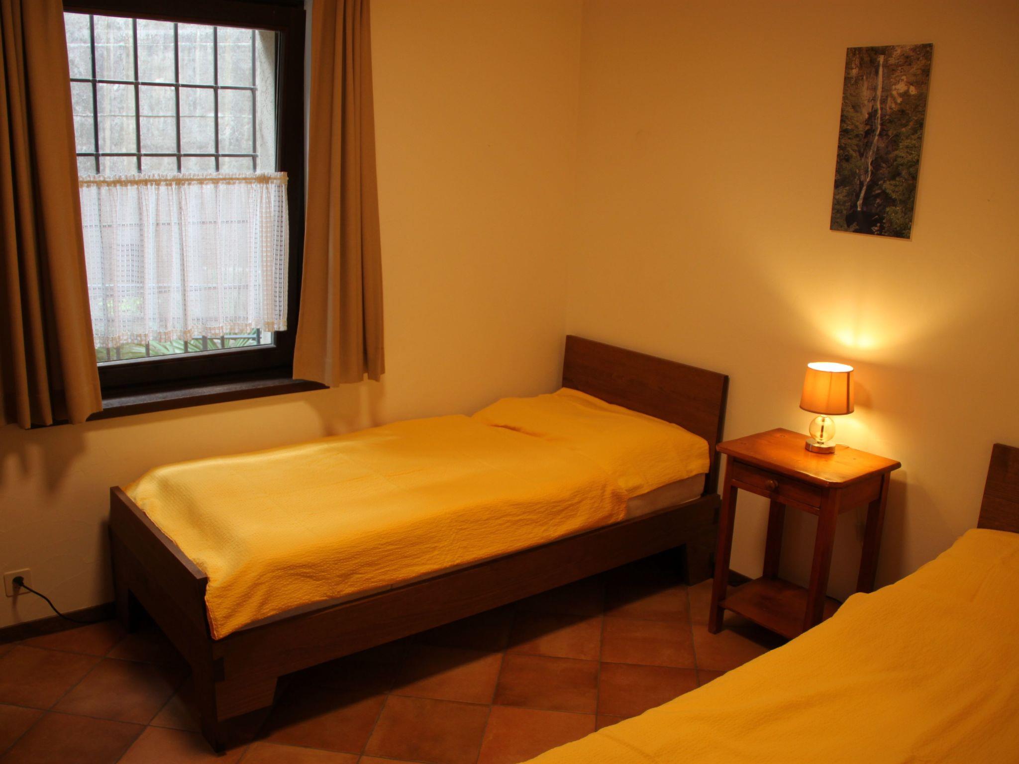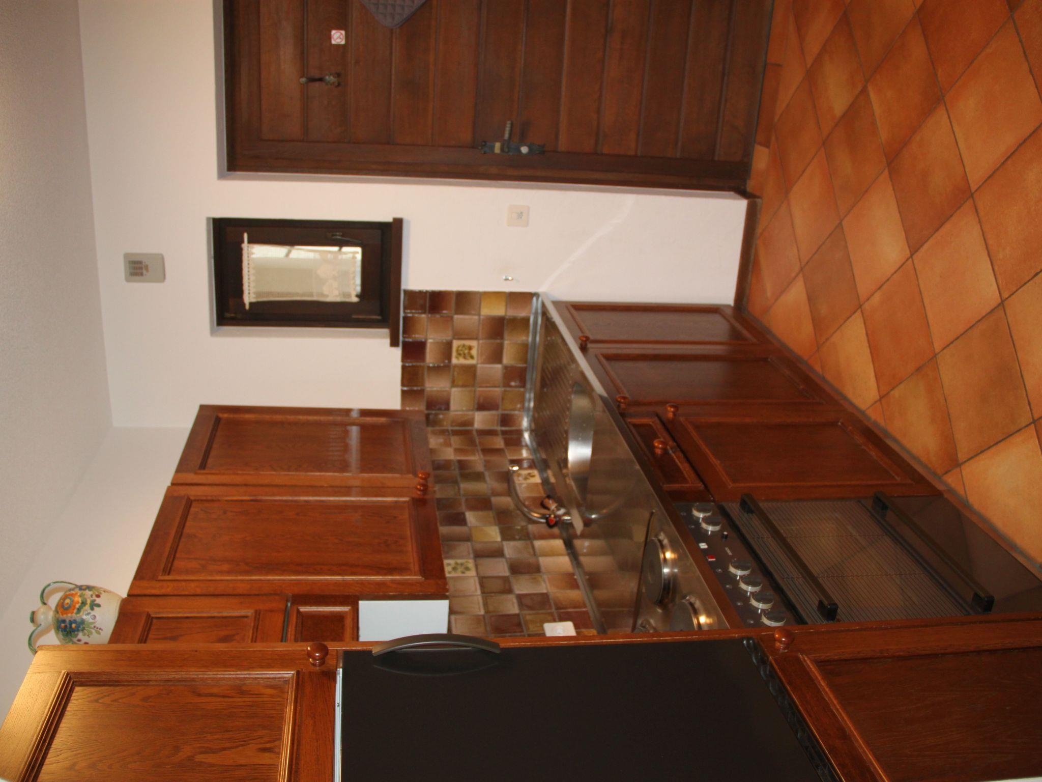 Furnished in traditional Ticino style with stone slab floors and solid chestnut wood furniture, the flat is decorated in warm beige and earthy colours.