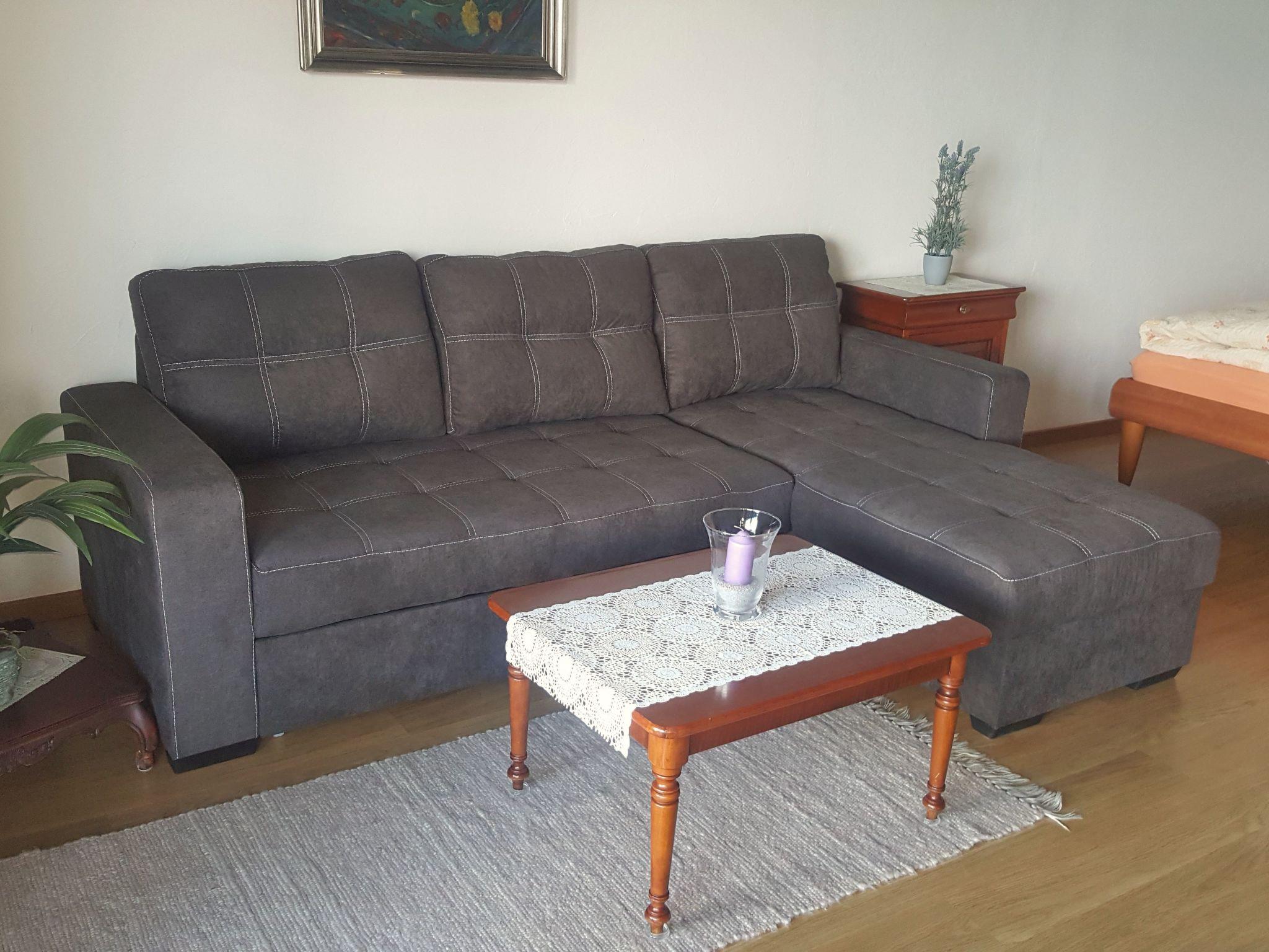 1-room flat with combined living and sleeping area with 2 beds, pull-out sofa bed, TV with radio. Balcony with lake view.