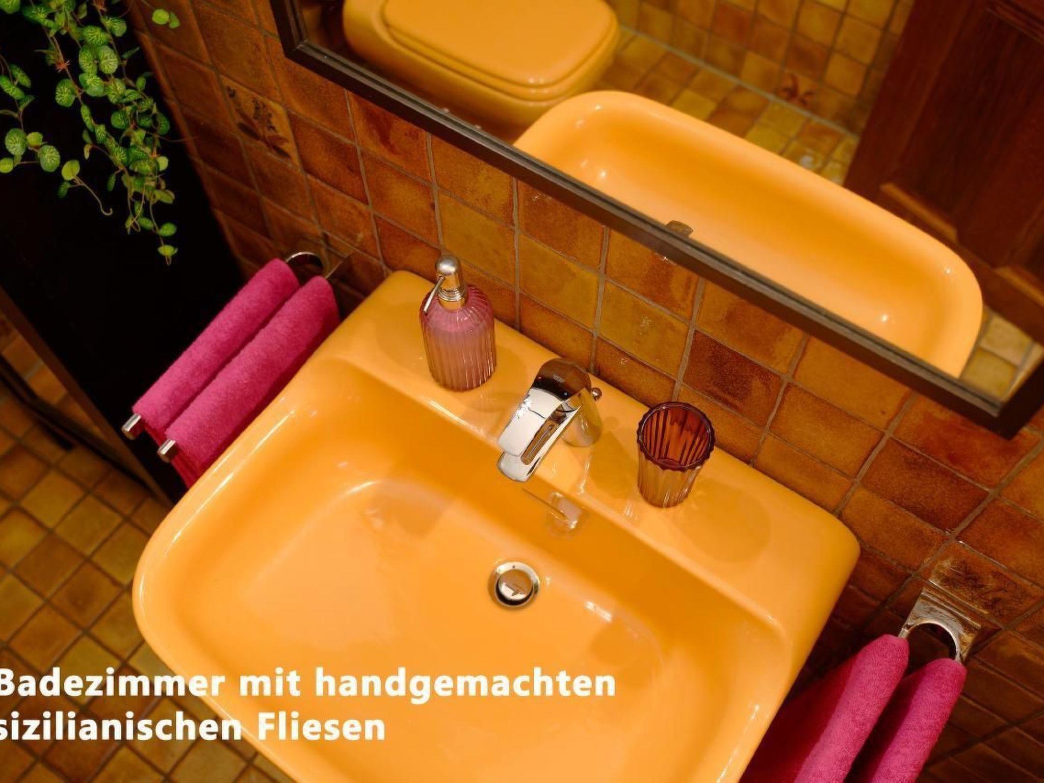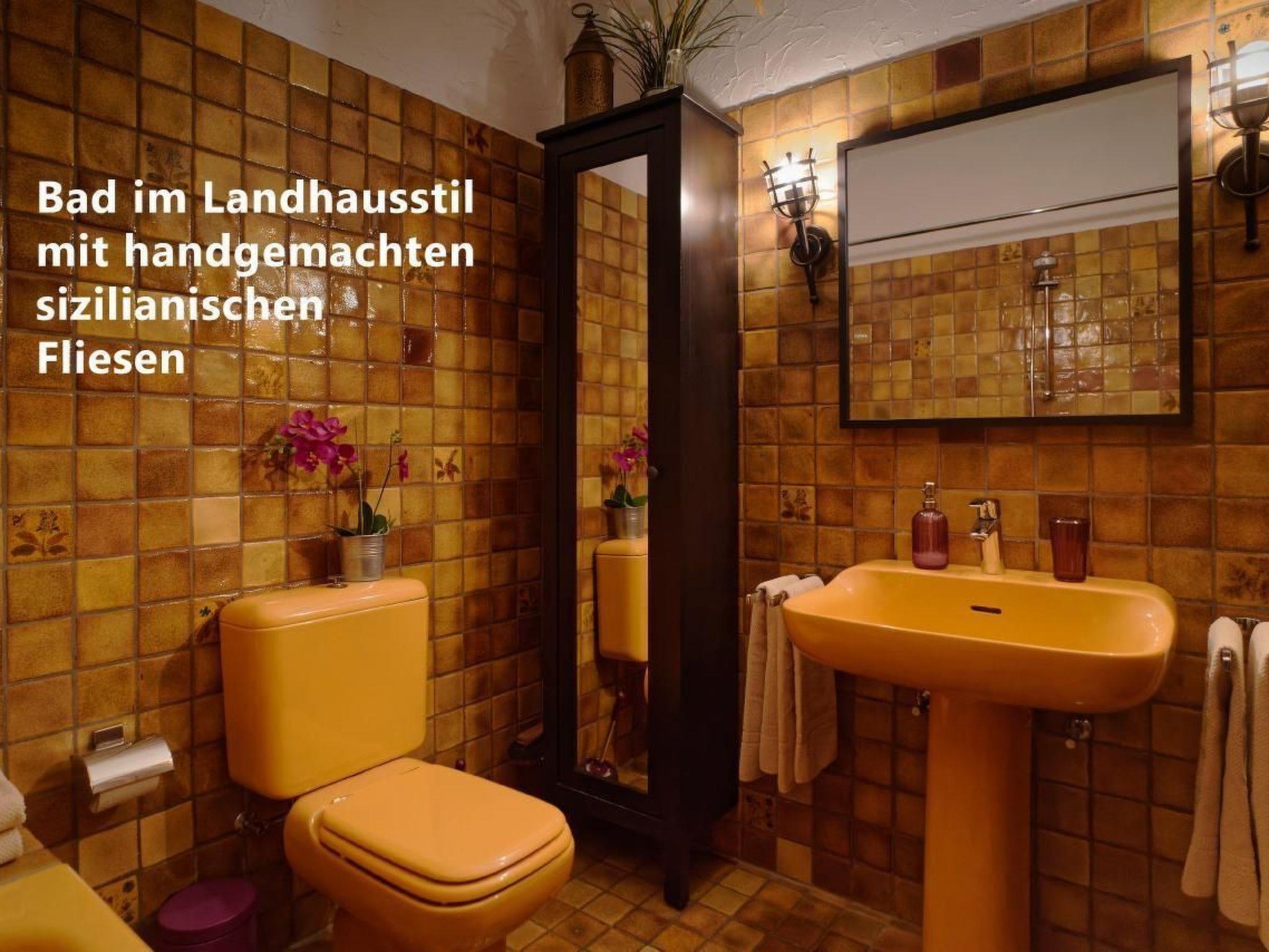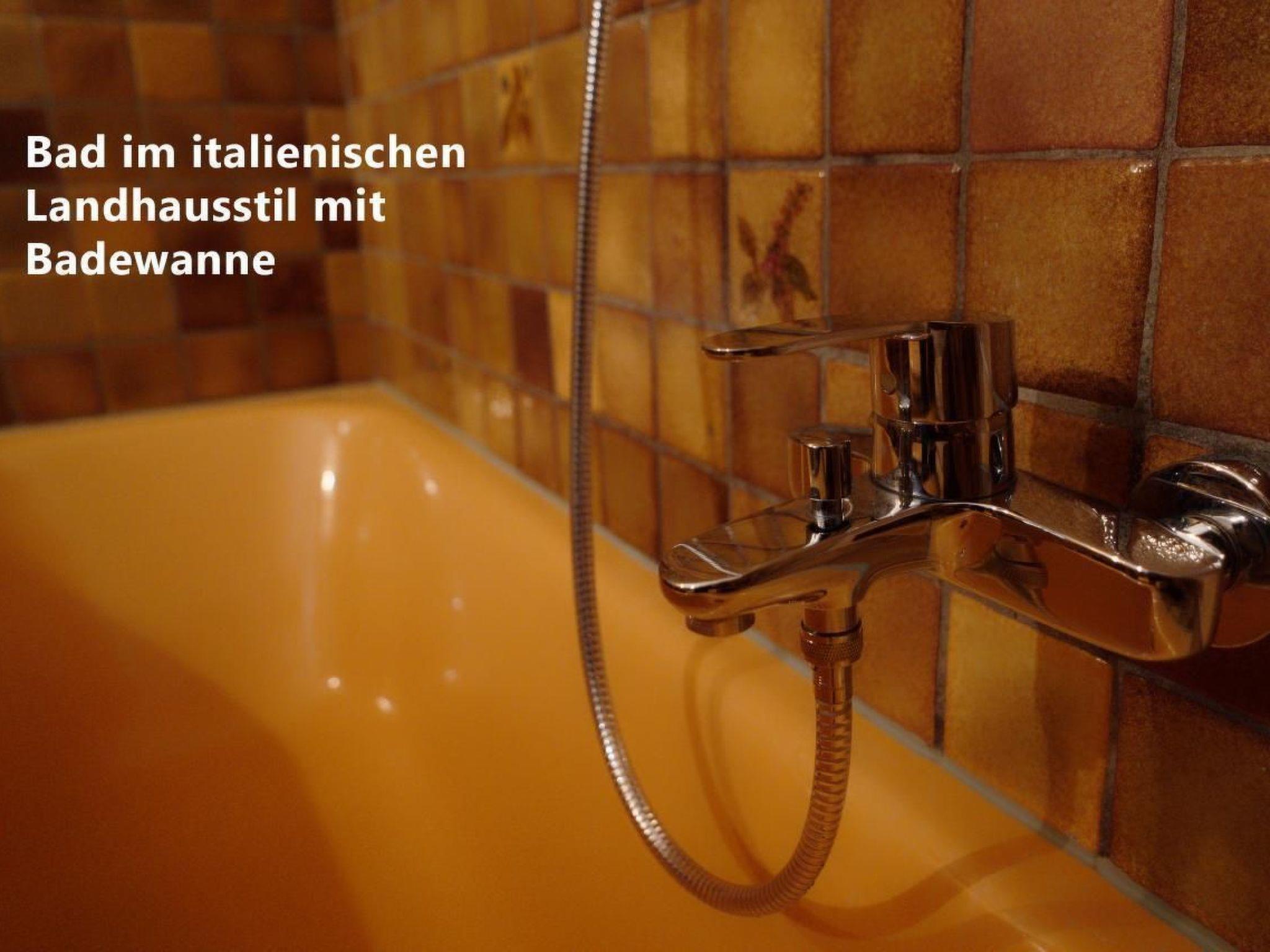 The spacious apartment has an area of approx. 48 square metres including the covered terrace and thus offers more than enough space for 2 adults and 1 child (maximum 2 small children). The furnishings are predominantly in Italian country house style, complemented by some modern furnishings. If you are travelling with a baby, we will be happy to provide you with a foldable baby travel cot at no extra charge. Please let us know in good time.