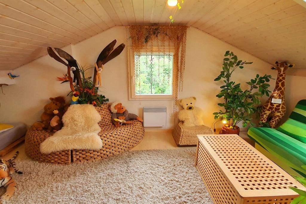 Enjoy the luxurious 5* adventure holiday home/group house with its 6 exceptionally themed rooms (Bali, Finland, Nemo, Holland, Jungle, Hobbit), which will lull you to dream with the sound of the stream next door. In bad weather, your children will be well occupied! Creative pizzas in the wood-fired oven on the terrace and juicy steaks on the fireplace grill are pure enjoyment! Perfect for working from home with the family. Perfect for bachelor parties and birthday celebrations! The Heida Village, with Europe's highest vineyard and panoramic views of the breathtaking mountains, will enchant you with a fine Heida wine. Round off an eventful day with a soothing whirlpool bath or a hot sauna.