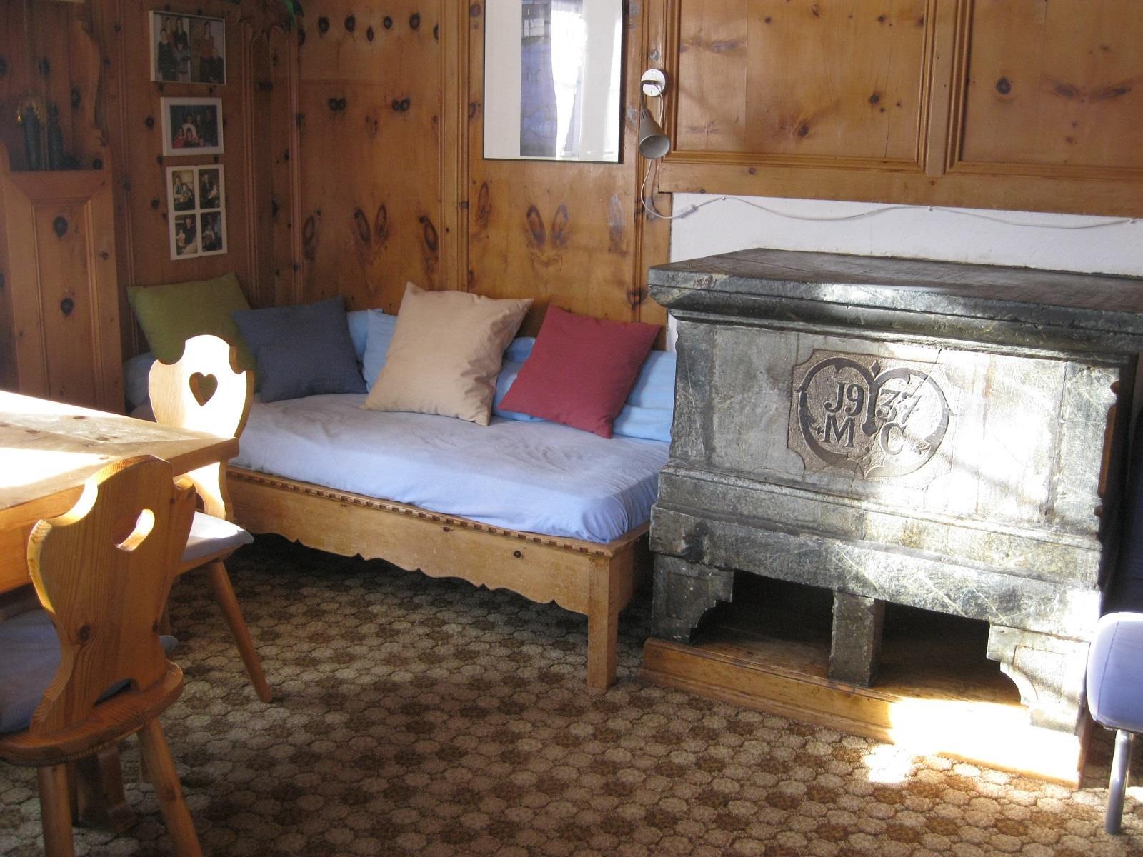 Im Wohnzimmer befindet sich ein Specksteinofen mit Brennholz steht zur Verfügung.. Esstisch mit Eckbank, ein Bettsofa, Radio. Balkon mit Südausrichtung. WLAN vorhanden und im Preis inklusive. Küche: