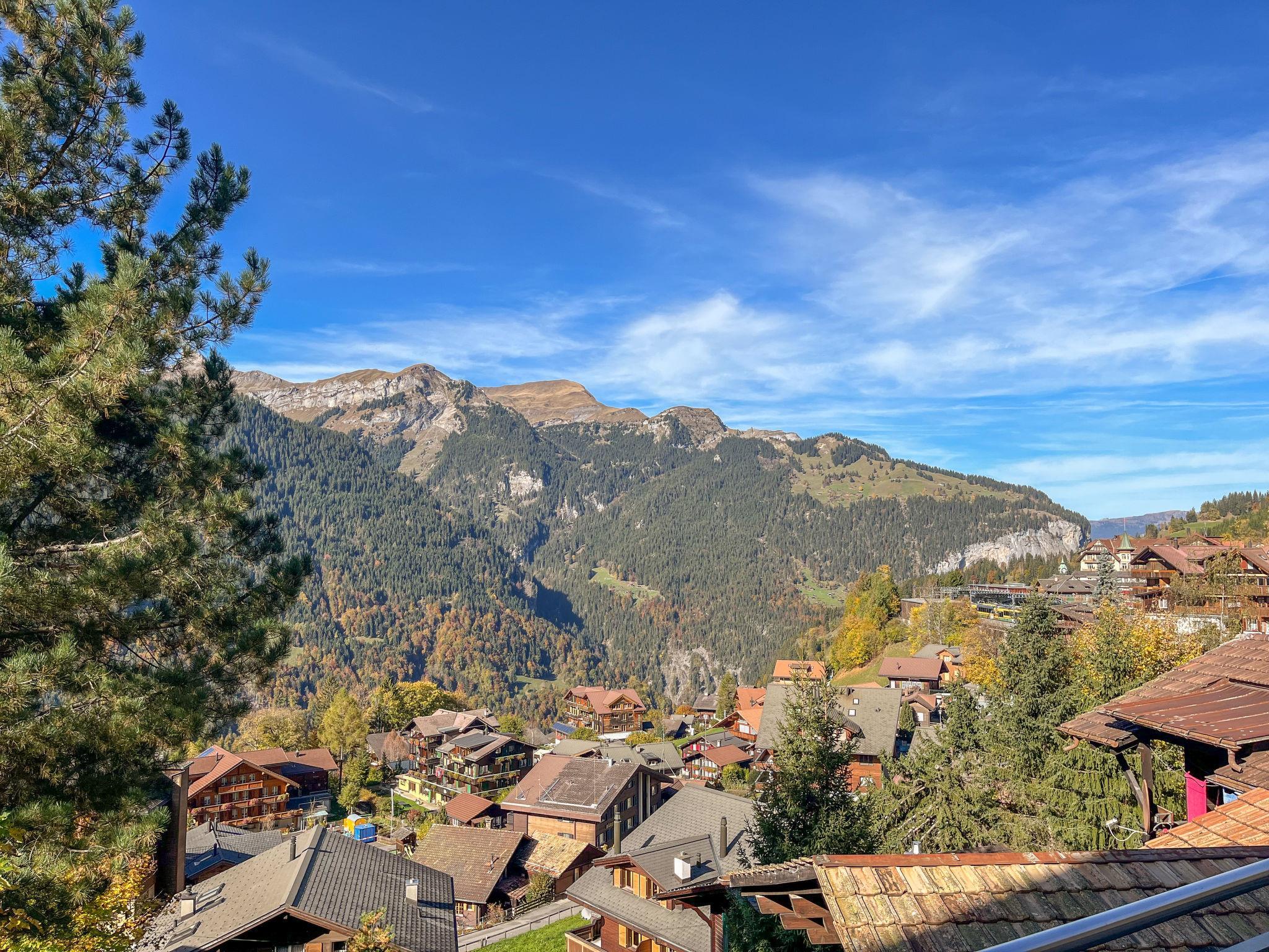Apartment block "Bristol". 600 m from the centre of Wengen, in a quiet position on a slope. In the house: lift, central heating system, washing machine (extra), tumble dryer (for shared use, extra). Pre-arrival grocery service. 50 m footpath to the house. Shop, supermarket 600 m, restaurant 300 m, bar, bakery 600 m, 7 minute walk to the centre, bus stop "Lauterbrunnen (by train)" 3.6 km, railway station "Wengen" 600 m, outdoor swimming pool 700 m. Cable car, skisport facilities 600 m, children's playground 300 m. Well-known lakes can easily be reached: Thunersee 13 km, Brienzersee 13 km. Please note: car-free holiday complex. Arrival via mountain railway. Additional accommodations can be booked. Arrival is only possible by train from Lauterbrunnen – 14 minutes driving time.