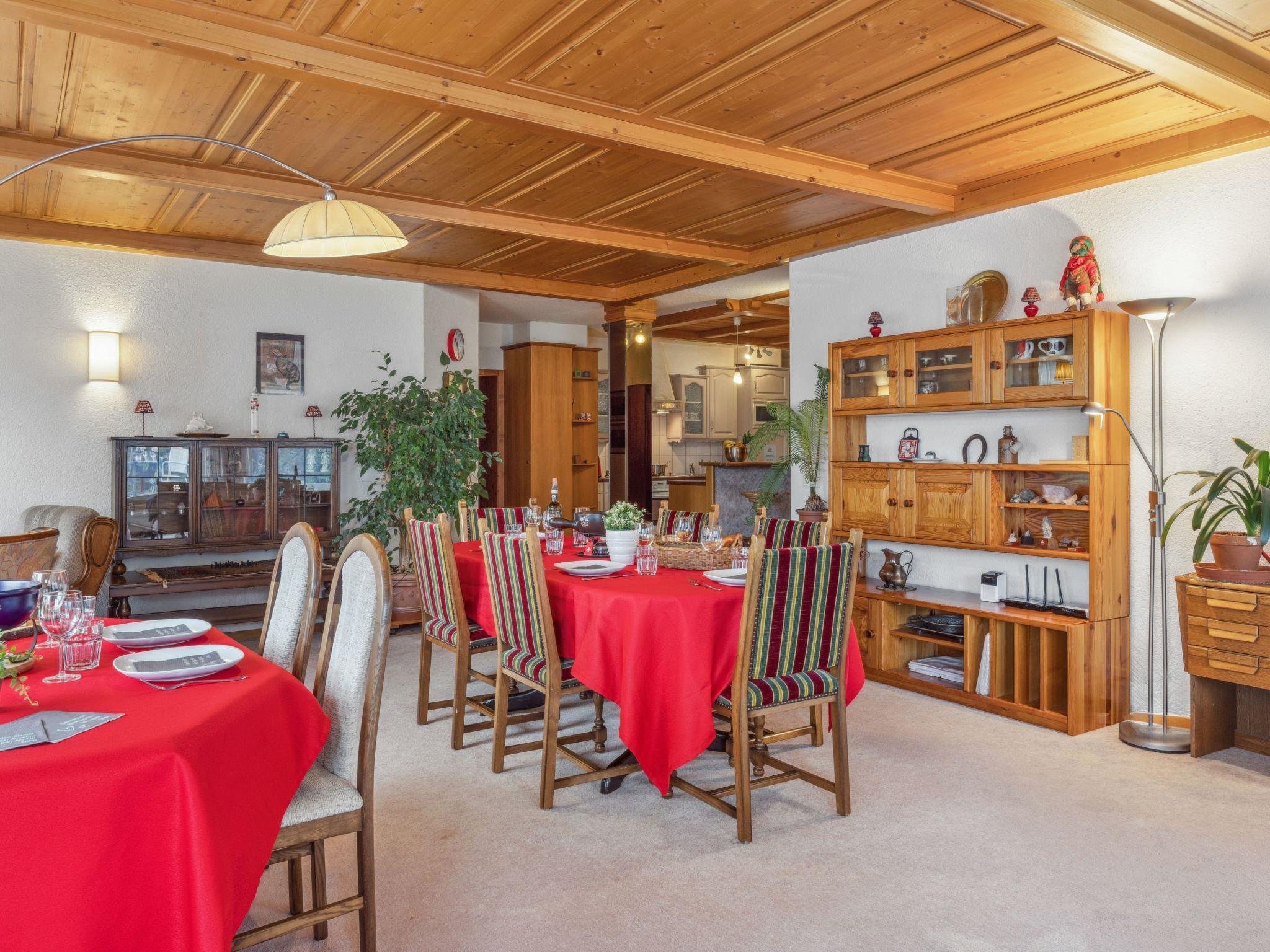 "Bristol Apt.A", 4-room apartment 160 m2, on the upper ground floor. Spacious and bright, comfortable and cosy furnishings: large living/dining room with cable TV and flat screen. Exit to the balcony. 1 room with 1 double bed (2 x 90 cm, length 190 cm). 1 large room with 2 beds (90 cm, length 190 cm), 1 double bed (120 cm, length 200 cm). 1 large room with 4 beds (90 cm, length 200 cm). Large, open kitchen (4 ceramic glass hob hotplates, toaster, kettle, microwave, electric coffee machine, Capsules for coffee machine (Nespresso) extra, raclette grill, fondue Set (cheese)) with bar. Bath/WC, shower/WC. Carpet. Small balcony. Balcony furniture. Marvellous panoramic view of the mountains. Facilities: washing machine, dryer, iron, children's high chair, baby cot for up to 2 year olds (extra), hair dryer. Internet (WiFi, free). Please note: suitable for families. Non-smokers only.