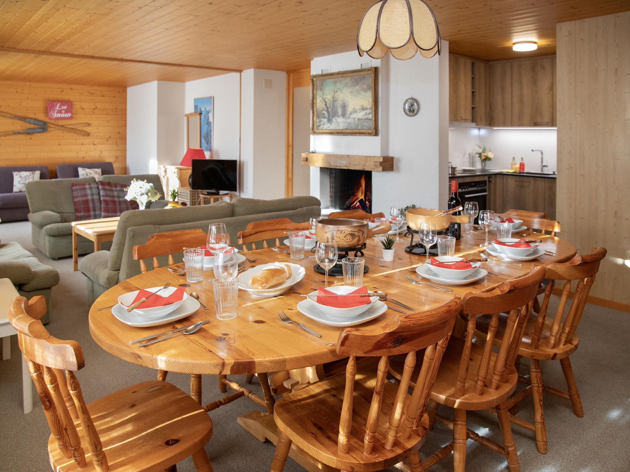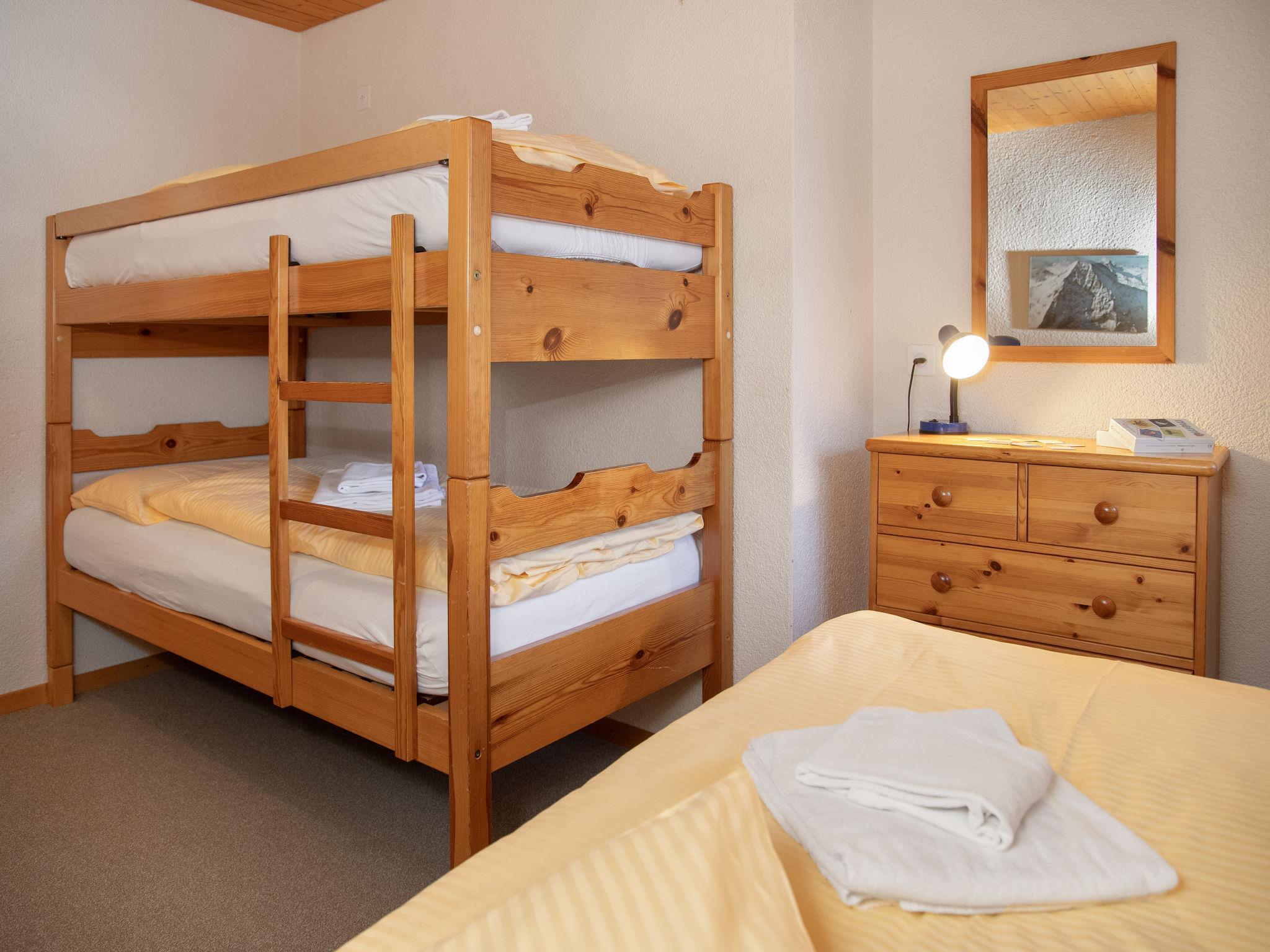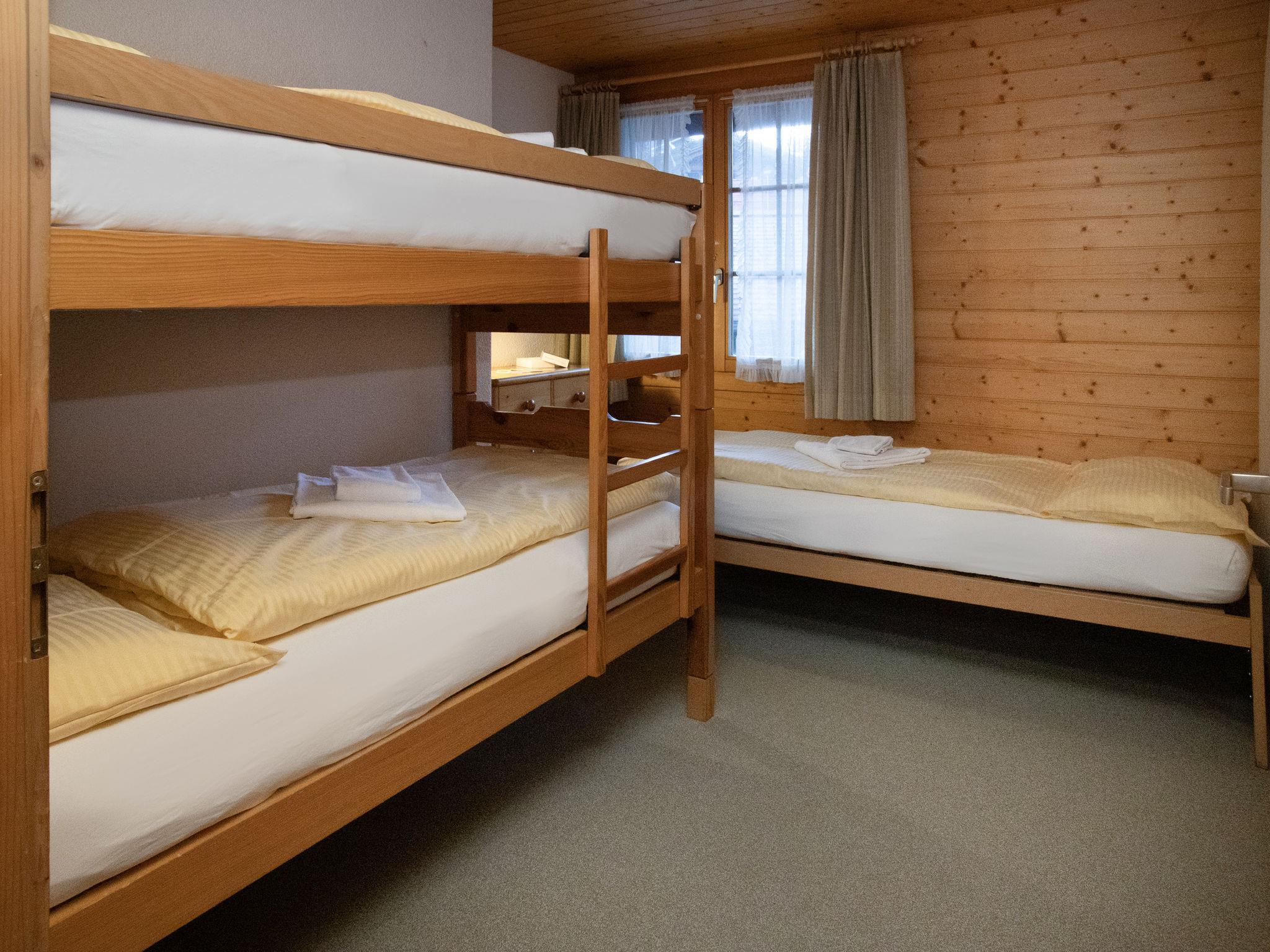 "Chäs Gruebi Apt.S", 4-room apartment 108 m2 on 2nd floor. Comfortable and cosy furnishings: living/dining room with 1 sofabed (80 cm, length 180 cm), 1 double sofabed (140 cm, length 180 cm), open-hearth fireplace, cable TV, radio and DVD. 2 rooms, each room with 1 double bed (2 x 80 cm, length 200 cm), shower/WC. 1 room with 1 bed (90 cm, length 190 cm), 1 x 2 bunk beds (90 cm, length 190 cm). Small kitchen (4 hot plates, oven, dishwasher, toaster, kettle, electric coffee machine, Capsules for coffee machine (Nespresso) extra, fondue Set (cheese)). Bath/WC. Heating. Balcony. Beautiful view of the mountains. Facilities: iron, hair dryer, logs (extra). Internet (WiFi, free). Please note: non-smokers only.