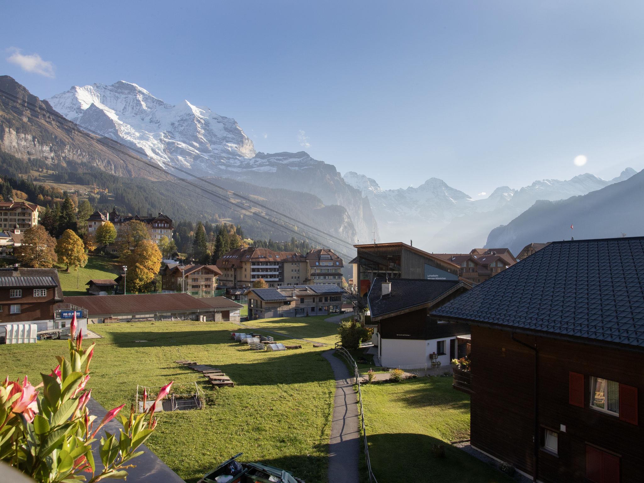 Apartment block "Chäs Gruebi". In the resort 100 m from the centre of Wengen, in a central, sunny position. In the house: central heating system. Pre-arrival grocery service. Shop 20 m, grocery 1 m, supermarket 100 m, restaurant 20 m, 3 minute walk to the centre, bus stop "Lauterbrunnen (by train)" 3.1 km, railway station "Wengen" 100 m, outdoor swimming pool 300 m. Cable car, skisport facilities, slopes 50 m. Well-known lakes can easily be reached: Thunersee 13 km, Brienzersee 13 km. Please note: car-free holiday complex. Arrival via mountain railway. Arrival is only possible by train from Lauterbrunnen – 14 minutes driving time.