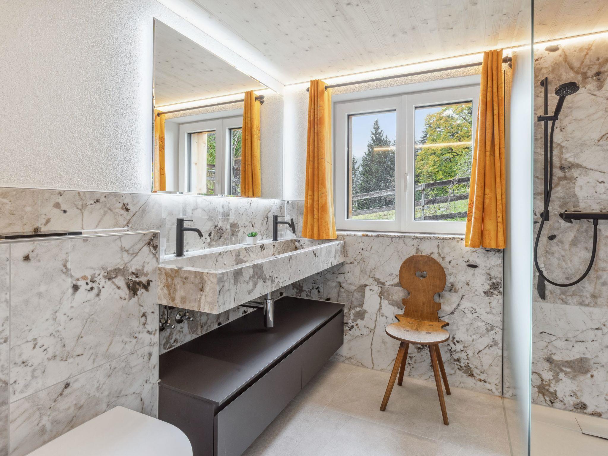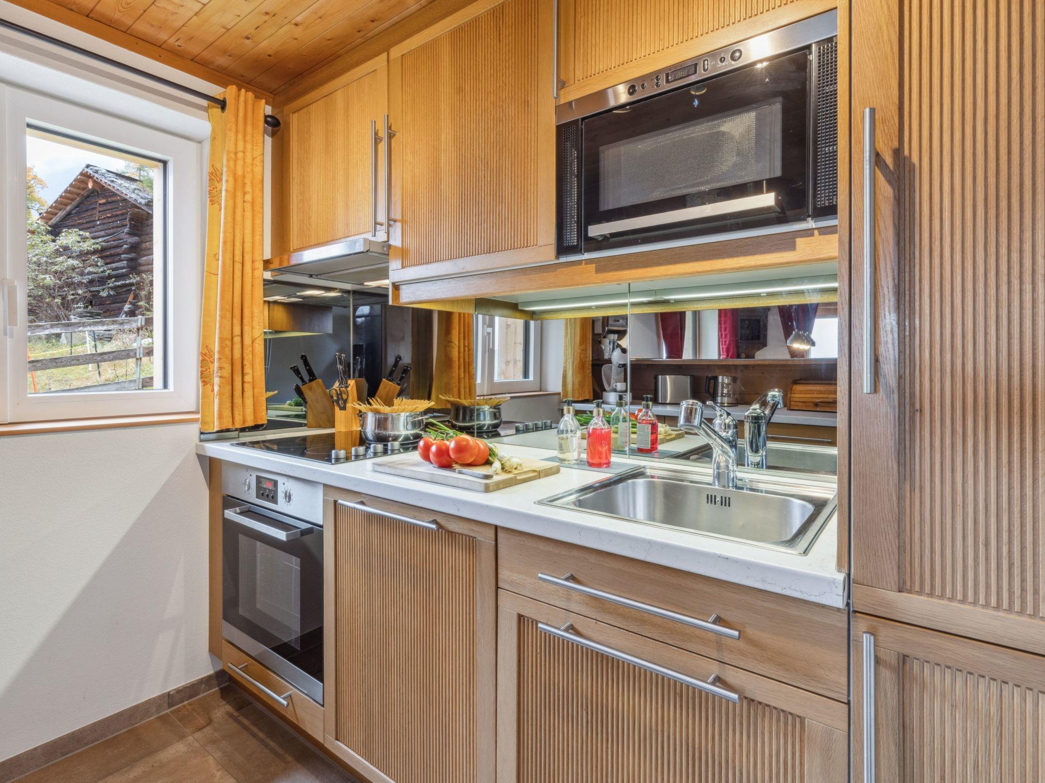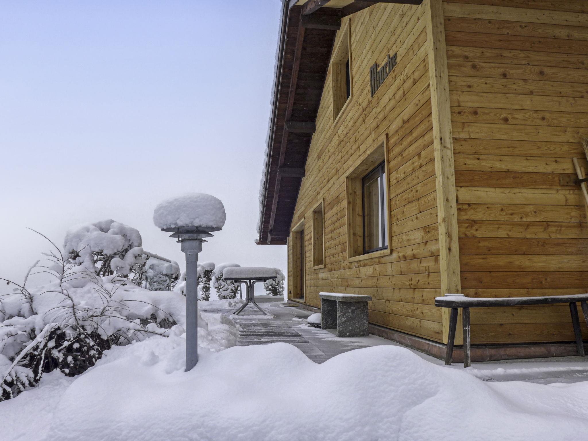 "Mioche", 4-room chalet 120 m2 on 2 levels. Spacious, rustic and cosy furnishings: living/dining room with open-hearth fireplace, satellite TV, radio, CD-player and DVD. 1 room with 1 double bed (2 x 90 cm, length 200 cm). Kitchen (oven, dishwasher, 4 ceramic glass hob hotplates, toaster, kettle, microwave, electric coffee machine, Capsules for coffee machine (Dolce Gusto) extra, raclette grill, fondue Set (cheese)). Shower/bidet/WC, sep. WC. Upper floor: with sloping ceilings, 2 rooms, each room with 2 beds (90 cm, length 200 cm). Shower/WC. Large terrace. Terrace furniture. Marvellous panoramic view of the mountains. Facilities: iron, hair dryer, logs (extra). Internet (WiFi, free). Please note: suitable for families. Non-smokers only.