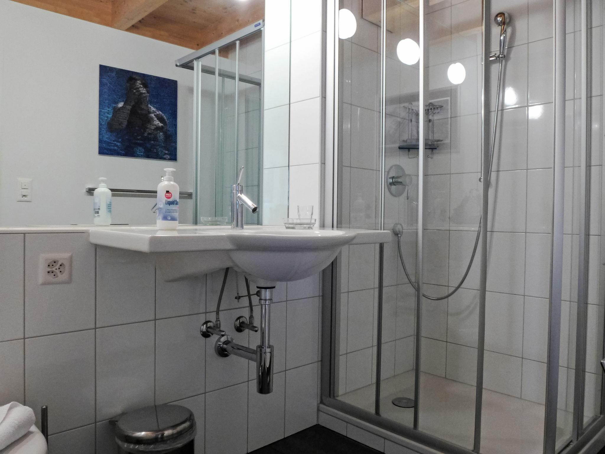 "Roossi Apt. 1", 4-room apartment 100 m2 on 2 levels. Spacious and bright, modern and tasteful furnishings: living/dining room with dining table and cable TV. 1 room with 1 double bed (1 x 180 cm, length 200 cm). Open kitchen (oven, dishwasher, 4 ceramic glass hob hotplates, toaster, kettle, microwave, electric coffee machine, Capsules for coffee machine (Nespresso) extra, fondue Set (cheese)). On the lower ground floor: 1 room with 1 double bed (1 x 150 cm, length 200 cm). 1 room with 2 beds (90 cm, length 200 cm). Shower/WC, bath/shower/WC. Terrace. Terrace furniture. Very beautiful view of the mountains. Facilities: washing machine, dryer, hair dryer. Internet (WiFi, free). Please note: non-smokers only.
