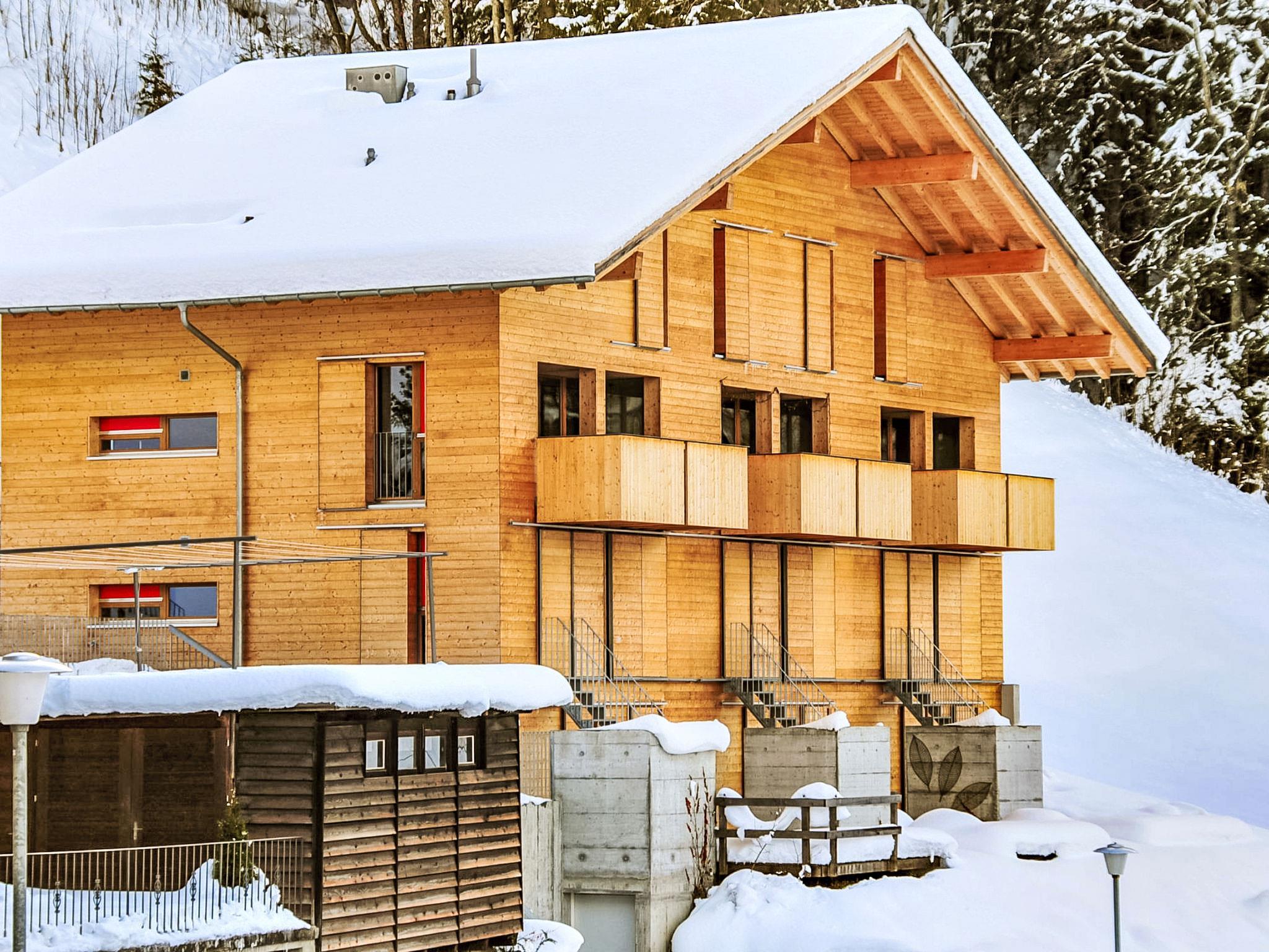 Apartment block "Roossi", built in 2005. 600 m from the centre of Wengen, in a quiet, sunny position on a slope. In the house: central heating system. Pre-arrival grocery service. Shop, supermarket 600 m, restaurant 300 m, bar, bakery 600 m, 7 minute walk to the centre, bus stop "Lauterbrunnen (by train)" 3.6 km, railway station "Wengen" 600 m, outdoor swimming pool 800 m. Cable car, skisport facilities 600 m, children's playground 350 m. Well-known lakes can easily be reached: Thunersee 13 km, Brienzersee 13 km. Please note: car-free holiday complex. Arrival via mountain railway. Arrival is only possible by train from Lauterbrunnen – 14 minutes driving time.
