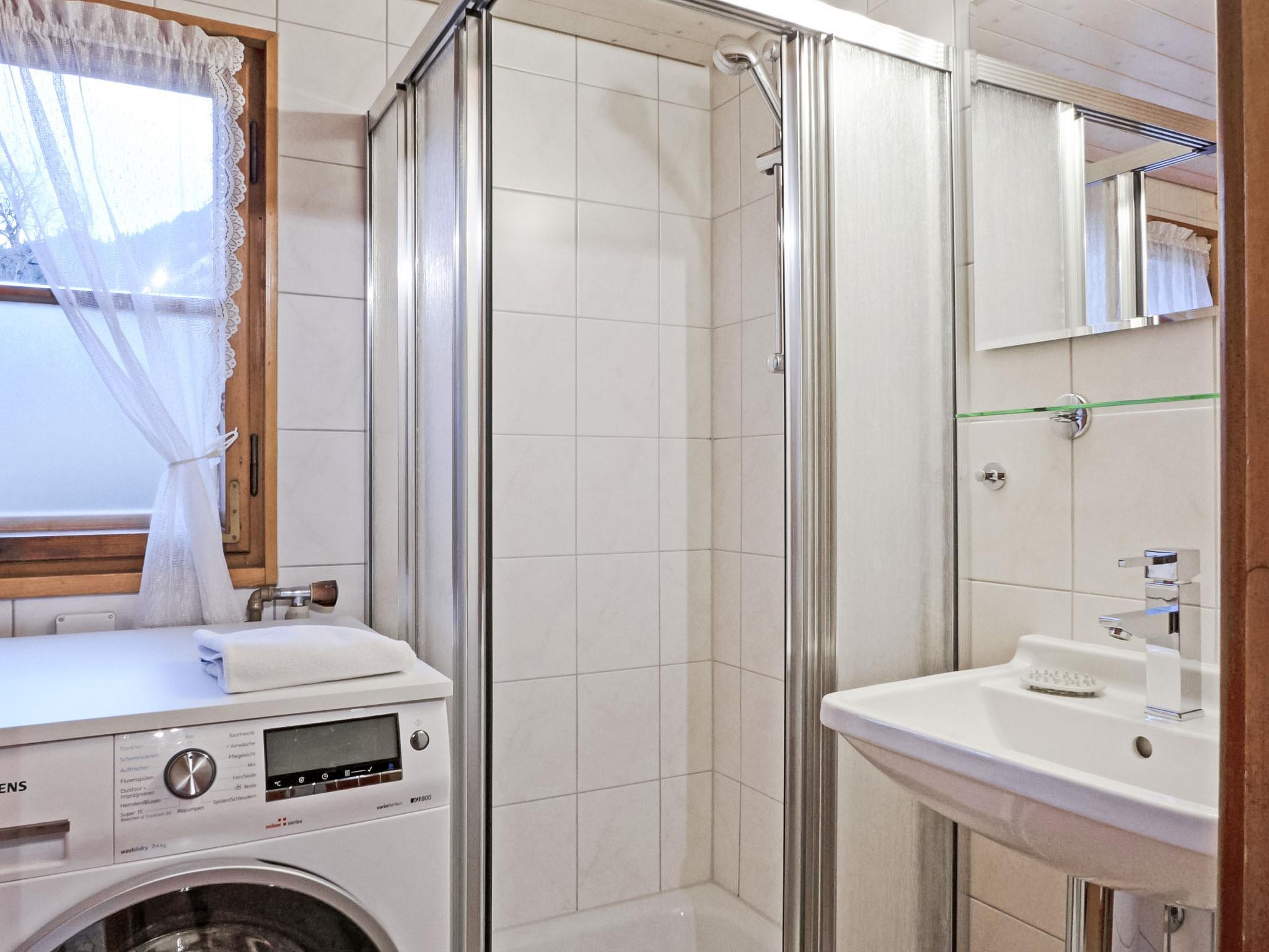 "Zwärgli", 4-room chalet. Comfortable and rustic furnishings: living/dining room with open-hearth fireplace (only for decoration), dining table, satellite TV, radio, CD-player and DVD. 1 room with 2 beds (90 cm, length 200 cm). 1 room with 1 x 2 bunk beds (80 cm, length 180 cm). Living room. Kitchen (oven, dishwasher, 4 induction hot plates, toaster, kettle, microwave, freezer, electric coffee machine, Capsules for coffee machine (Nespresso) extra, fondue Set (chinoise, cheese)). Shower, shower/WC, sep. WC. Electric heating, boiler. Upper floor: (ladder) open gallery with 1 double bed (1 x 140 cm, length 200 cm). Terrace. Terrace furniture. Very beautiful panoramic view of the mountains. Facilities: washing machine, hair dryer. Internet (WiFi, free). Please note: non-smoking house. Mezzanine not suitable for children. Access via a ladder. Instead of an enclosed bedroom, some sleeping areas are located in an open-plan area (gallery, alcove, etc.).