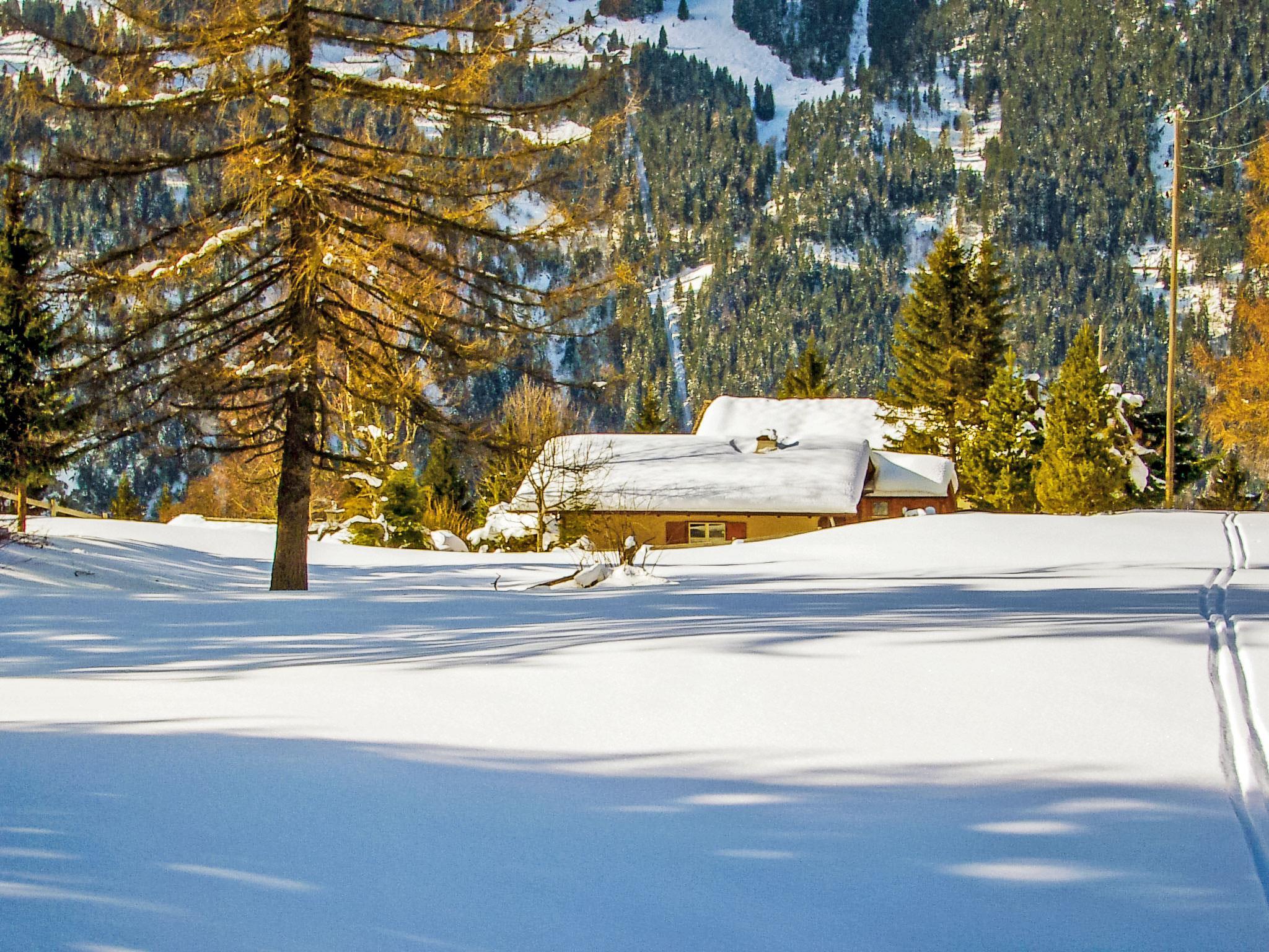 Chalet "Zwärgli". Above Zentrum Wengen, in the district of Stutzweidli with 6 houses, 1.5 km from the centre, in a quiet, sunny position on a slope, 50 m from the edge of the forest. Pre-arrival grocery service. Motor access to 50 m from the house. Shop 1.5 km, supermarket 1.5 km, restaurant 1.5 km, bar 1.5 km, bakery 1.5 km, 15 minute walk to the centre, bus stop "Lauterbrunnen (by train)" 4.5 km, railway station "Wengen" 1.5 km, outdoor swimming pool 1.5 km. Cable car 1.5 km, skisport facilities 1.5 km, slopes 50 m. Well-known lakes can easily be reached: Thunersee 13 km, Brienzersee 13 km. Please note: car-free holiday complex. In case of good snow conditions, the house is accessible on skis. Arrival via mountain railway. Arrival is only possible by train from Lauterbrunnen – 14 minutes driving time.