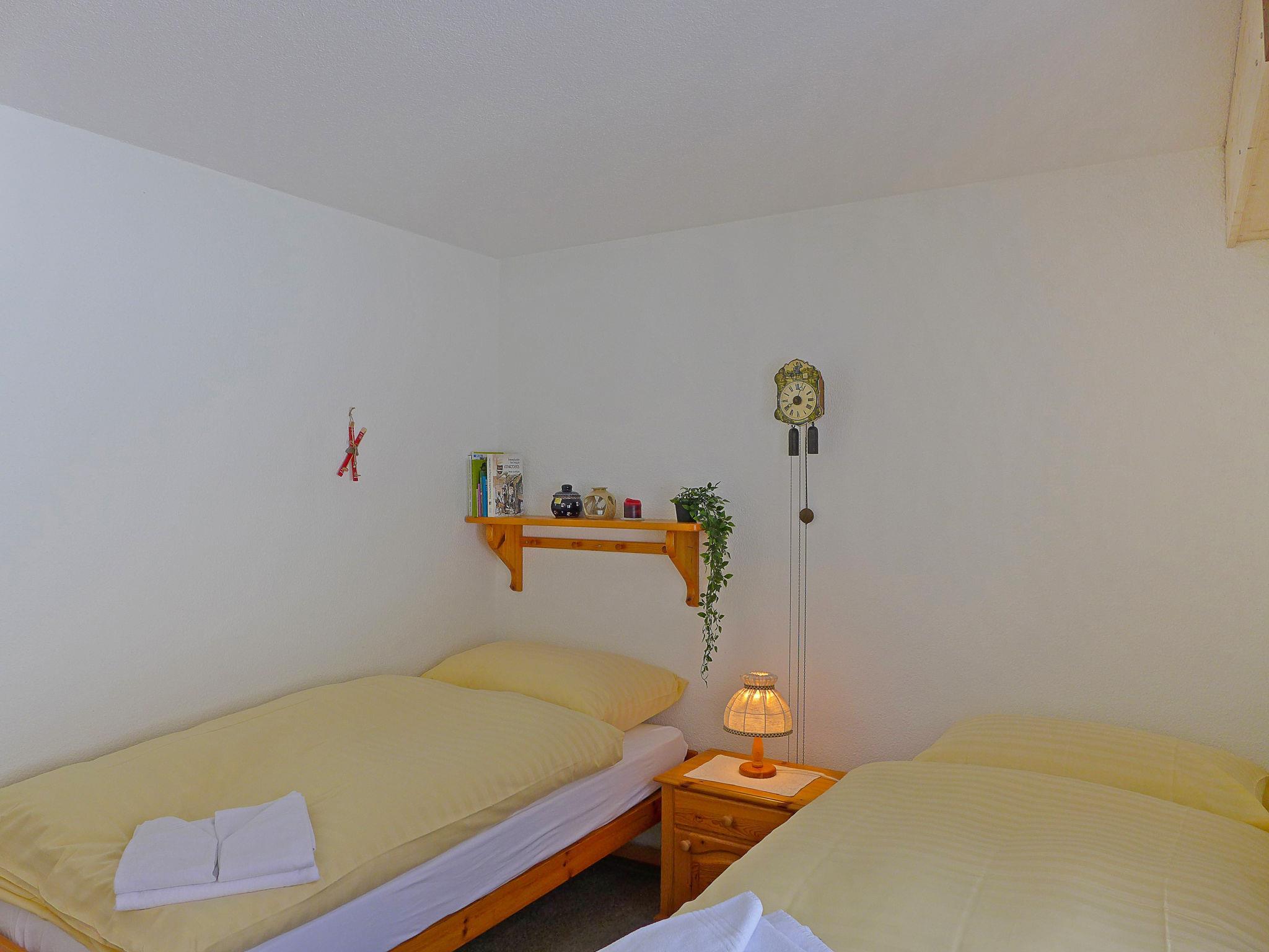 "Rustica Apt. M", 3-room apartment 63 m2, on the ground floor. Bright, comfortable and cosy furnishings: living/dining room with dining table, cable TV and radio. Exit to the terrace. 1 room with 1 double bed (2 x 90 cm, length 200 cm). 1 room with 2 beds (90 cm, length 200 cm). Open kitchen (oven, dishwasher, 4 ceramic glass hob hotplates, toaster, kettle, microwave, electric coffee machine, Capsules for coffee machine (Nespresso) extra, raclette grill, fondue Set (cheese)) with small bar. Shower, sep. WC. Terrace, south facing position. Terrace furniture, electric barbecue. Marvellous view of the mountains and the resort. Facilities: hair dryer. Internet (WiFi, free). Please note: suitable for families. Non-smokers only.
