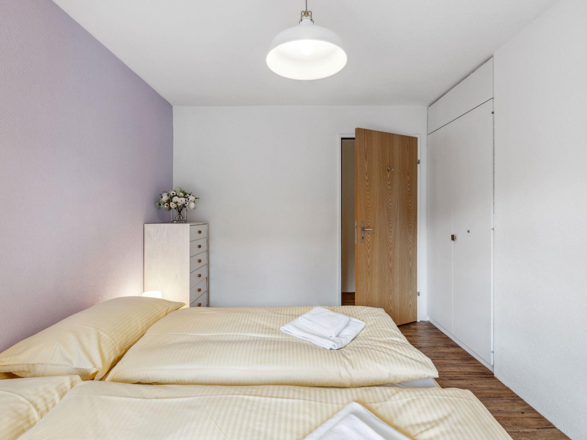 "BeKb-Gebäude Apt. 01", 4-room apartment on 1st floor. Spacious and bright, comfortable and modern furnishings: large living/dining room 120 m2. Exit to the terrace. Living/sleeping room with 2 beds (80 cm, length 200 cm), TV. Exit to the balcony. 1 double bedroom with 2 beds (90 cm, length 200 cm), shower/WC. 1 double bedroom with 2 beds (90 cm, length 190 cm). Large kitchen-/living room (oven, dishwasher, 4 induction hot plates, toaster, kettle, microwave, electric coffee machine, Capsules for coffee machine (Nespresso) extra, raclette grill, fondue Set (chinoise, cheese)). Shower/WC. Balcony, east facing position, large terrace, west facing position. Terrace furniture. Beautiful view of the mountains and the resort. Facilities: hair dryer. Internet (WiFi, free). Please note: suitable for families. Non-smokers only.