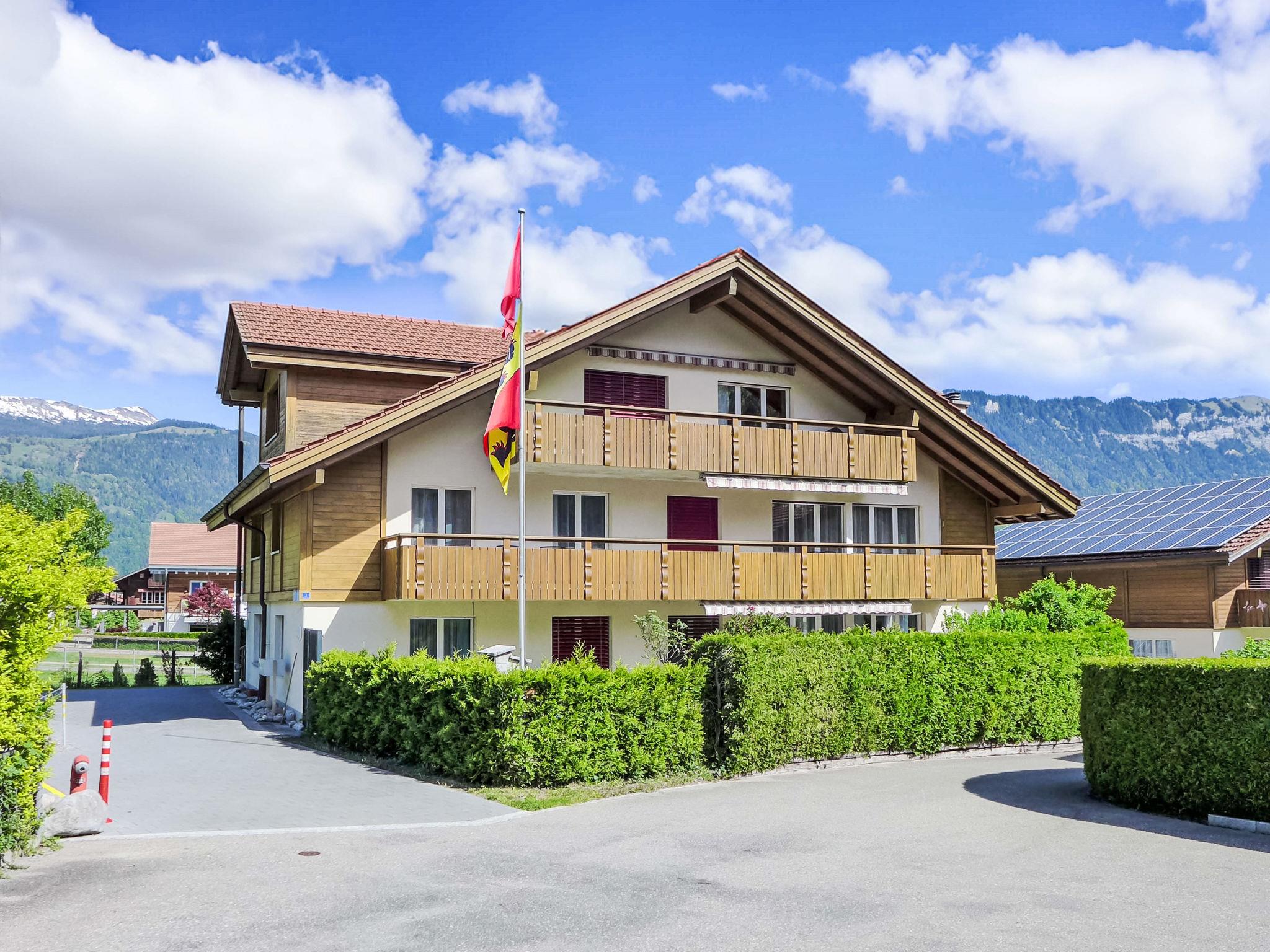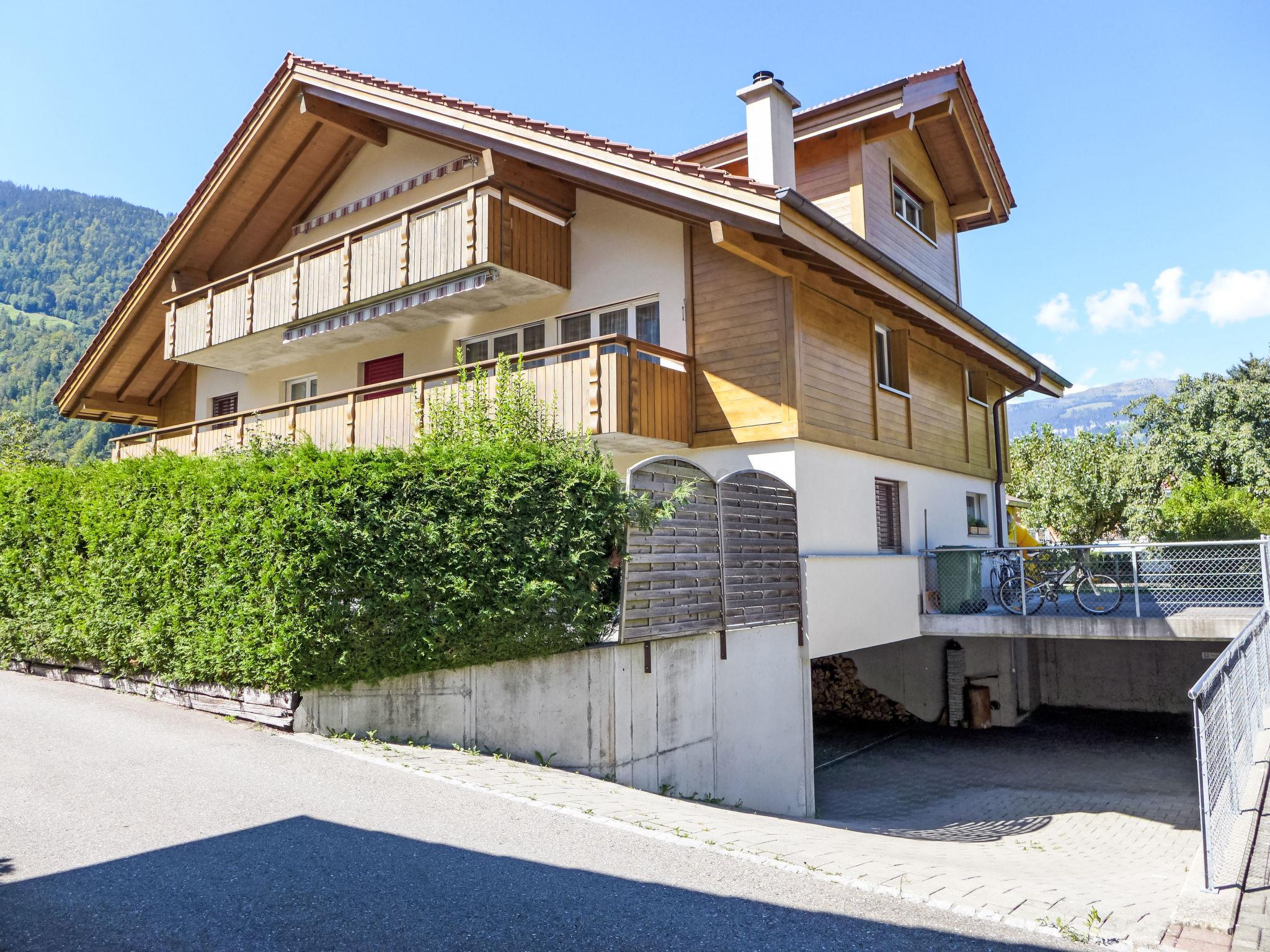Wilderswil 4 km from Interlaken: Modern 3-family house "Oberei", built in 2005. In a sunny position in the residential district, in a cul-de-sac, south facing position. In the house: storage room for bicycles, storage room for skis, central heating system. Roofed, parking at the house. Grocery, supermarket 800 m, restaurant 200 m, bakery 200 m, bus stop "Heimat" 200 m, railway station "Wilderswil" 800 m, outdoor swimming pool 4.3 km, indoor swimming pool 4.3 km, 4.5 km. Golf course (18 hole) 6.5 km, surf school 6.5 km, tennis 1.2 km, minigolf 4.3 km, walking paths from the house 50 m, mountain railway 17 km, skisport facilities 17 km, ice rink 2 km. Nearby attractions: Interlaken, Jungfraujoch, Schilthorn. Well-known ski regions can easily be reached: Grindelwald/Männlichen/Lauberhorn, Schilthorn. Well-known lakes can easily be reached: Thuner- und Brienzersee. Hiking paths: Jungfrau Region, Hinteres Lauterbrunnental. Please note: ski bus (free of charge). Animals in the neighbourhood.