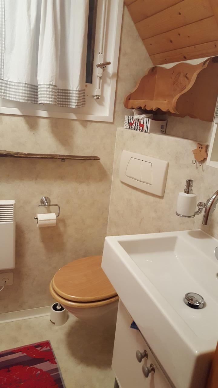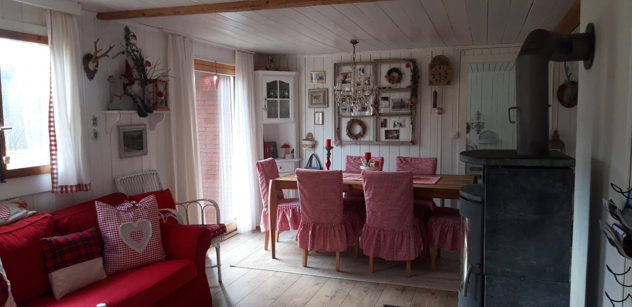 This romantic Toggenburg cottage is idyllically situated at the source of the Thur, with a view of the Churfirsten. Bright, friendly rooms with shabby chic style furnishings. The house is surrounded by a covered seating area at the entrance, a sun terrace on the south side, a separate barbecue area, 4 parking spaces and 2500 m2 of surrounding land (Riet area). The hot tub is optional to rent: up to 3 nights Fr. 250.-- from 4 nights Fr. 300.--. On the ground floor is the cosy living/dining area and the open kitchen with coffee corner. Next to the master bedroom with double bed is the children's playroom or baby room. The house is heated by the underfloor heating and the efficient Swedish soapstone stove. Simple shower/WC. Entrance hall with wardrobe and shoe racks. Upstairs there are two 2-bed rooms and a small, neat single room. WC and shared lavabo. Very quiet location with a direct view of the Churfirsten. Nevertheless centrally located with the ski bus 70 metres from the house during the season. The house is ideal for family or even 3 generation holidays. There is also room for up to 4 people in our Studio Chic, which can be found under holiday flats. In the snow in front of the house you can see tracks of deer, foxes and squirrels and if you are lucky you can watch the animals from the house.