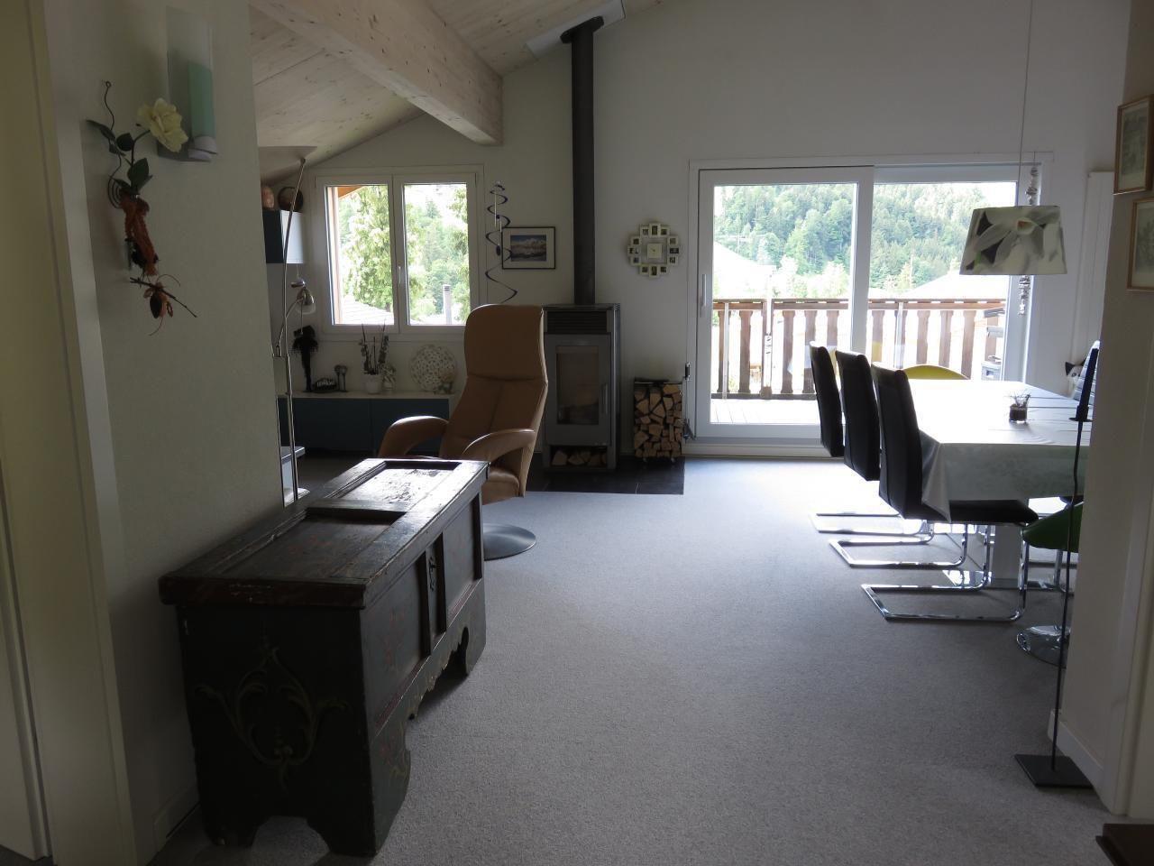 This charming, comfortable, sunny 3½ room attic flat (no lift) with high ceilings and beautiful beamed views (non-smoking) with carport and electric charging station, impresses with its beautiful location with views of the Churfirsten. The flat offers plenty of space and has a spacious all-day sunny balcony with a wonderful view for pleasant hours outside, as well as a garden seating area for shared use and a fireplace in the living room for cosy evenings. The kitchen is fully equipped, bed linen, towels and kitchen towels are provided. Various hotels, restaurants and a supermarket are within walking distance. An ideal starting point for hikes or walks. The surrounding area offers a wide range of activities, mountain biking, the Toggenburg Sound Trail, the adventurous Selun cable car, etc. between Säntis and Churfirsten. The mountain railways are easily accessible on foot or by public bus in the immediate vicinity.
