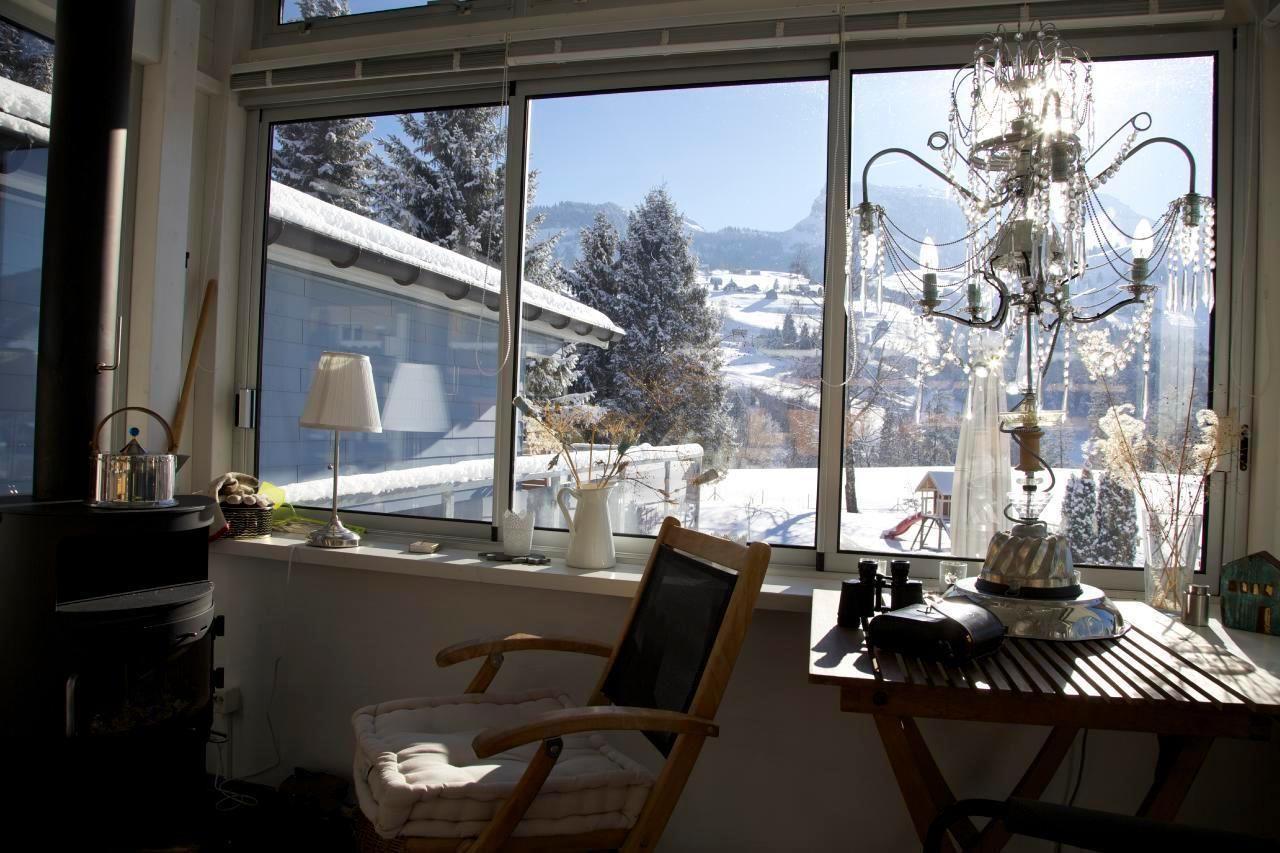 The house has a large conservatory, which becomes a cosy retreat even during the colder seasons thanks to a Swedish stove, from where you have an unobstructed, fantastic view of the magnificent mountain world of the 7 Churfirsten.