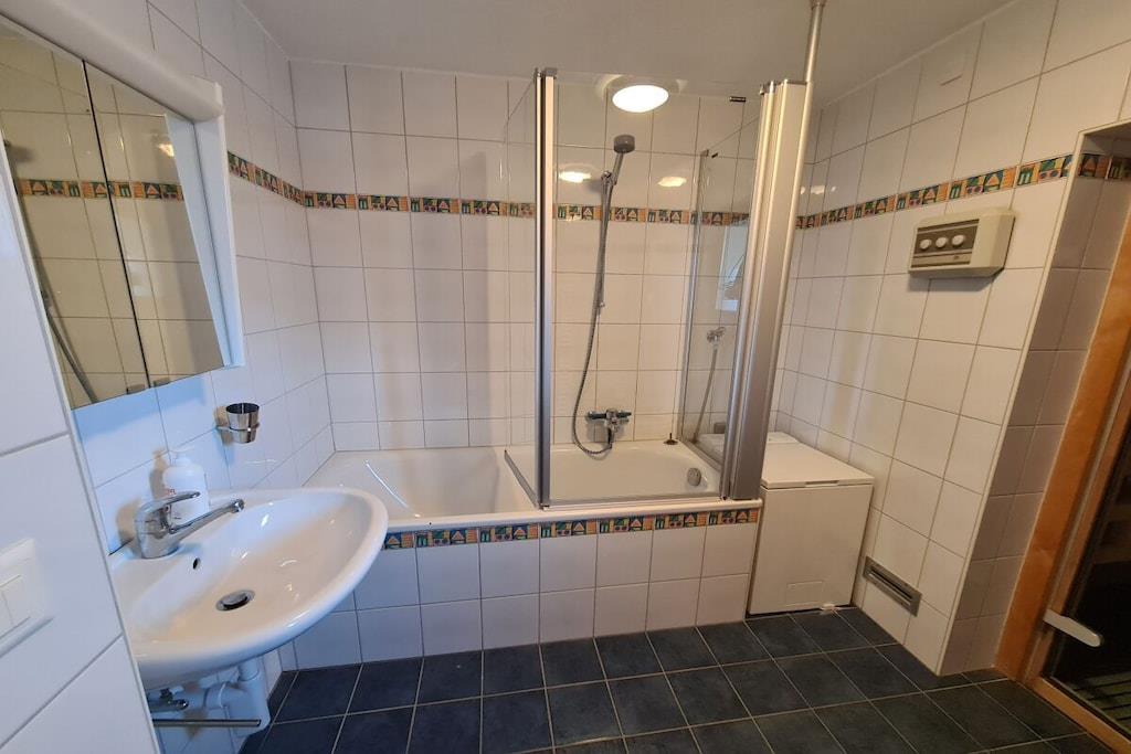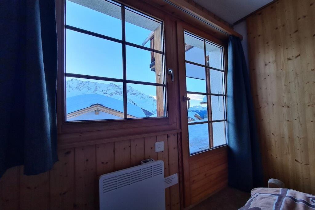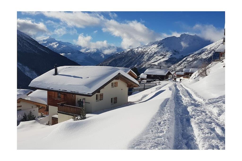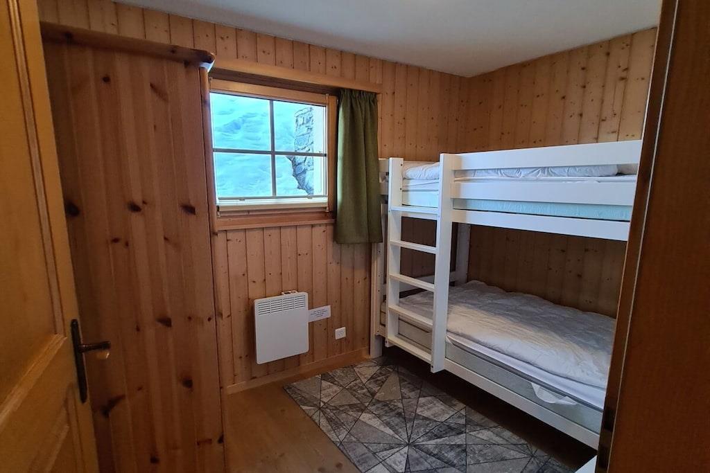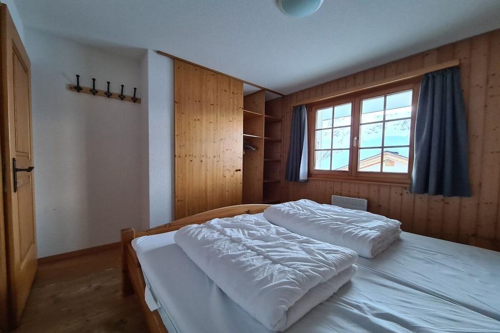 "Chalet Paul" was newly built in 2001. It offers ideal conditions for a relaxing holiday in summer or winter for up to five people. The ground floor features three bedrooms and a bathroom with a bathtub/shower and underfloor heating. The sauna is accessible from the bathroom. From the bright and welcoming living room on the upper floor, and especially from the balcony, which faces south and west on two sides, you can enjoy impressive views of the Valais mountains. The dining area with a corner bench and the seating area with a fireplace guarantee cozy hours whatever the weather. A 32-inch Smart TV with a Swisscom Internet TV Box (more than 100 channels from Switzerland, Germany, and Austria), a Bose Soundtouch internet music system with radio station buttons, and a telephone complete the furnishings.