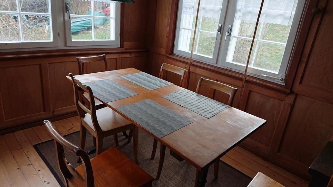 The wooden house, built around 1750, is located next to the Luchtenbächlein stream on the original footpath to Heiden in the "Vogelherd", not far from the village. The marvellous view of Lake Constance invites you to relax and linger. The Witzweg (simply hilarious!) leads almost past the house. The other hiking routes in the hilly "Vorderland", to the nearby Biedermeier village "Luftkurort Heiden" (baths!) or to the excursion destination St.Anton are also attractive, as are the trips to Lake Constance or St.Gallen - also thanks to the good connections with the post bus. And a varied trip on the Appenzell rack railways (Heiden-Rorschach, Rheineck-Walzenhausen) is simply part of the holiday programme! Attractive holidays in an idyllic location in a historic Appenzell house (i.e. in the part of the house on the mountain side) with a wonderful view of Lake Constance, very quiet location - original living/dining room (old parlour) with historic cast iron stove and retractable shutters - 3 charming bedrooms, kitchen, bathroom, separate WC - suitable for 4-5 people (max. 4 adults, children must attend school) - small garden with adjoining stream, additional sunny seating area on the south side with fountain - 2 car parking spaces (not covered) - barbecue, various garden chairs etc. for free use