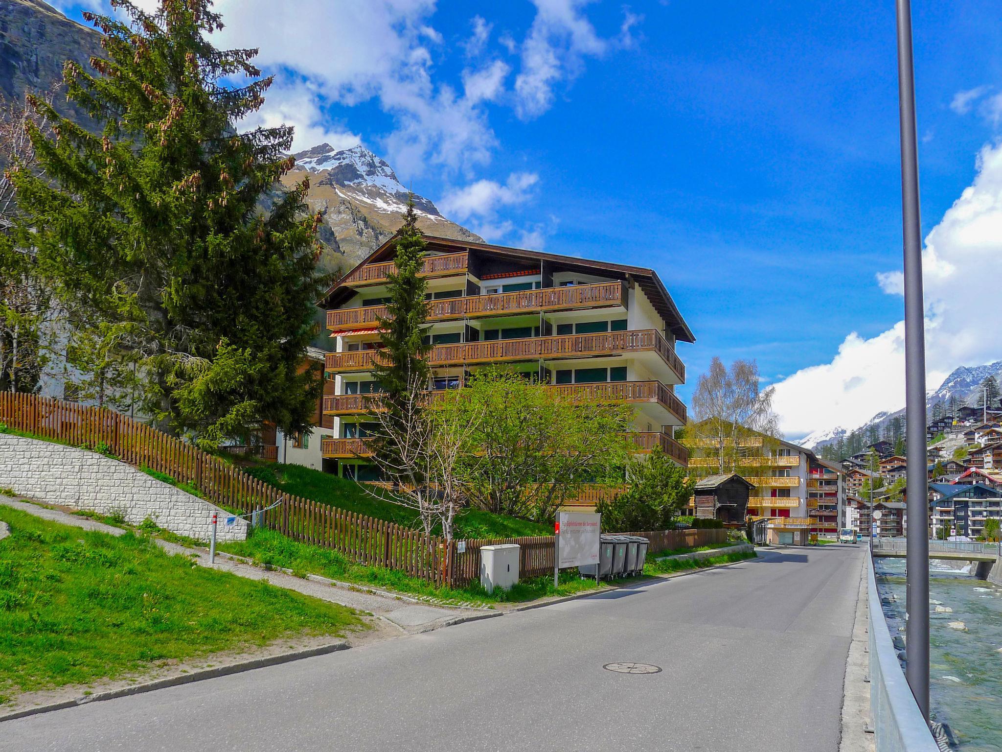 Cosy, simple apartment block "Matten (Utoring)". In the district of untere MAtten, 400 m from the centre, in a central, quiet, sunny position, south facing position. In the house: reception, lift, storage room for skis, central heating system. Supermarket, restaurant 300 m, bakery, bicycle rental 400 m, 7 minute walk to the centre, bus stop "Wiestibrücke" 20 m, railway station "Bahnhof Zermatt" 400 m. Mountain railway 200 m, ski rental 30 m, ski bus stop 10 m, ski school, children's ski school 750 m. Please note: Additional accommodations can be booked.