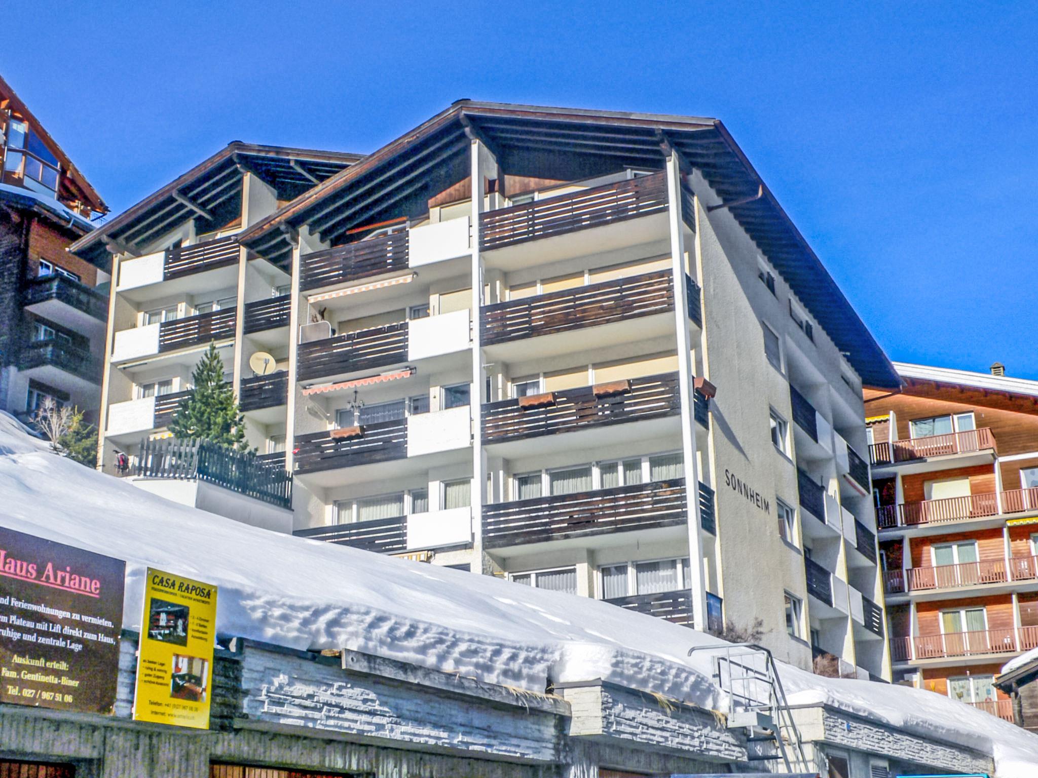Large, simple apartment house "Sonnheim", 5 storeys. In the district of Zen Stecken 900 m from the centre of Zermatt, in a quiet, sunny position. In the house: lift, storage room for skis, central heating system. Supermarket 700 m, restaurant 30 m, bakery 500 m, 10 minute walk to the centre, bus stop "Matterhorn Glacier Paradise" 200 m, railway station "Bahnhof Zermatt" 900 m. Mountain railway 300 m, ski rental 300 m, ski bus stop 200 m, ski school, children's ski school 600 m. Cabs cannot stop right in front of the house. The keys‘ handover takes place by the agency Interhome in Zermatt.