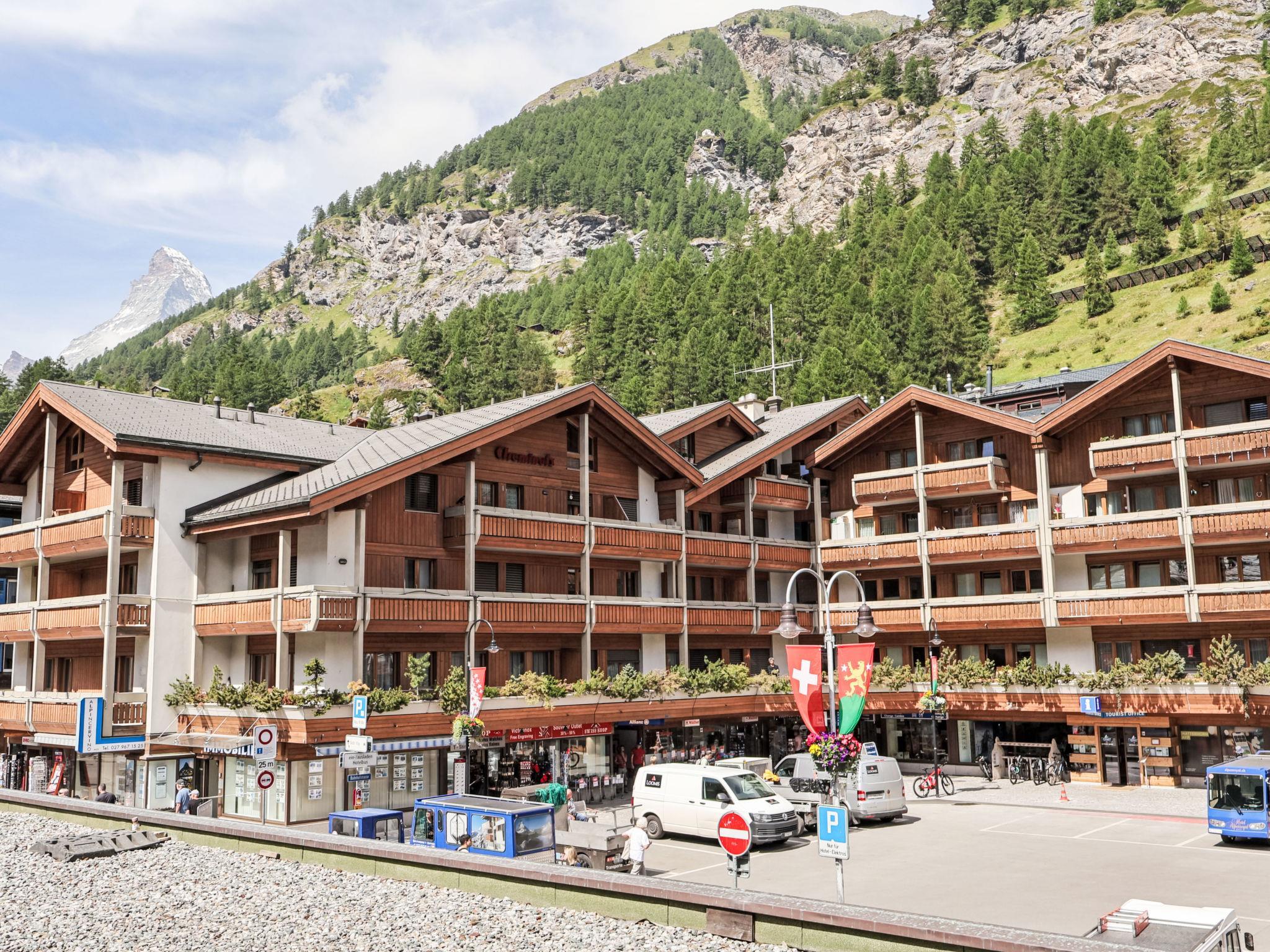 Beautiful apartment house "Viktoria A", 5 storeys, renovated in 2017. In the centre of Zermatt, in a central position. In the house: lift, storage room for skis, central heating system. Supermarket, restaurant 5 m, bakery 20 m, café 5 m, bus stop "Bahnhof" 60 m, railway station "Bahnhof Zermatt" 60 m. Mountain railway 25 m, ski rental 5 m, ski bus stop 60 m, ski school, children's ski school 280 m, ice rink 100 m, children's playground 50 m.