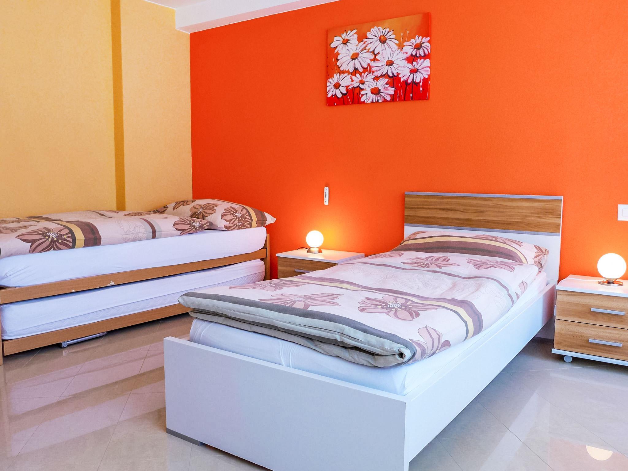 3-room apartment 95 m2 on 1st floor. Bright, beautiful and modern furnishings: living/dining room with TV, CD-player and DVD. Exit to the balcony. 1 room with 3 beds (90 cm, length 200 cm). 1 room with 1 double bed (180 cm, length 200 cm), bath/WC and TV. Large, open kitchen (oven, dishwasher, 4 ceramic glass hob hotplates, freezer, electric coffee machine, combination microwave). Shower/WC. Heating. Large balcony, south facing position. Balcony furniture. Side view of the mountains. Facilities: Internet (WiFi, free). Please note: non-smokers only.