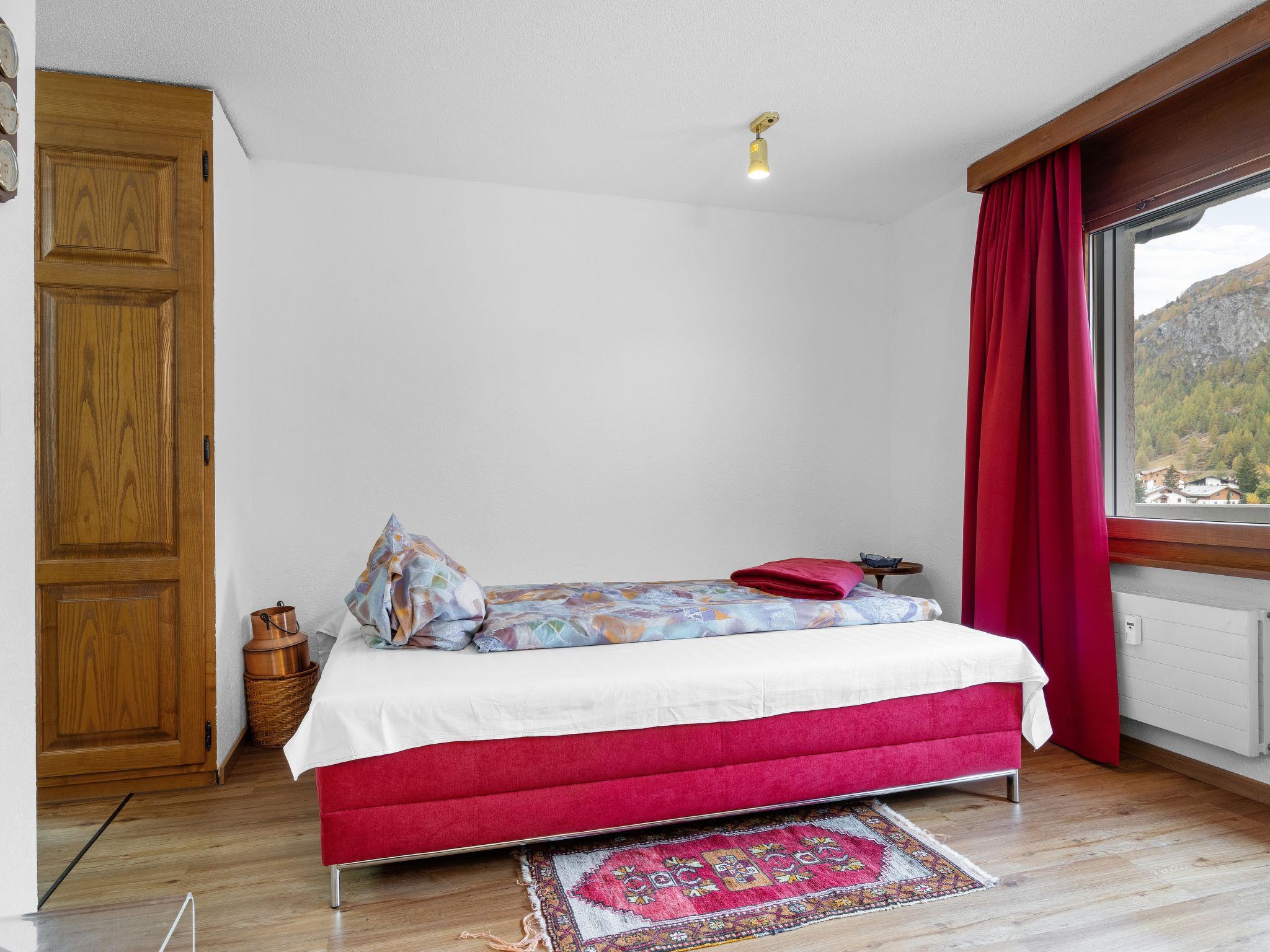 2-room apartment 55 m2 on 2nd floor. Simple and practical furnishings: open living/sleeping room with 1 sofabed (140 cm, length 200 cm), dining table and TV. Exit to the balcony, south facing position and west facing position. 1 double bedroom with 1 double bed (2 x 90 cm, length 200 cm). Open kitchen (oven, dishwasher, 4 ceramic glass hob hotplates, toaster, kettle, microwave, freezer, electric coffee machine, raclette grill, fondue Set (cheese)). Bath/WC. Balcony. Balcony furniture. Very beautiful view of the valley and Matterhorn. Facilities: hair dryer. Internet (WiFi, free). Please note: non-smokers only.